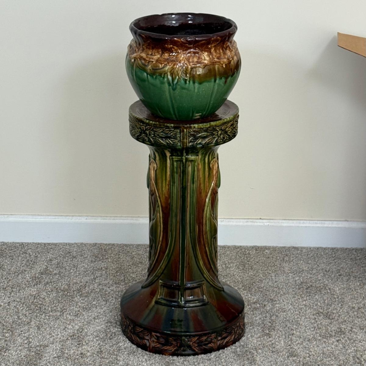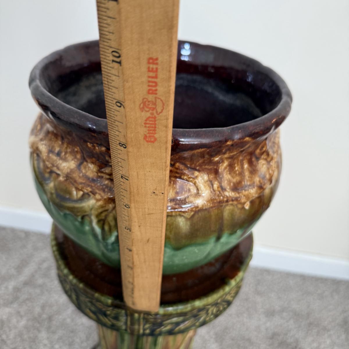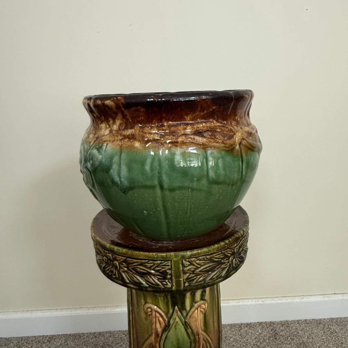 LOT: 42 Vintage Roseville Dogwood Jardiniere/Planter on Ceramic Majolica Pedestal