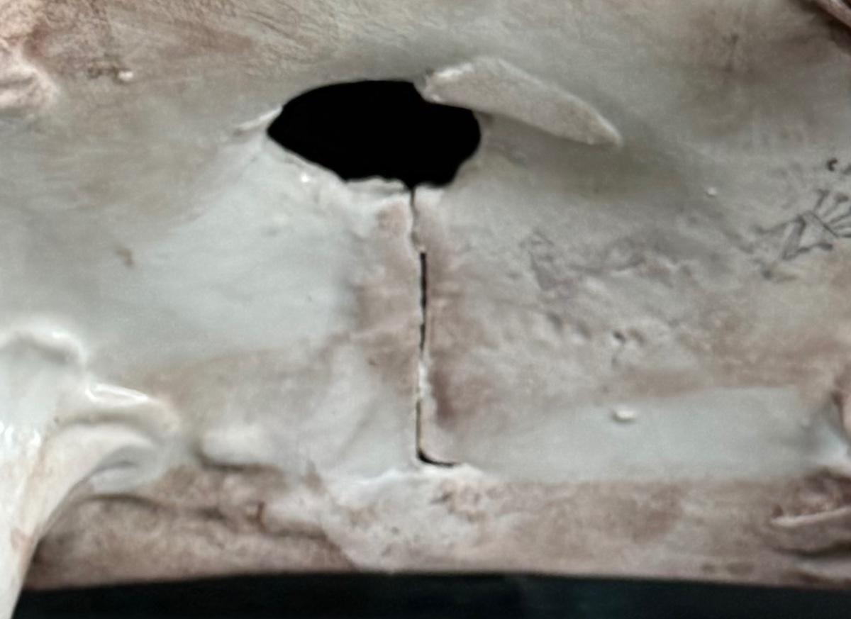 This piece has several chips and cracks but still offers a significant aesthetic value.