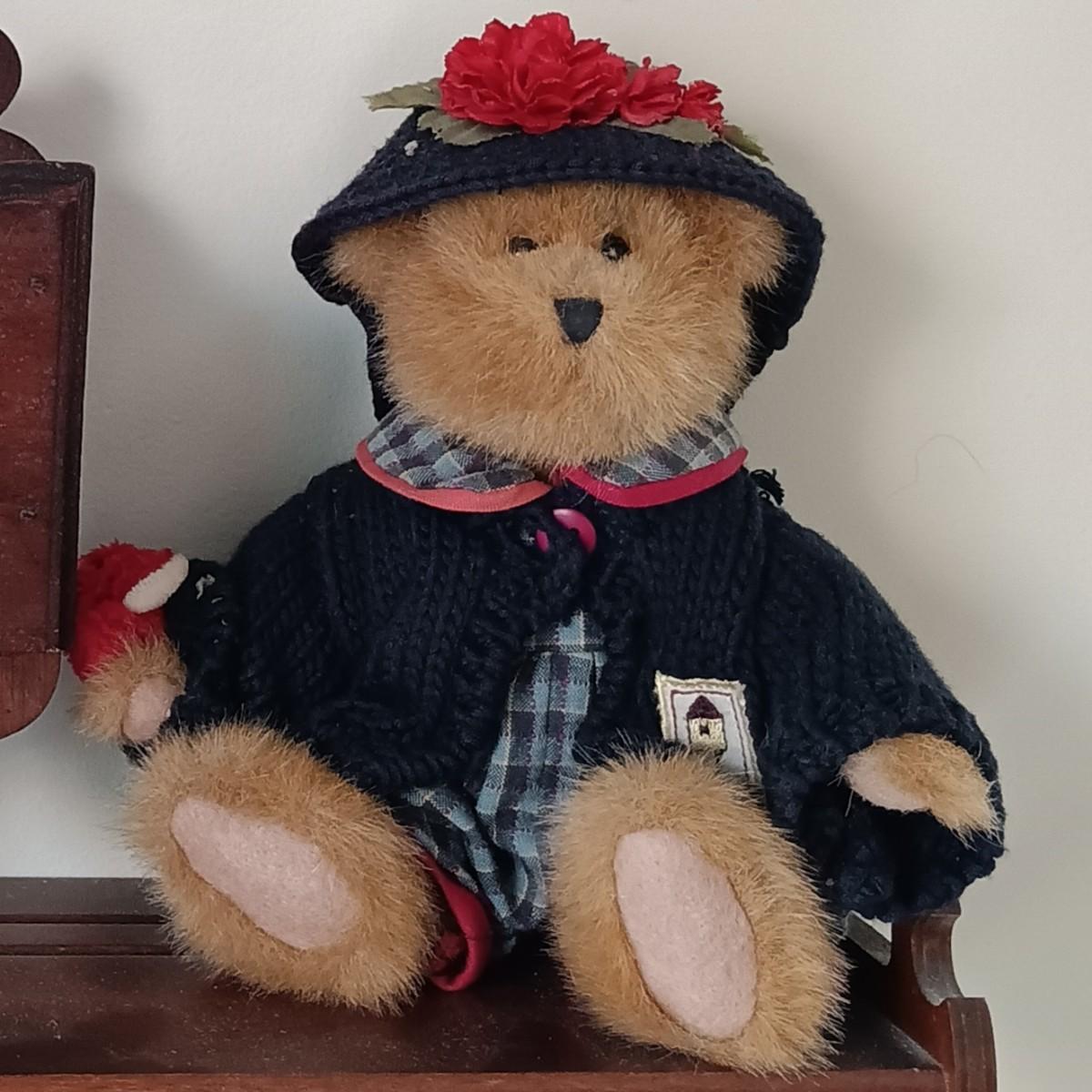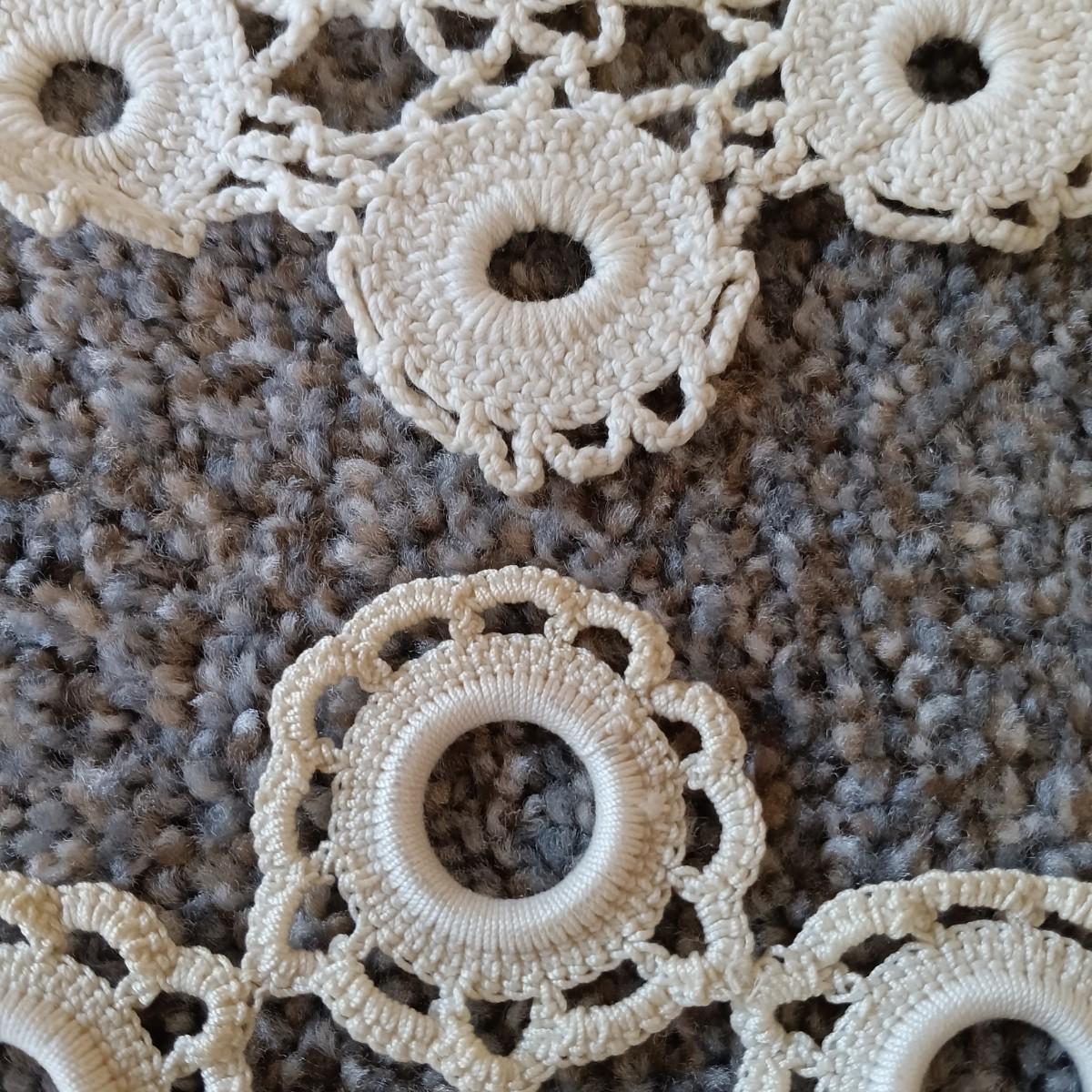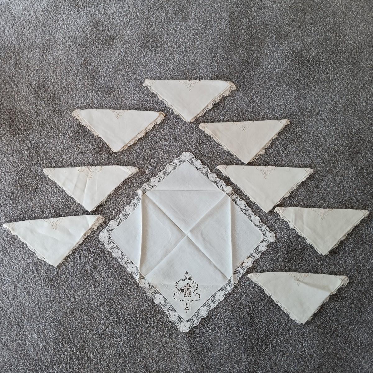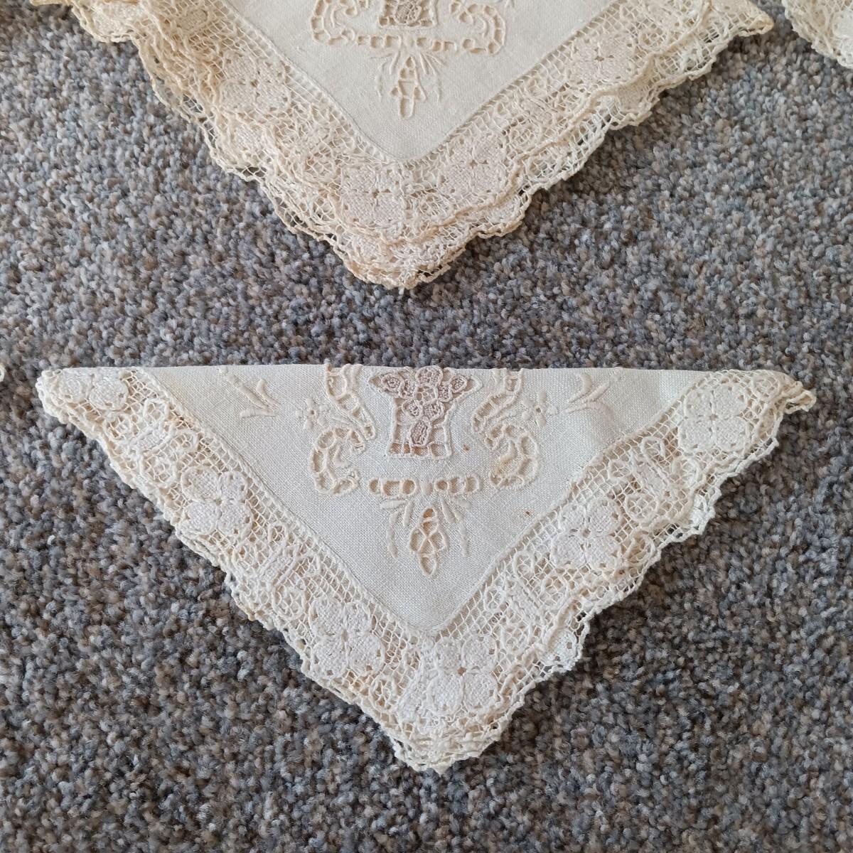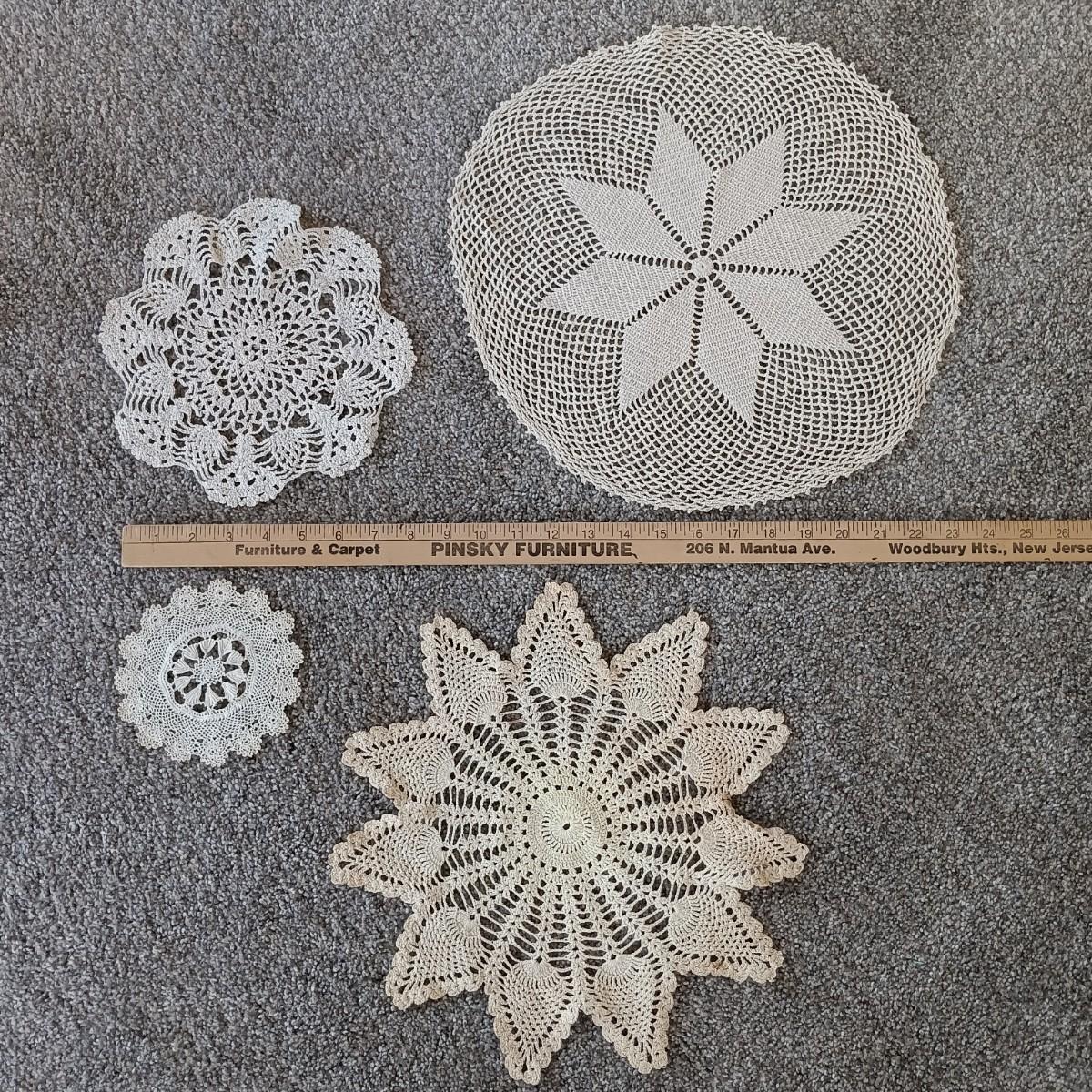 LOT 54: Victorian-Style Wall Shelf with Crocheted Linens, a Small Scrollwork Shelf & Teddy Bear