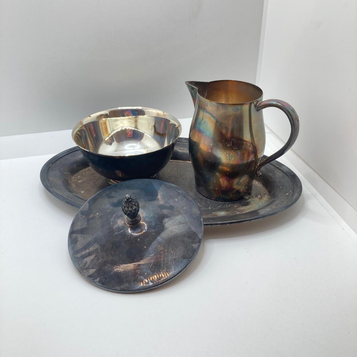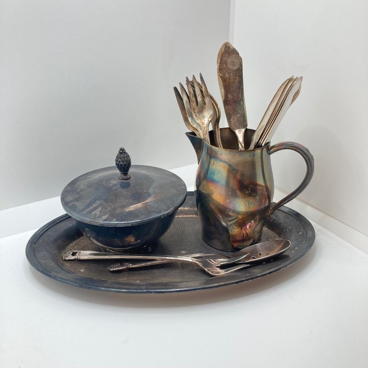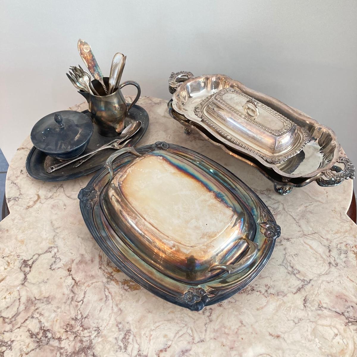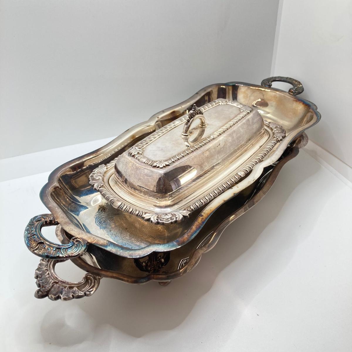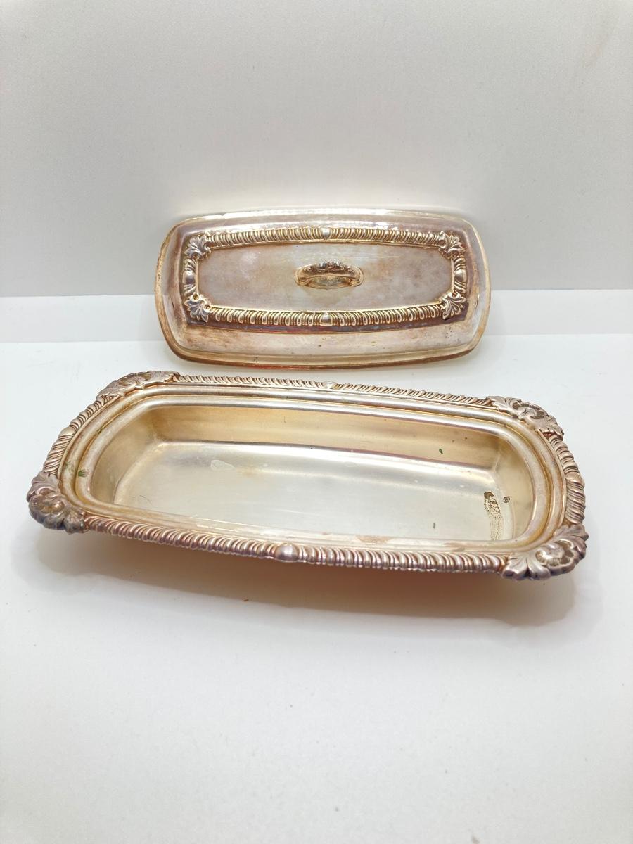 LOT 56: Silver Plated Serving Collection - Trays, Butter Dish, Flatware and More