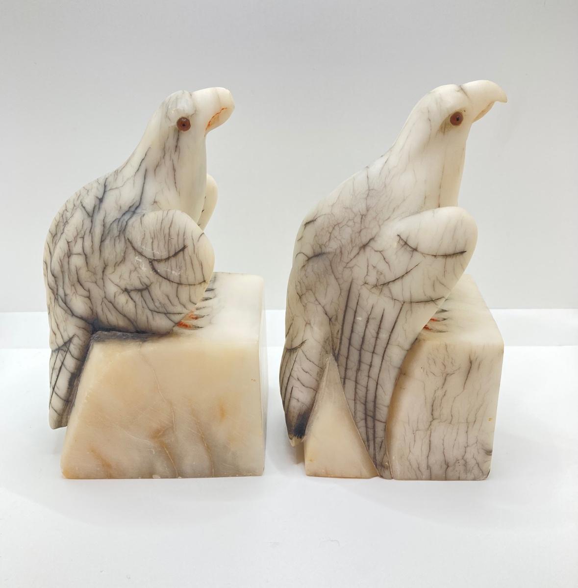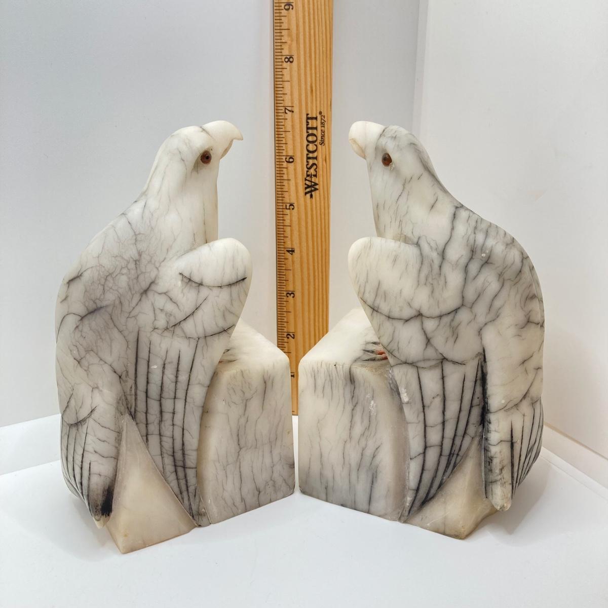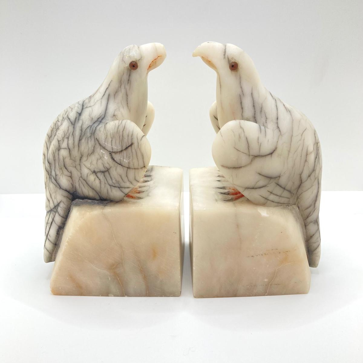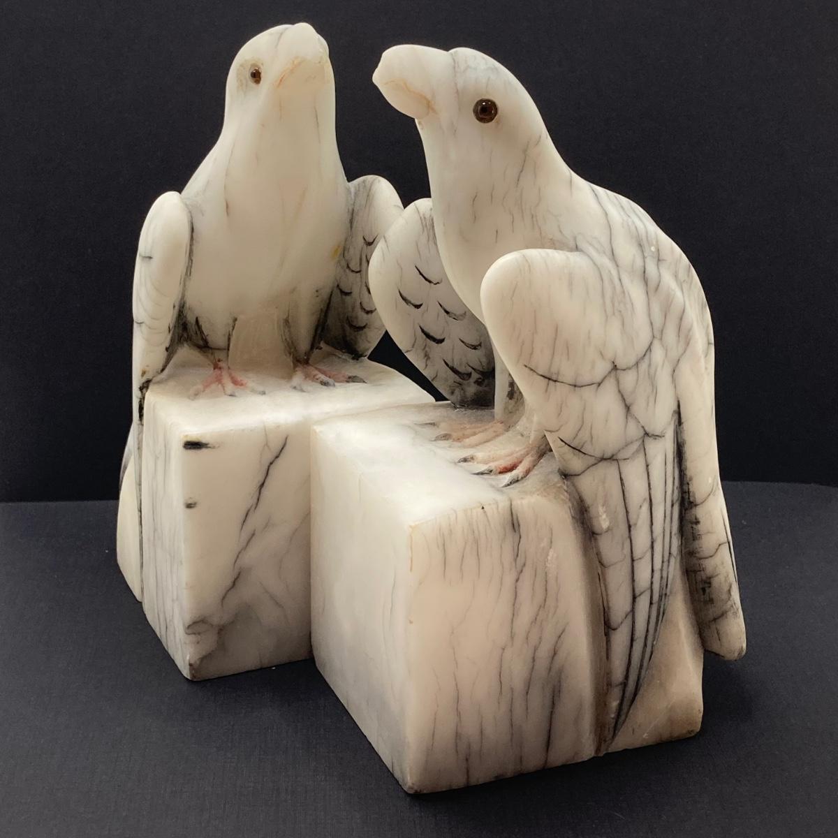 LOT 59: Pair of Made in Italy Carved Stone / Alabaster Bird Bookends
