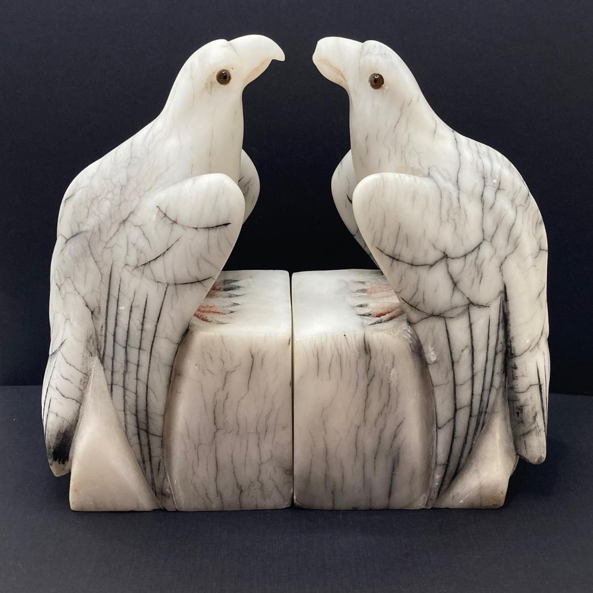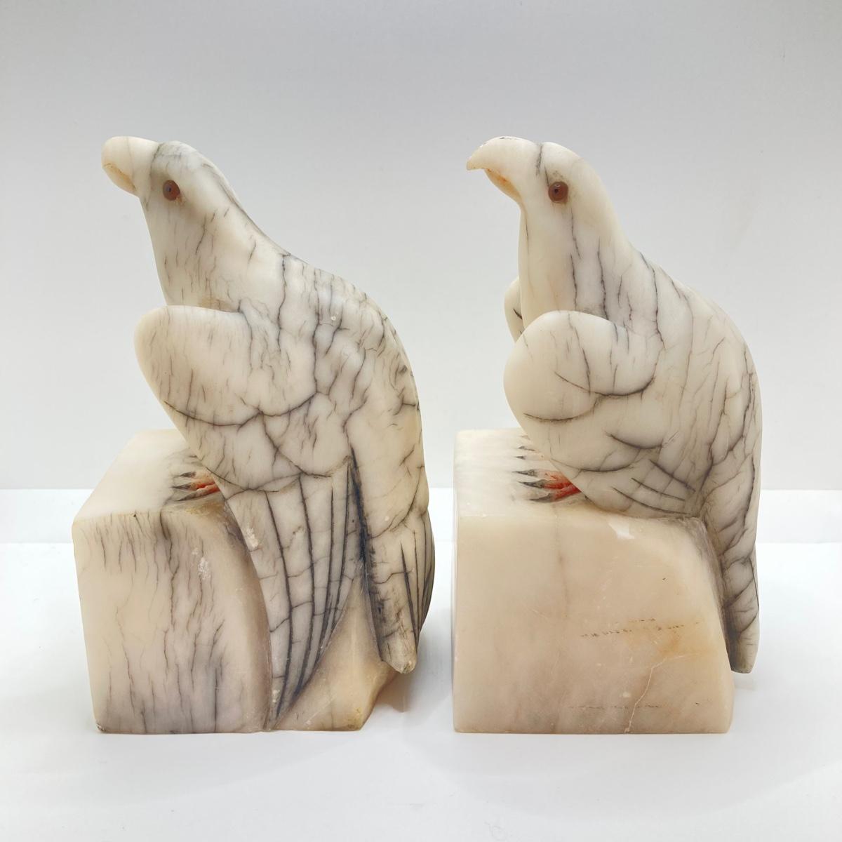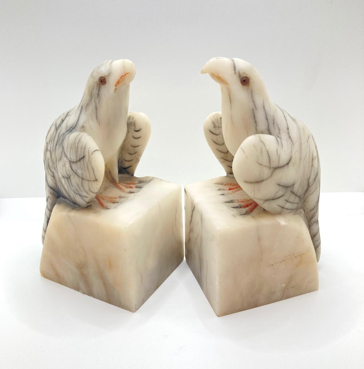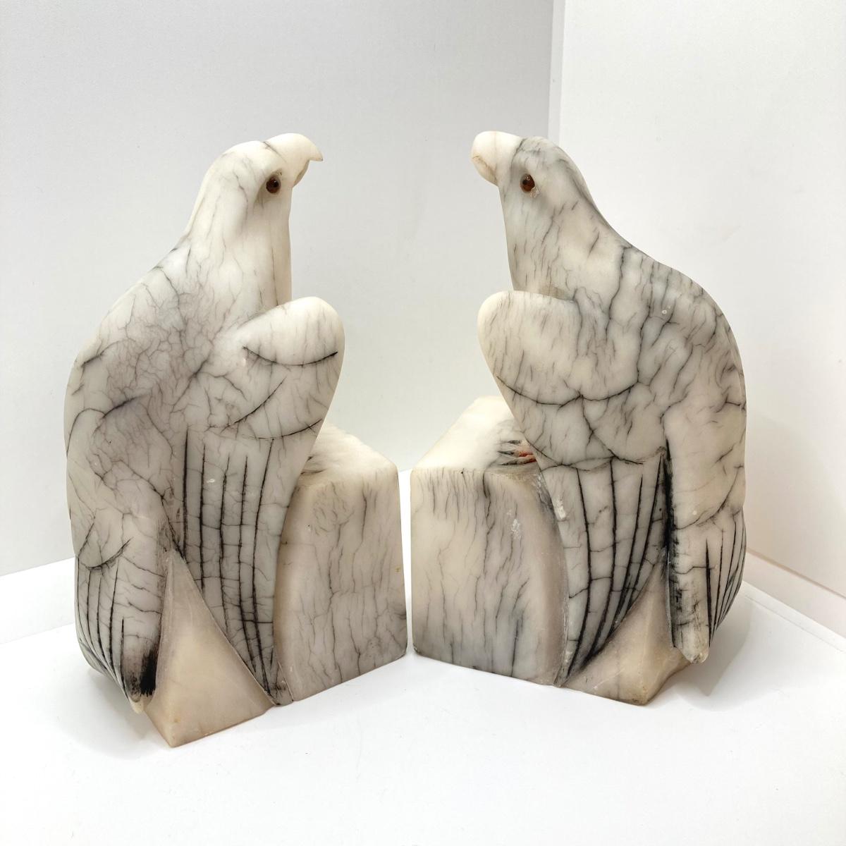LOT 59: Pair of Made in Italy Carved Stone / Alabaster Bird Bookends