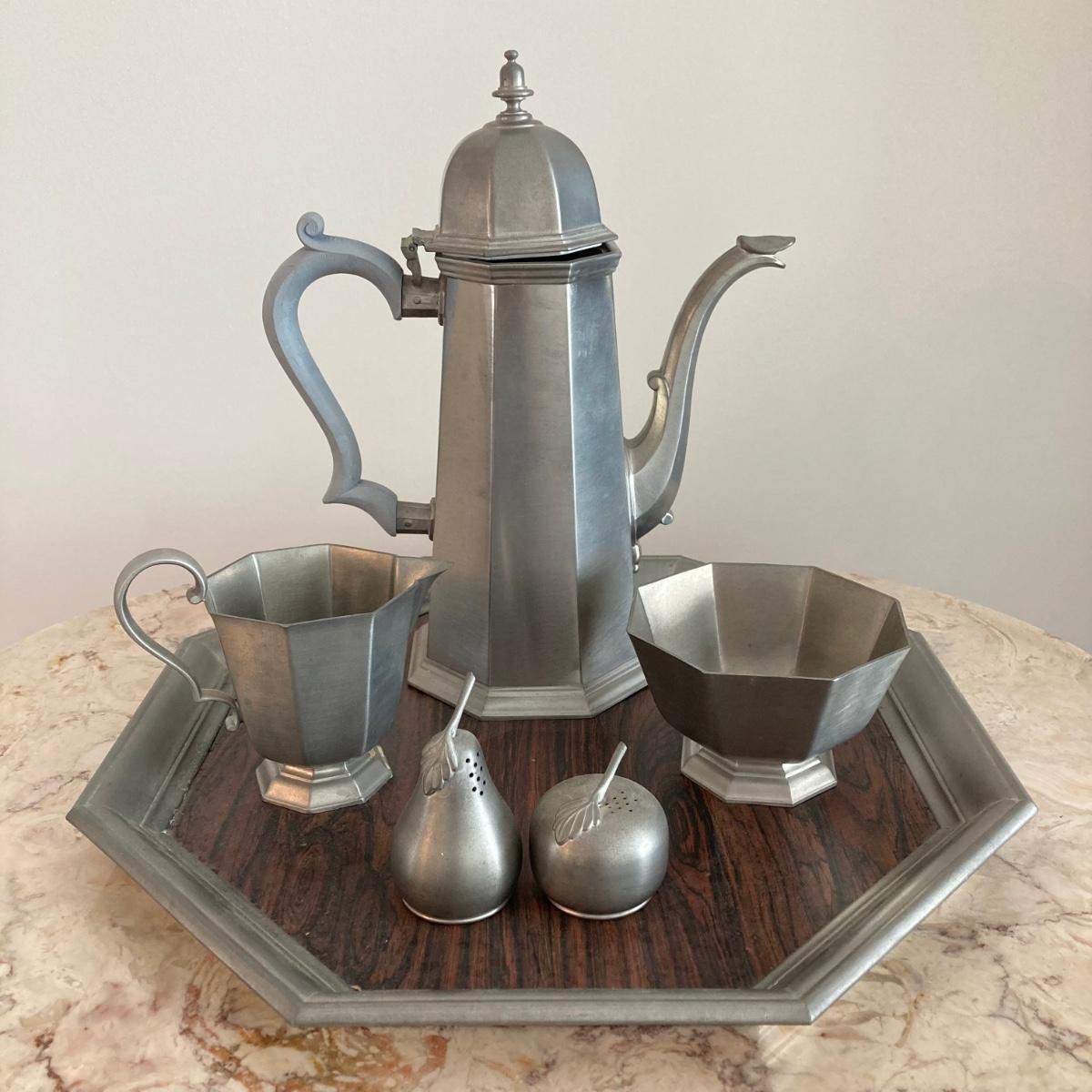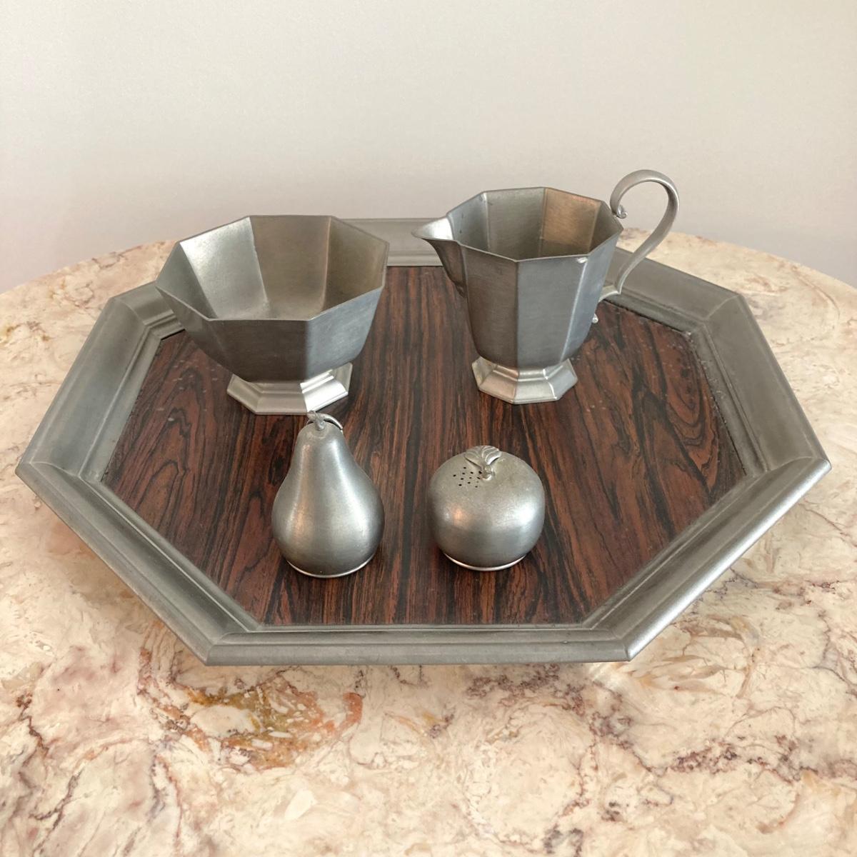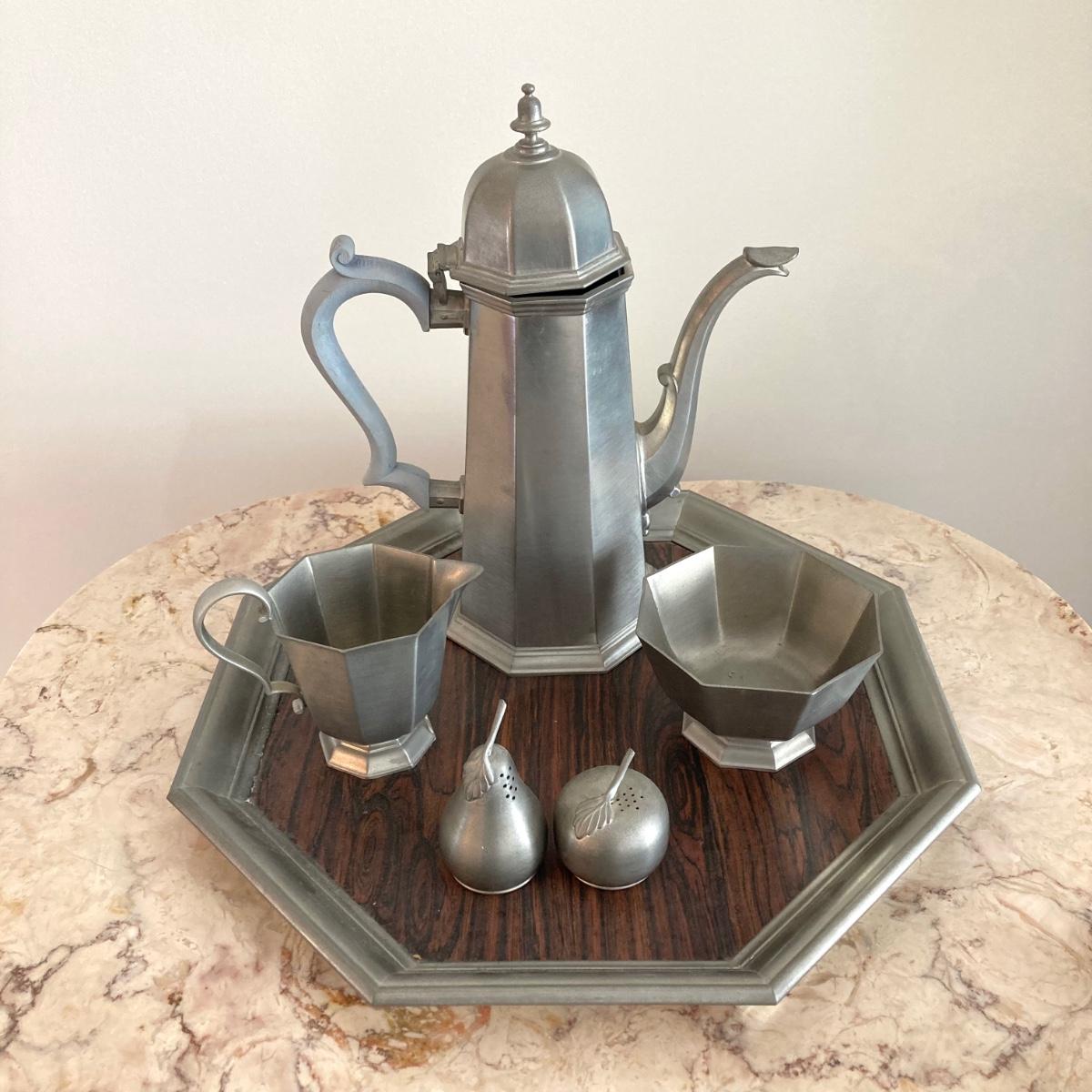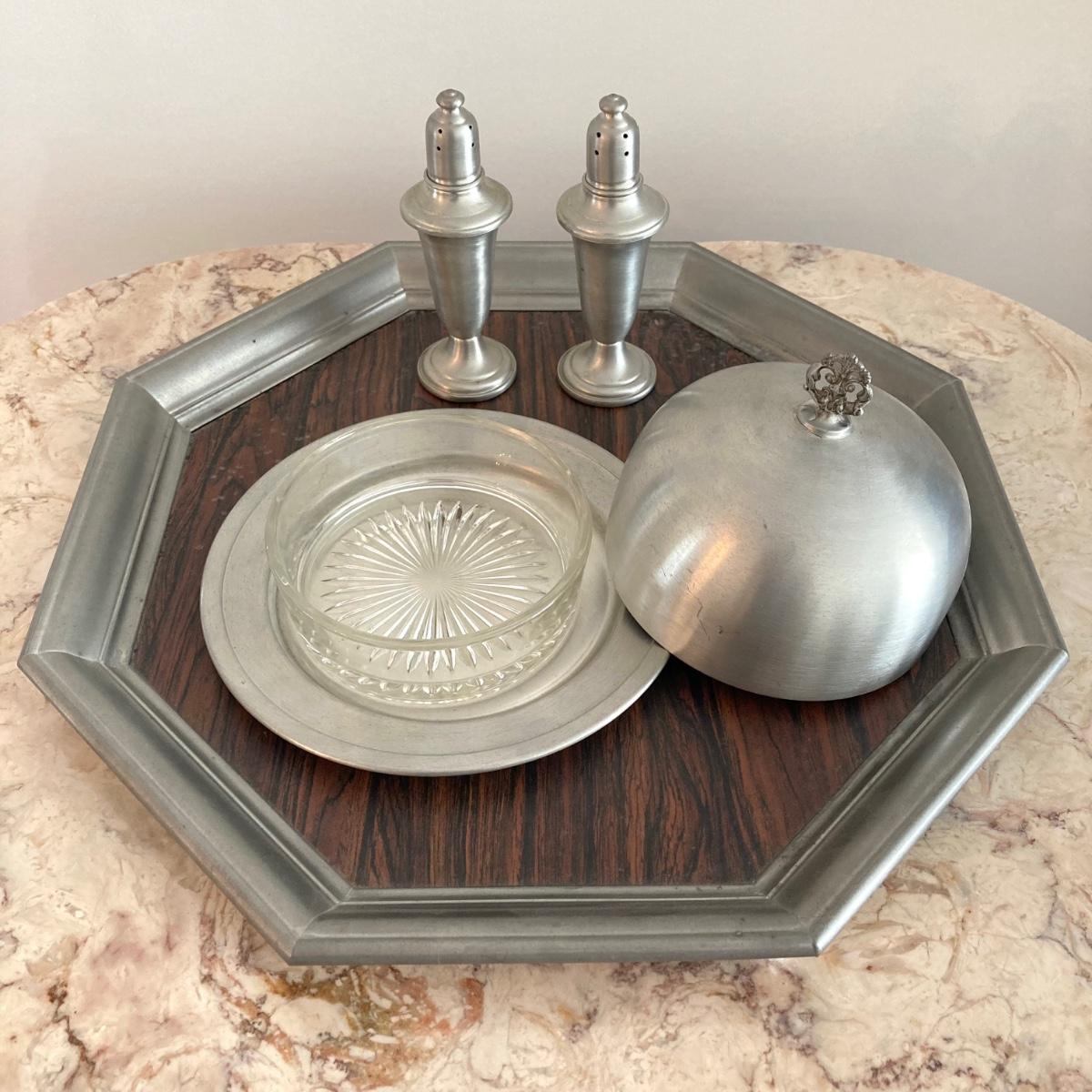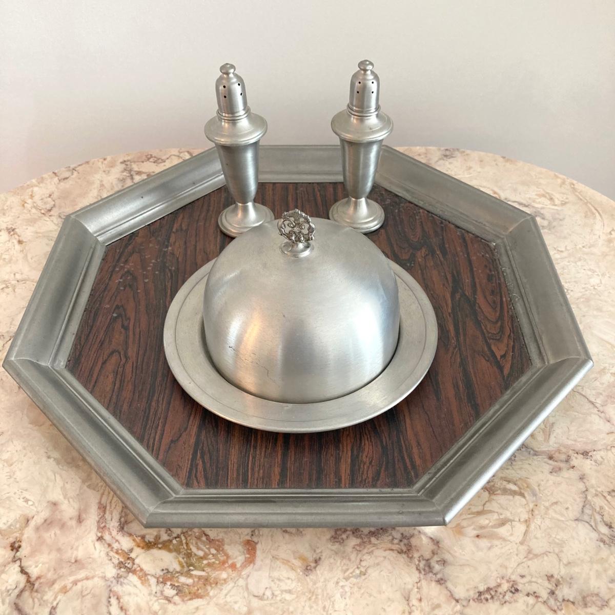 LOT 60: Large Collection of Pewter Serving Pieces, Candlestick Holders and More