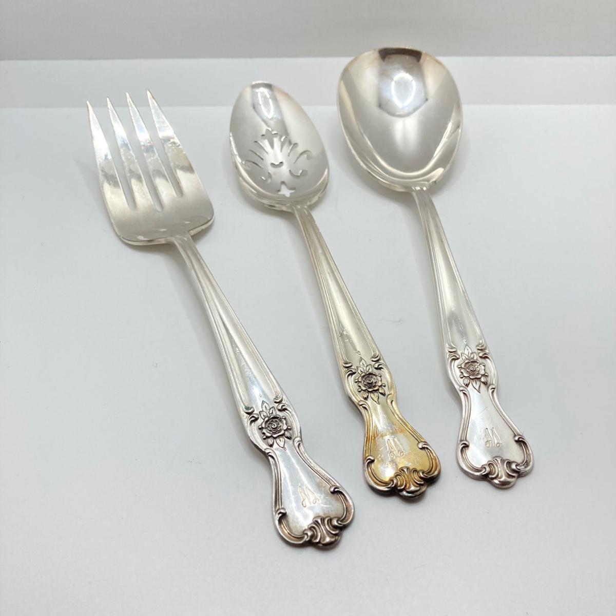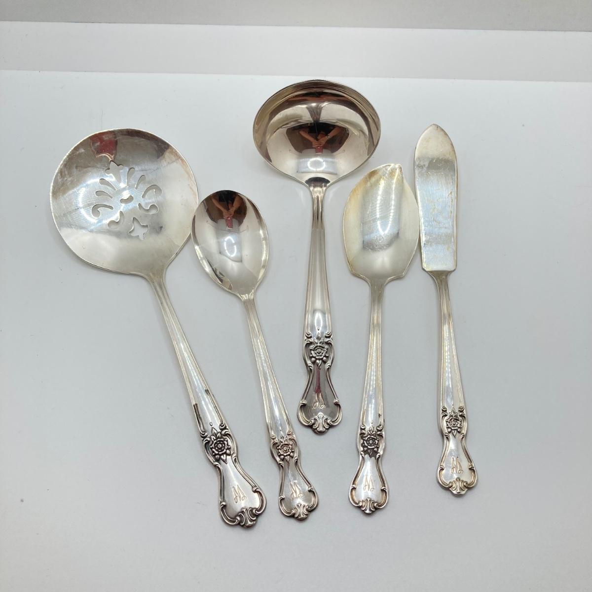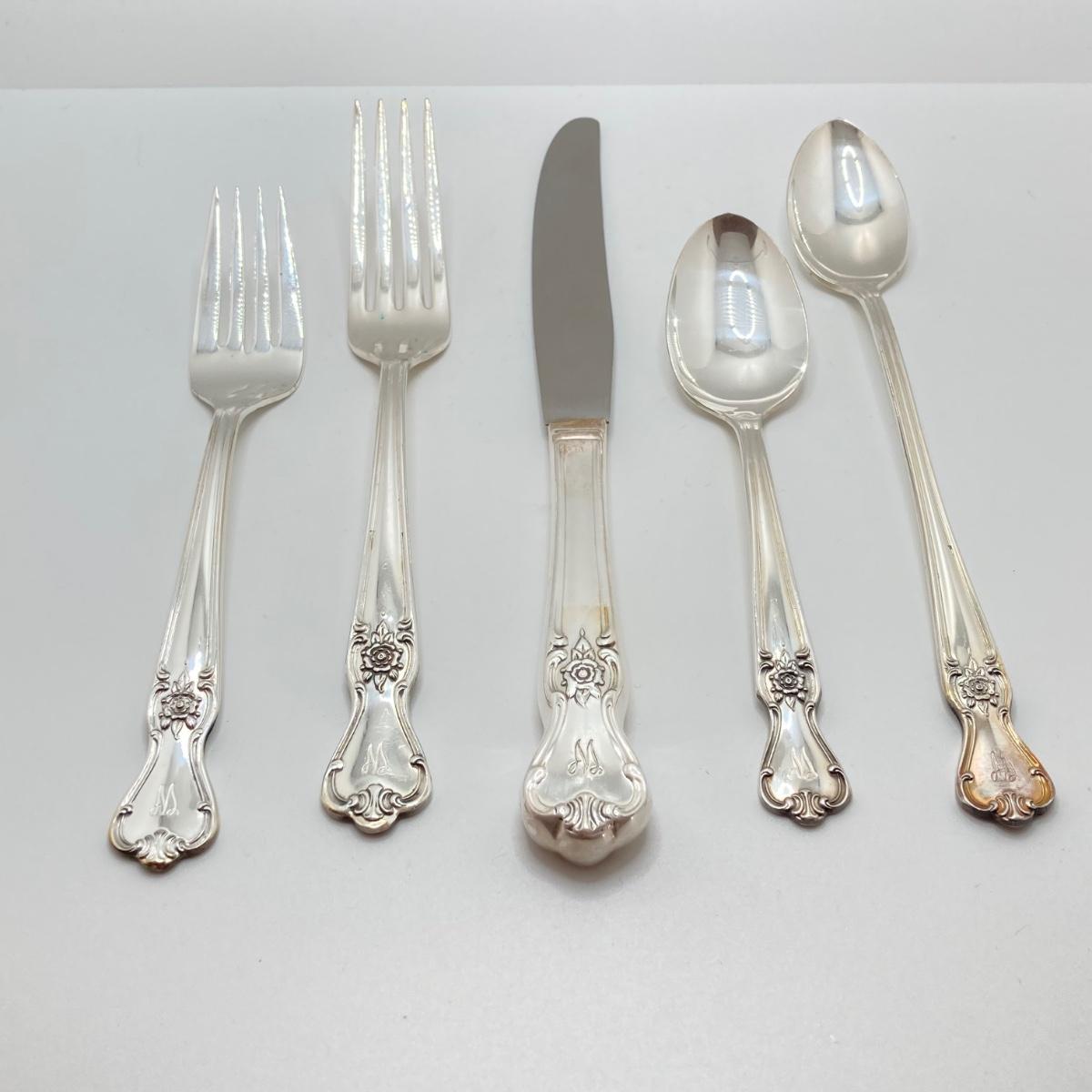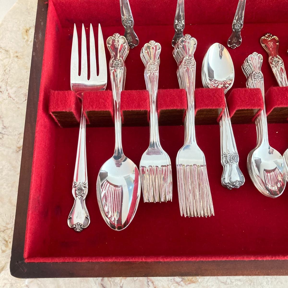 LOT 61: Monogrammed Old Company Silver Plated Flatware in Wooden Storage Box