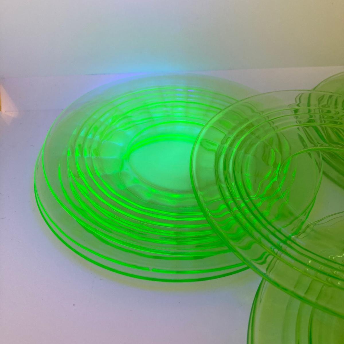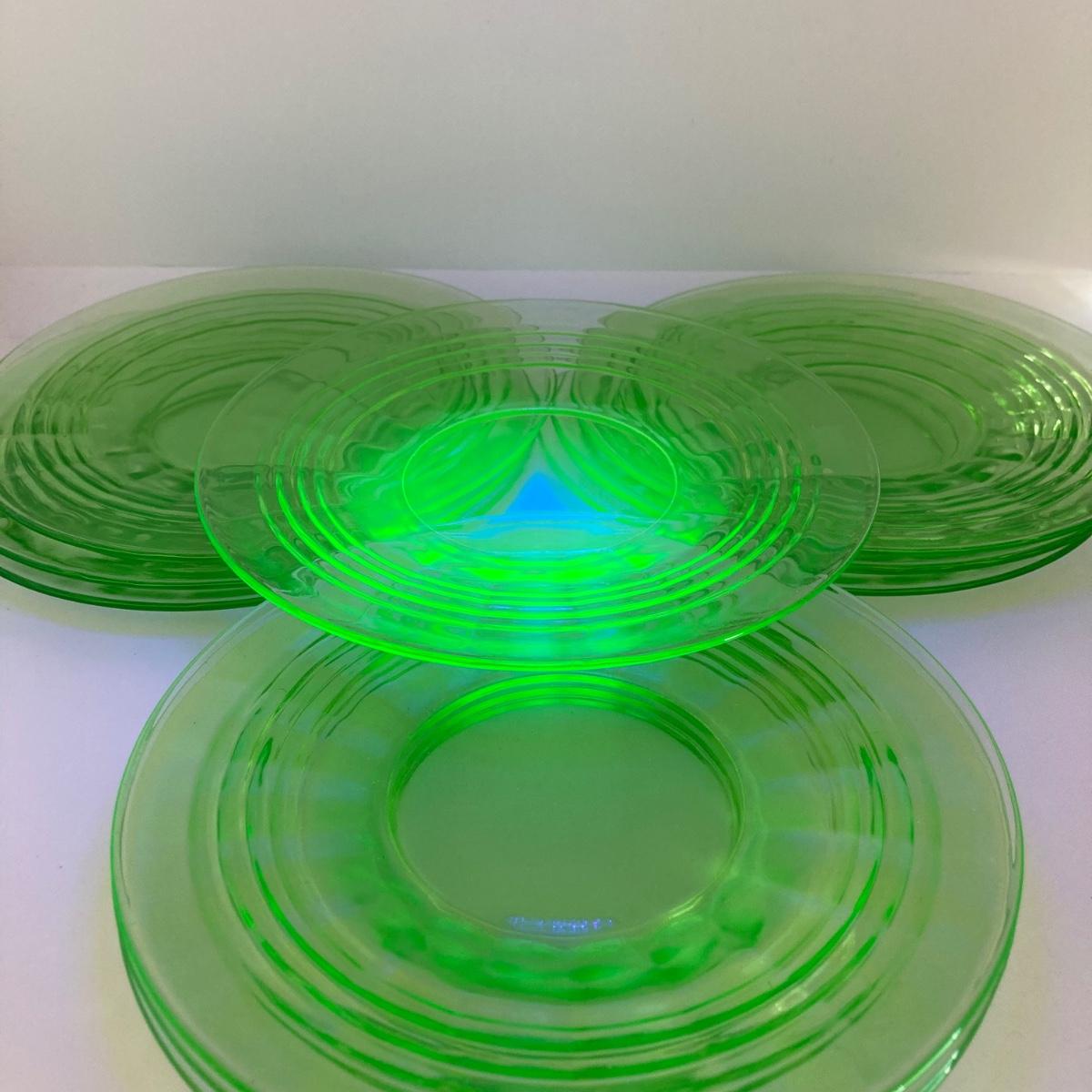 LOT 64: Ten 6 Inch Uranium Glass Serving Plates