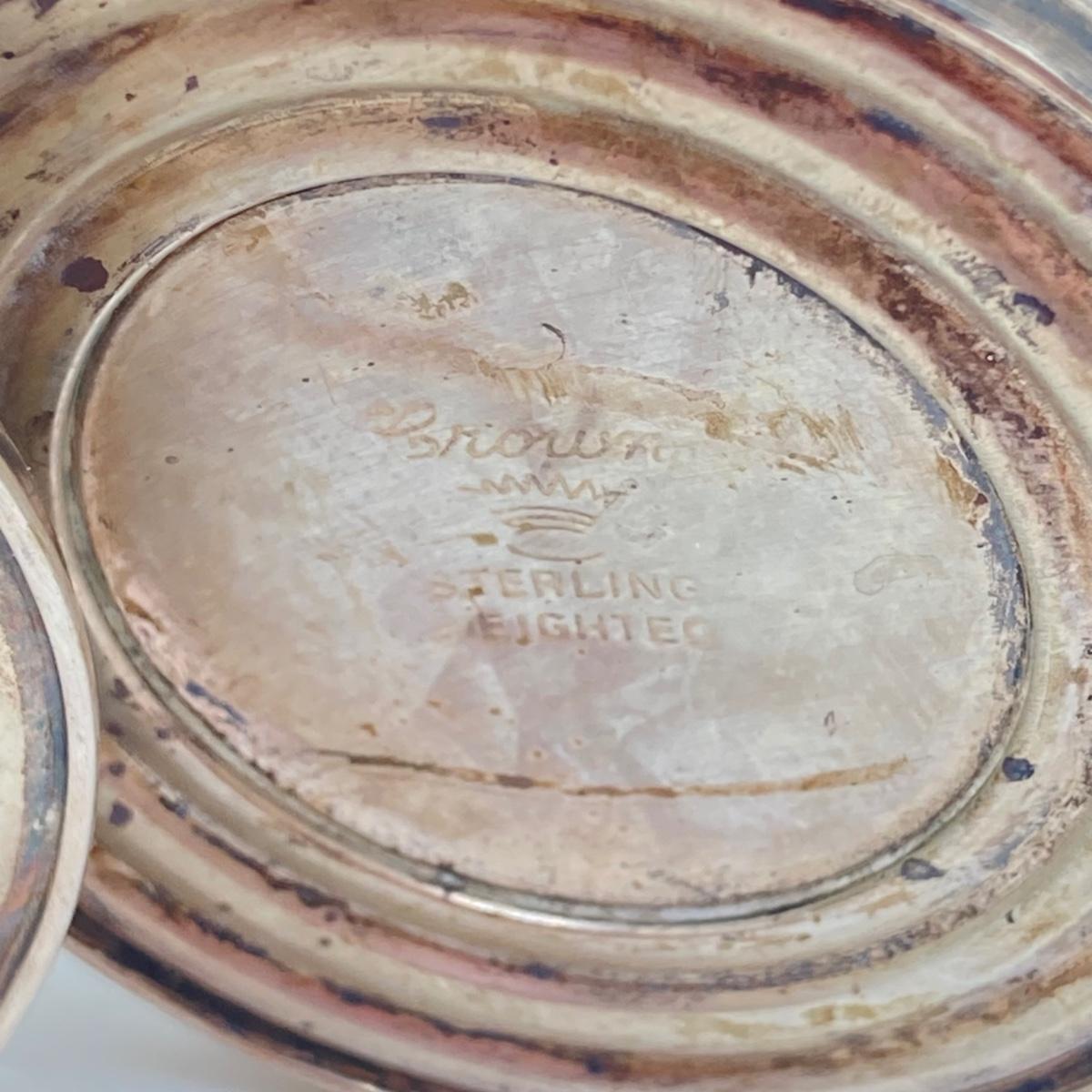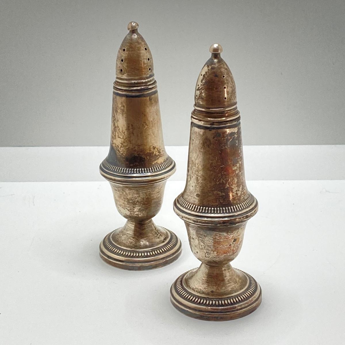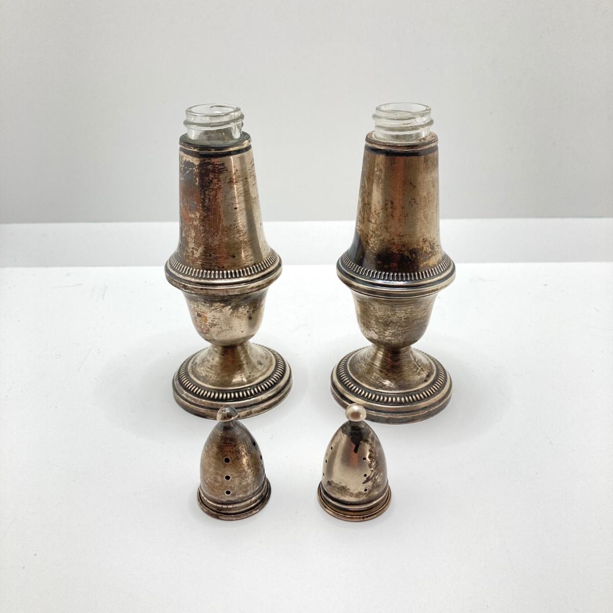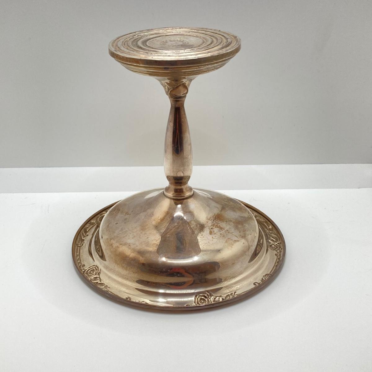 LOT 65: Damask Rose Heirloom Weighted Reinforced Sterling Pedestal Bowl and Crown Weighted Sterling Salt and Pepper Shakers