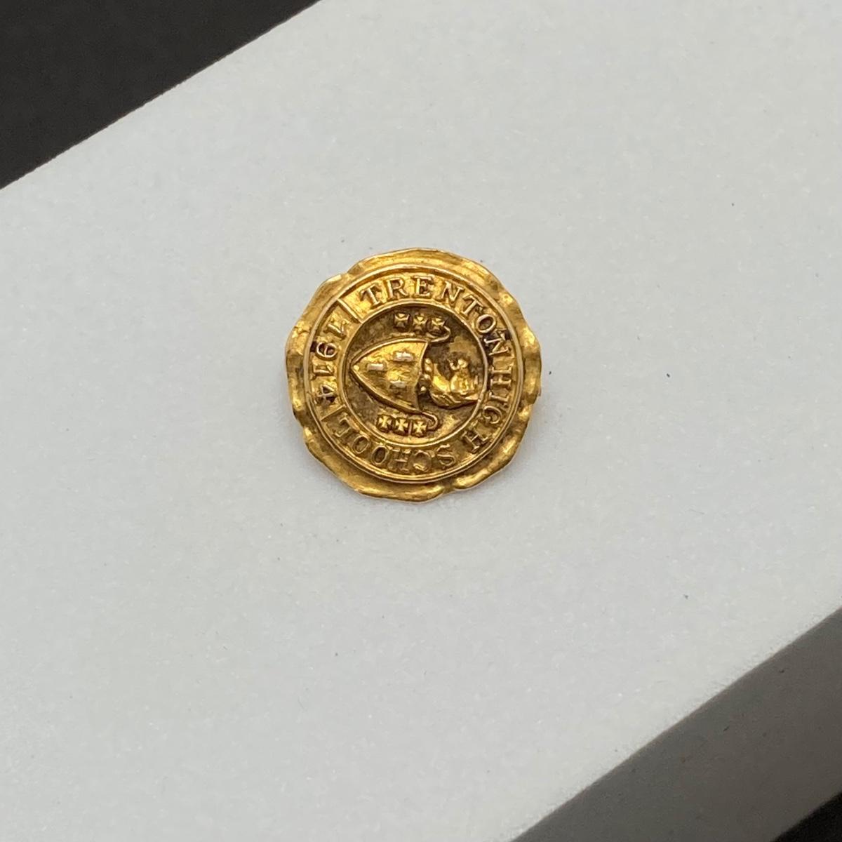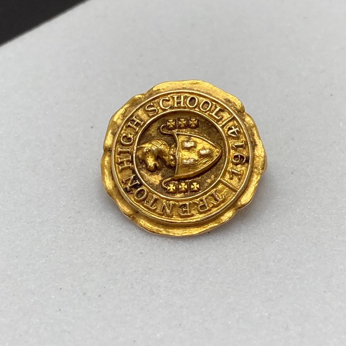 LOT 71: Antique Gold Personalized Warren & Co New York Trenton High School 1914 Class Pin - 14K 2.2 gtw