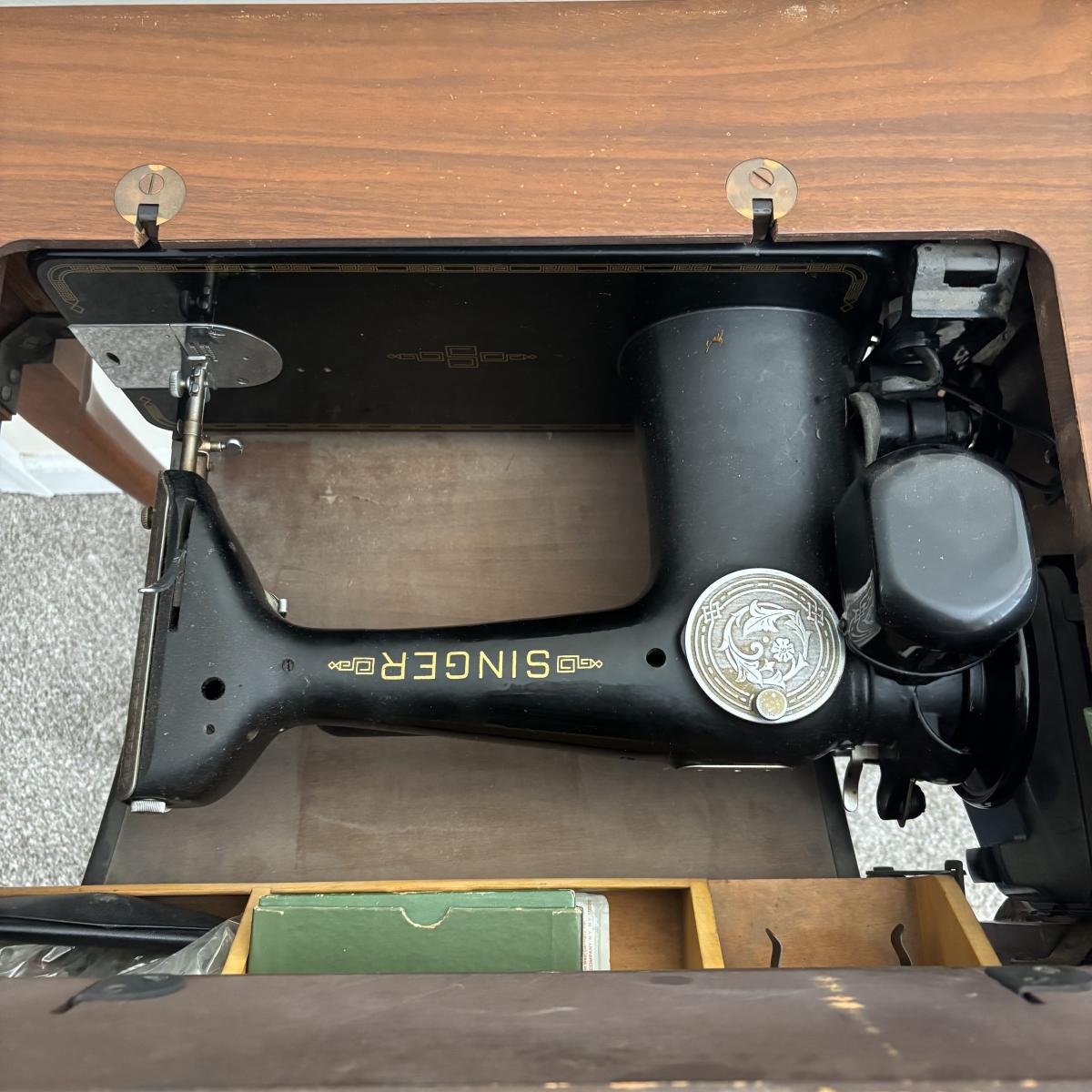 LOT 88: Vintage Singer Sewing Machine in Cabinet