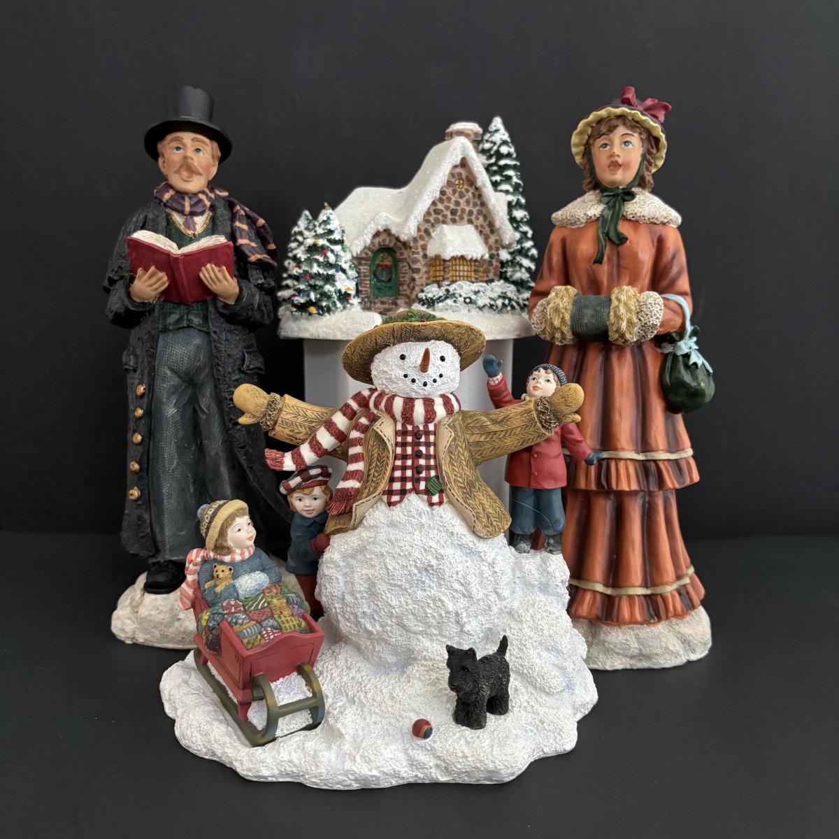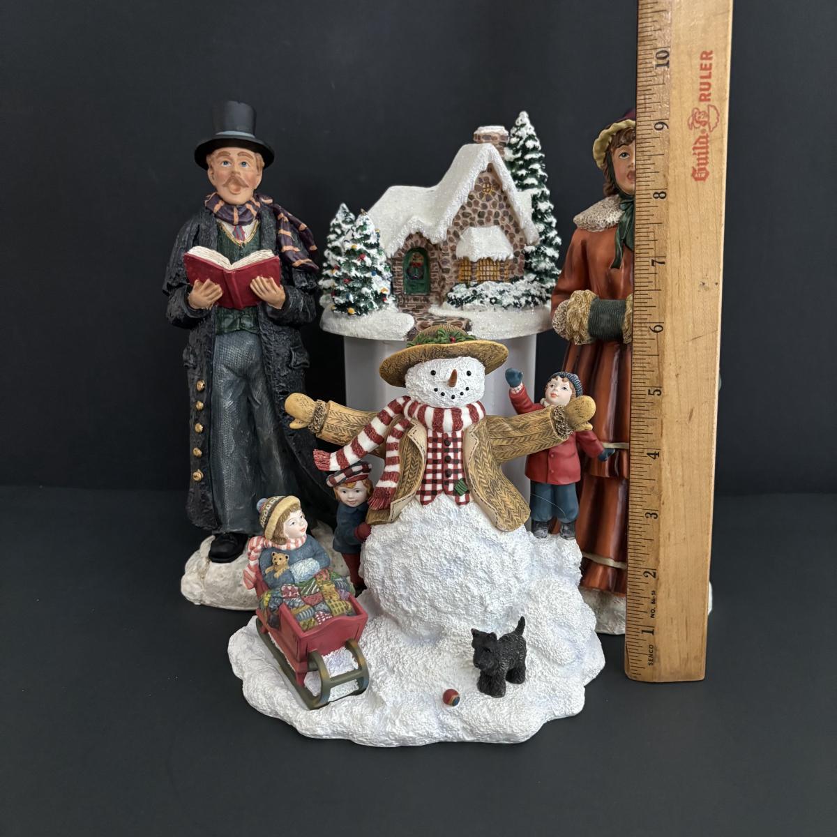 LOT 94: Sherri Buck Baldwin "Weekend Play" Figure, Thomas Kinkade Tele Flora Candle Holder & Holiday Caroling Figures