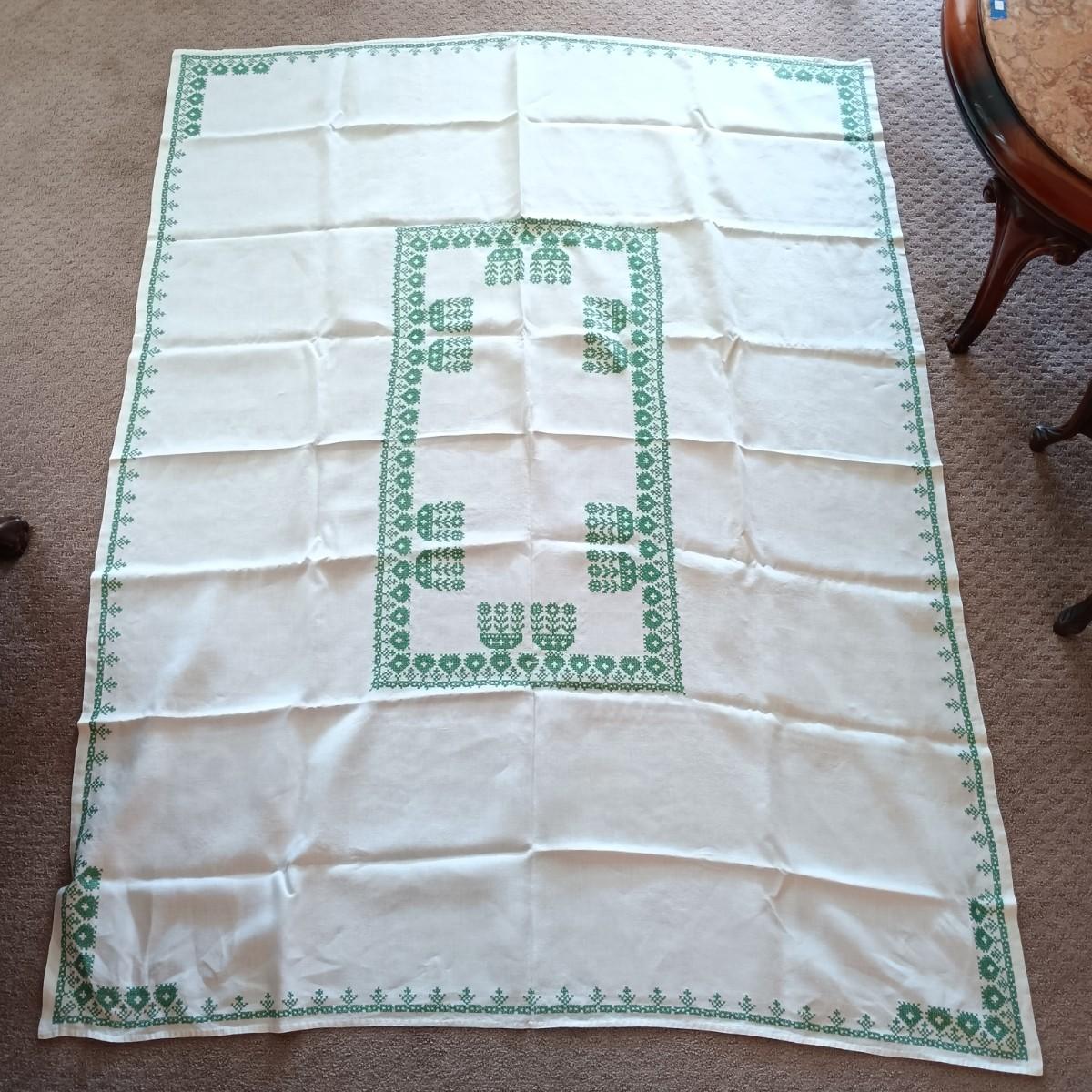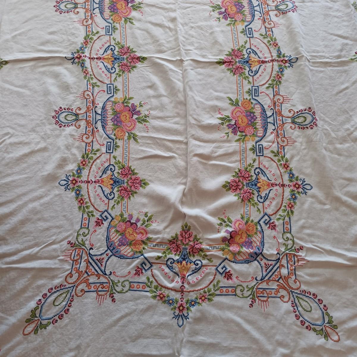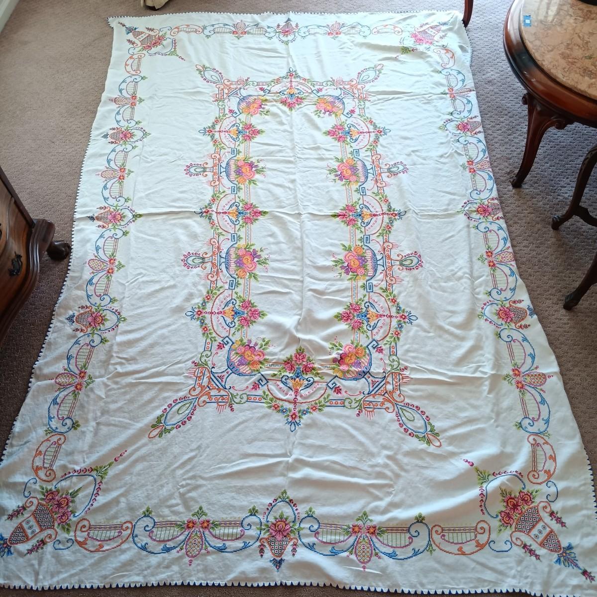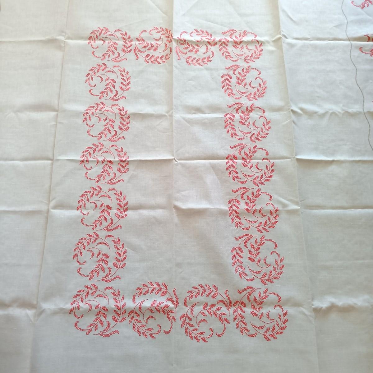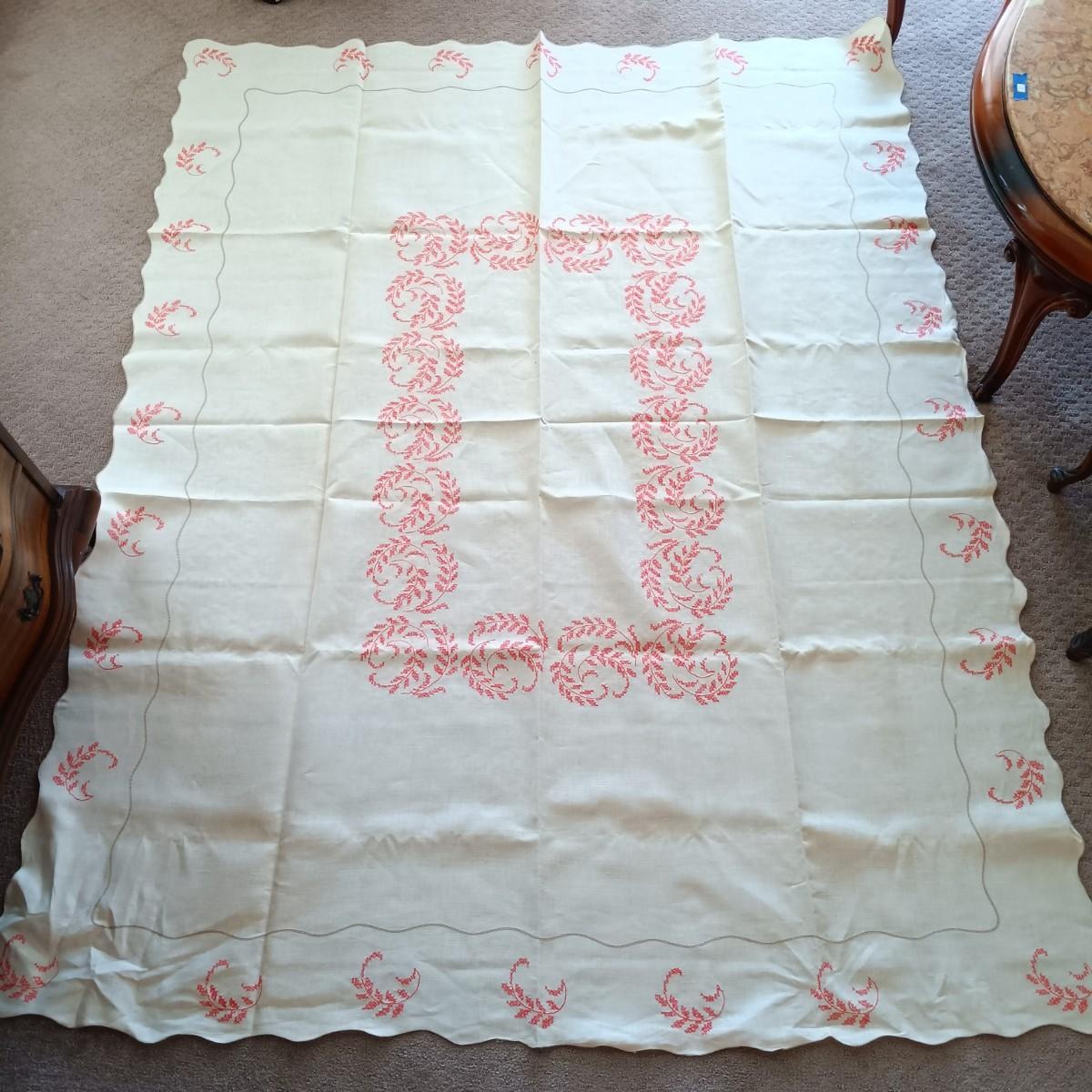 Pink Embroidered Tablecloth: 7' x 5.5'