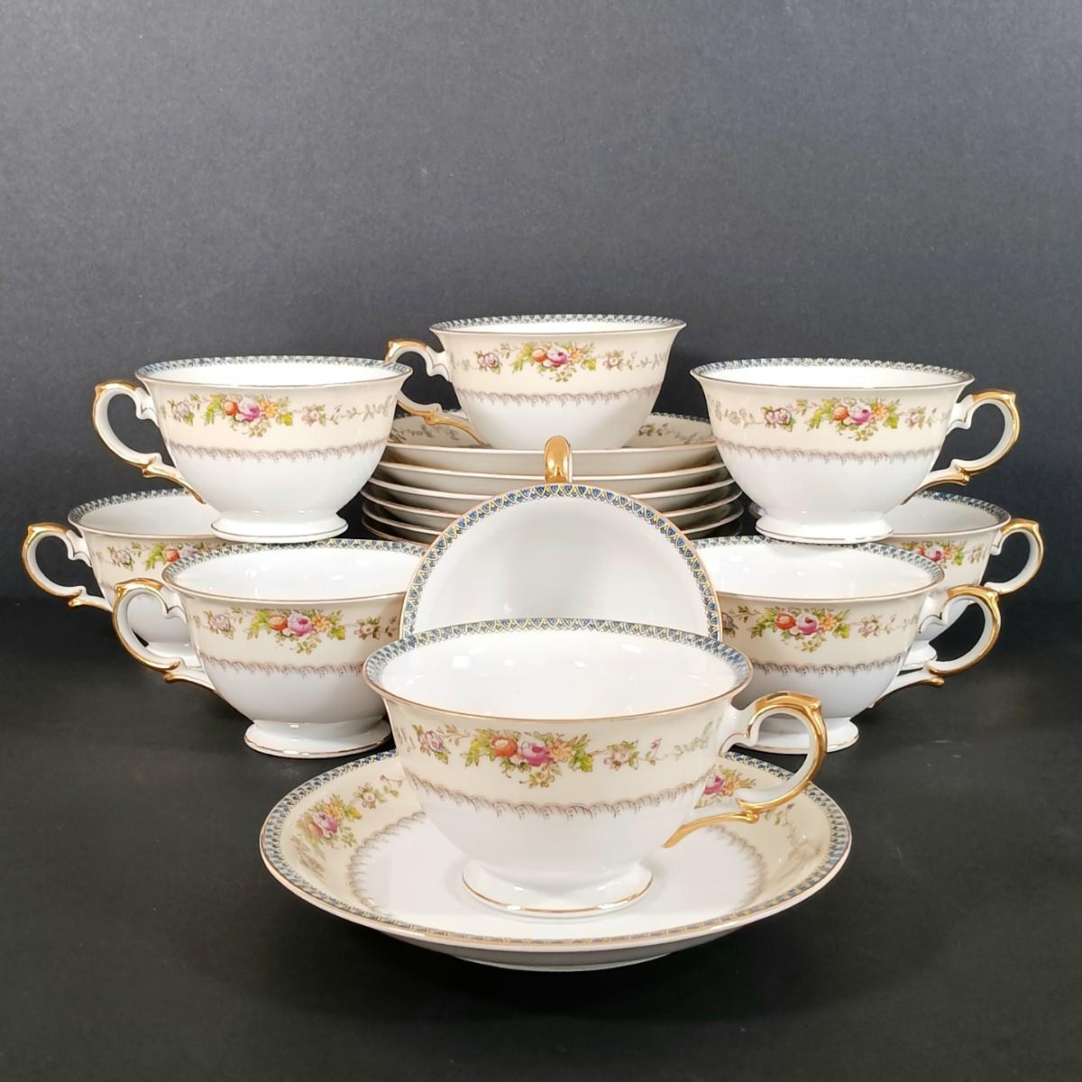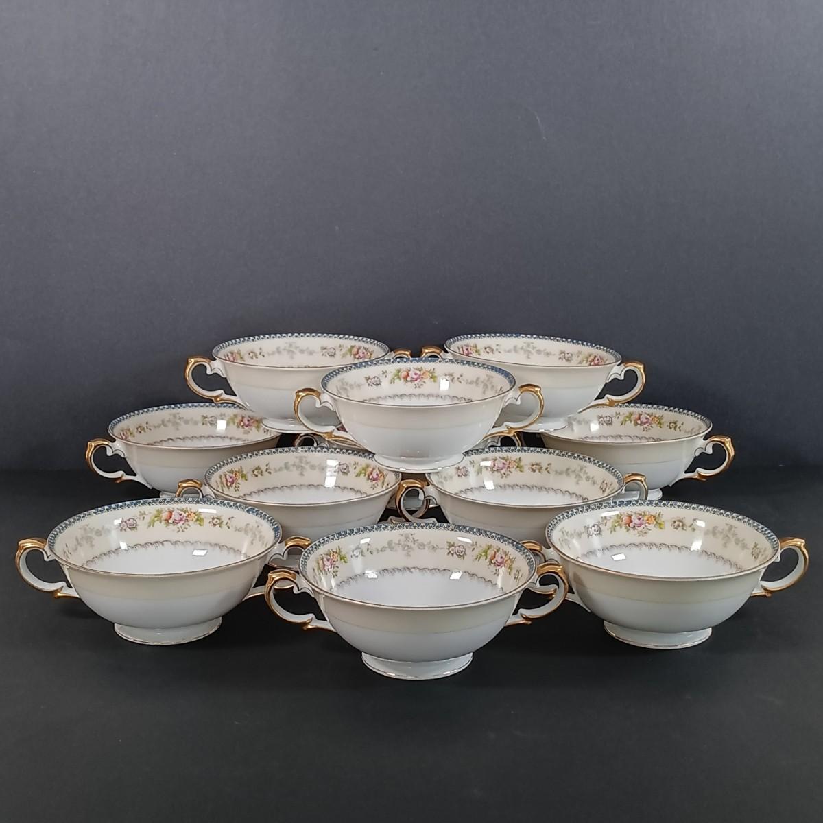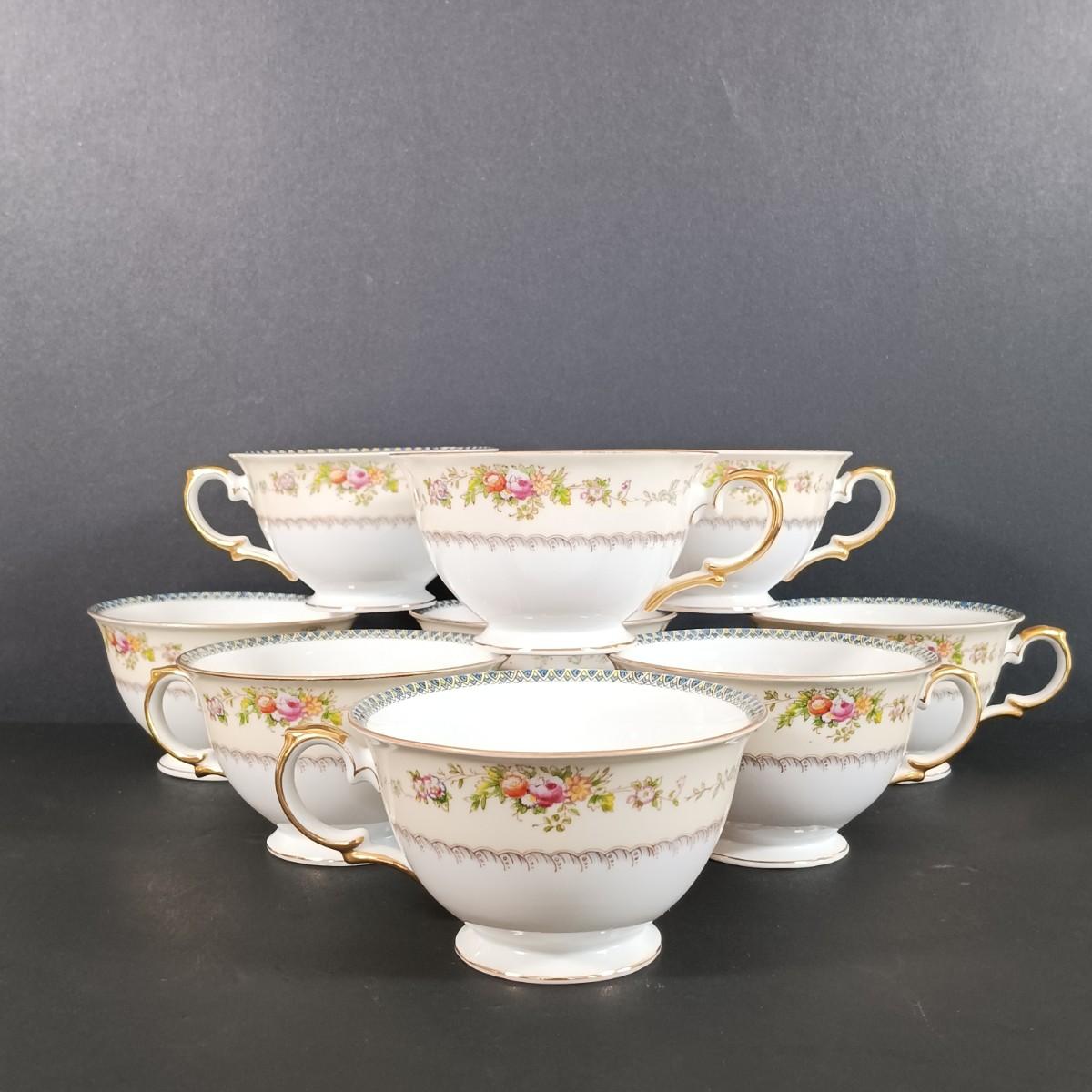 (11) Double Handled Teacups w/ (12) Saucers