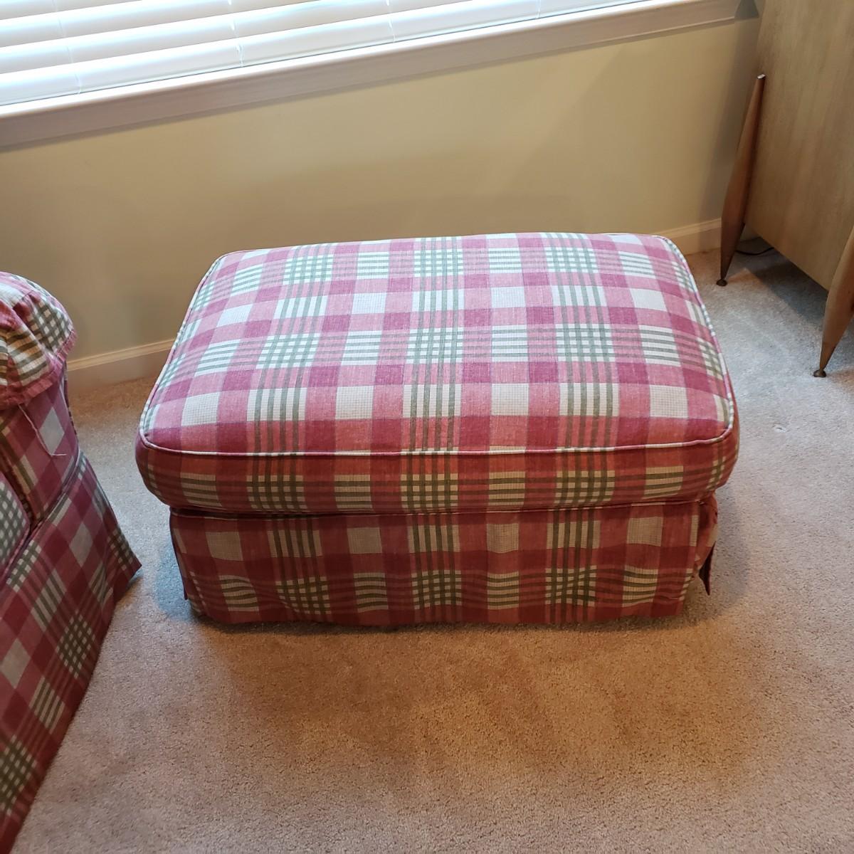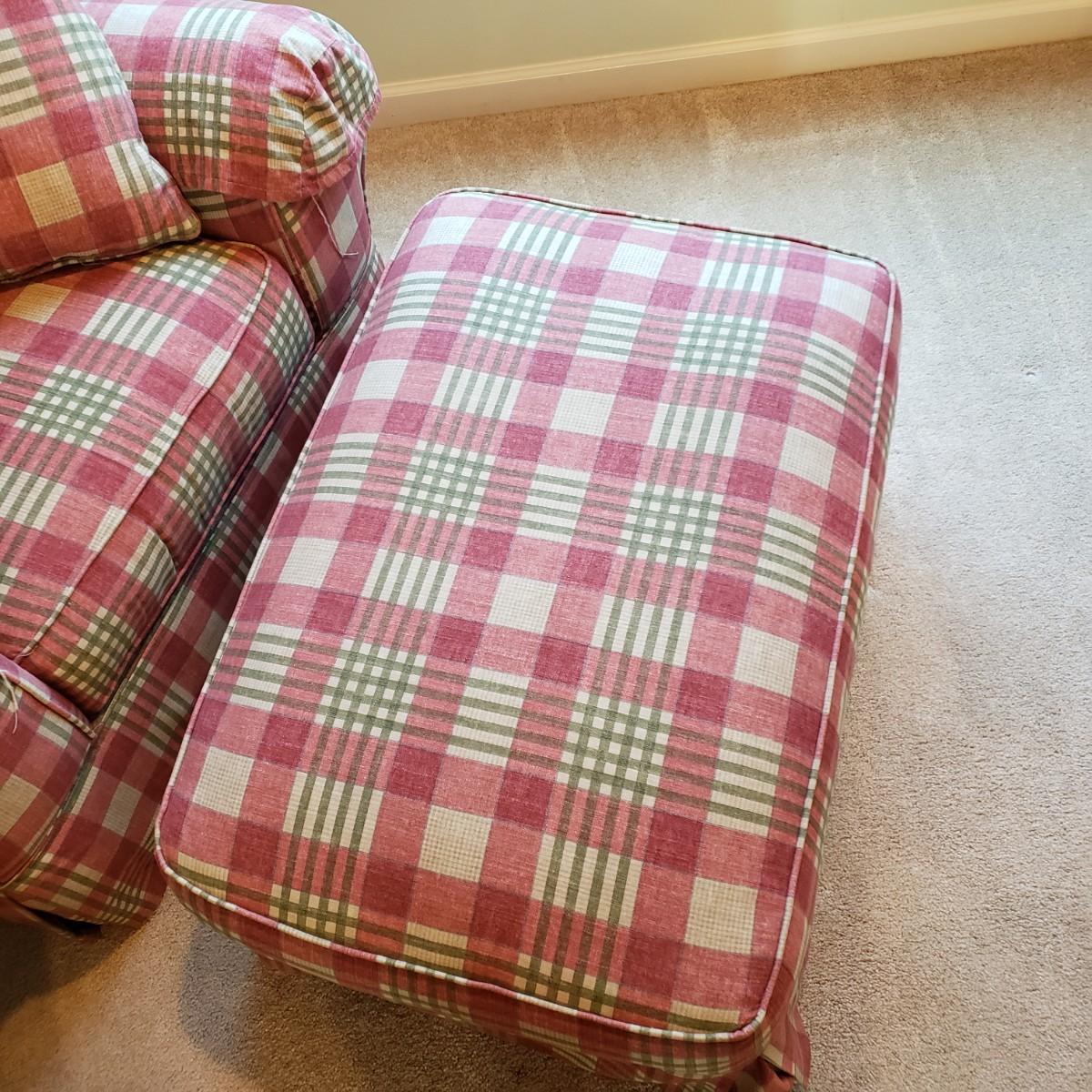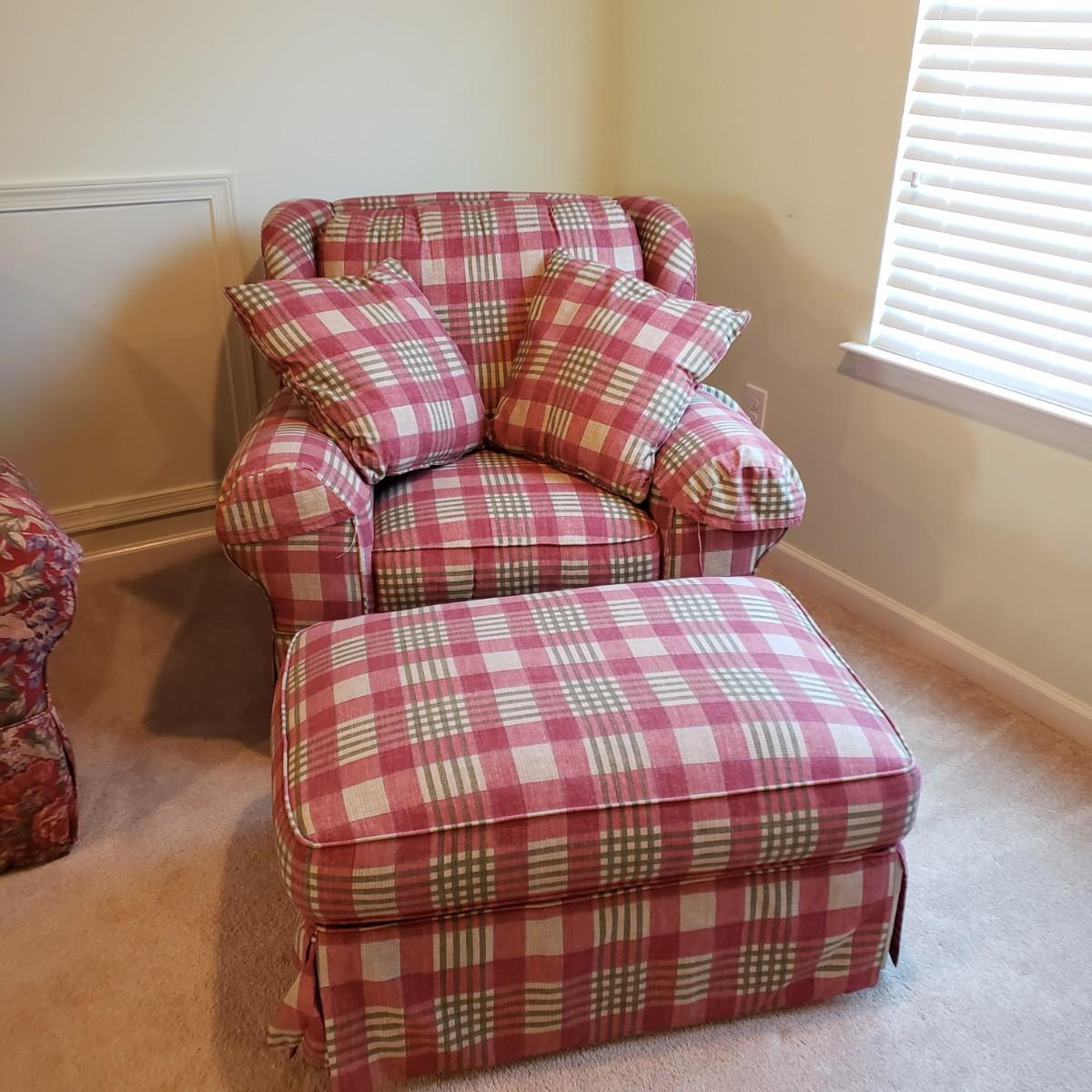 LOT 5X: Flexsteel Plaid Oversized Chair with Ottoman