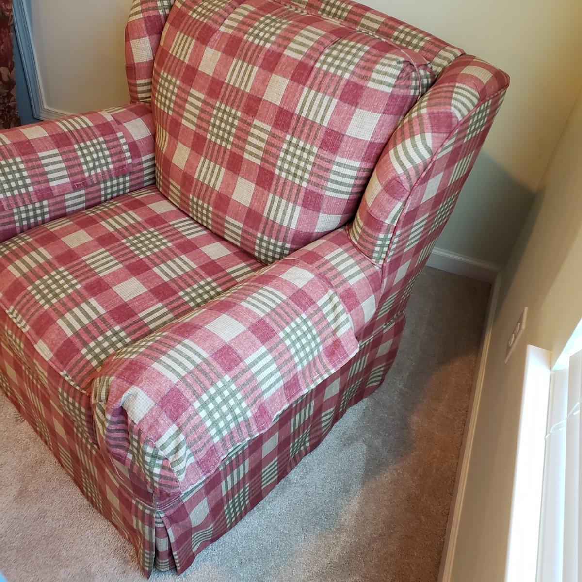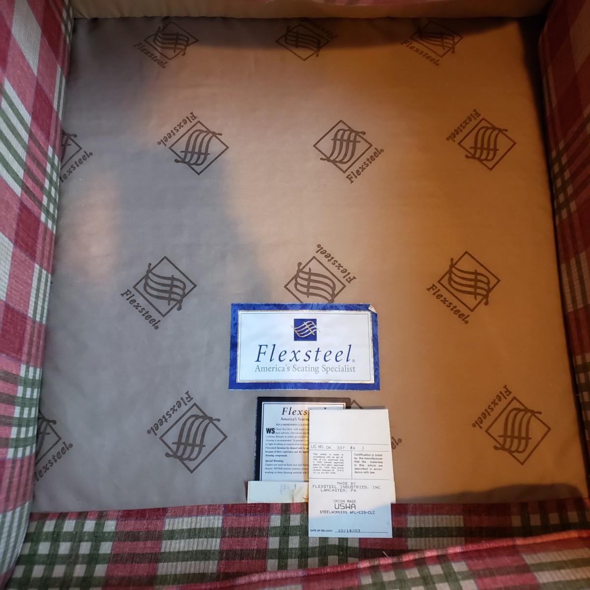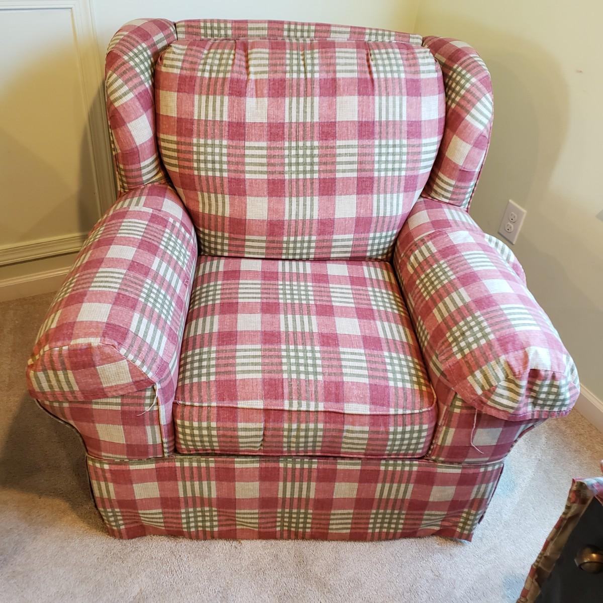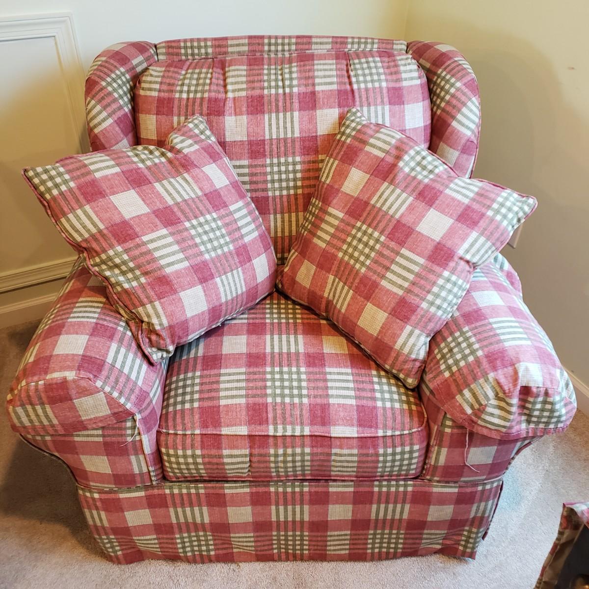 LOT 5X: Flexsteel Plaid Oversized Chair with Ottoman