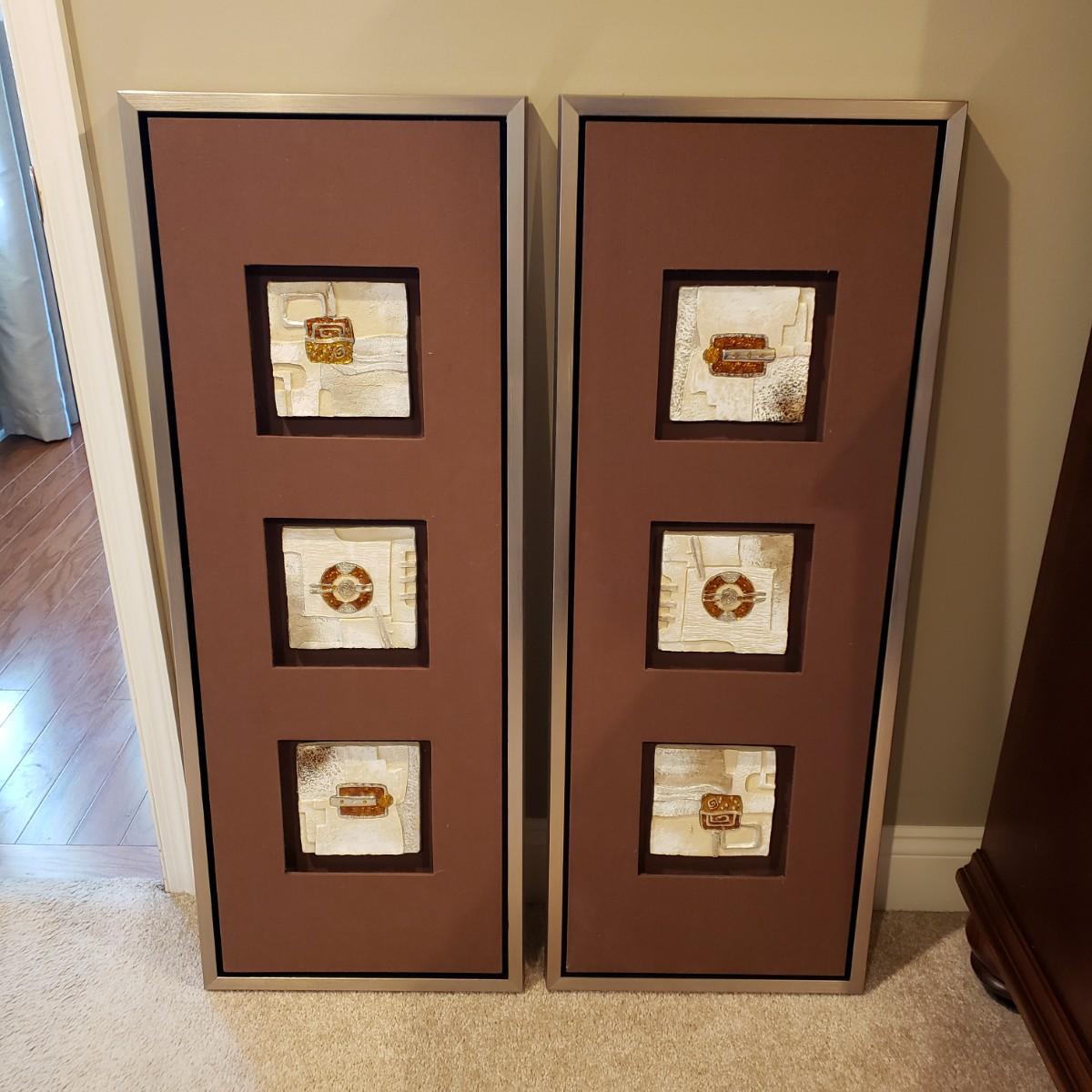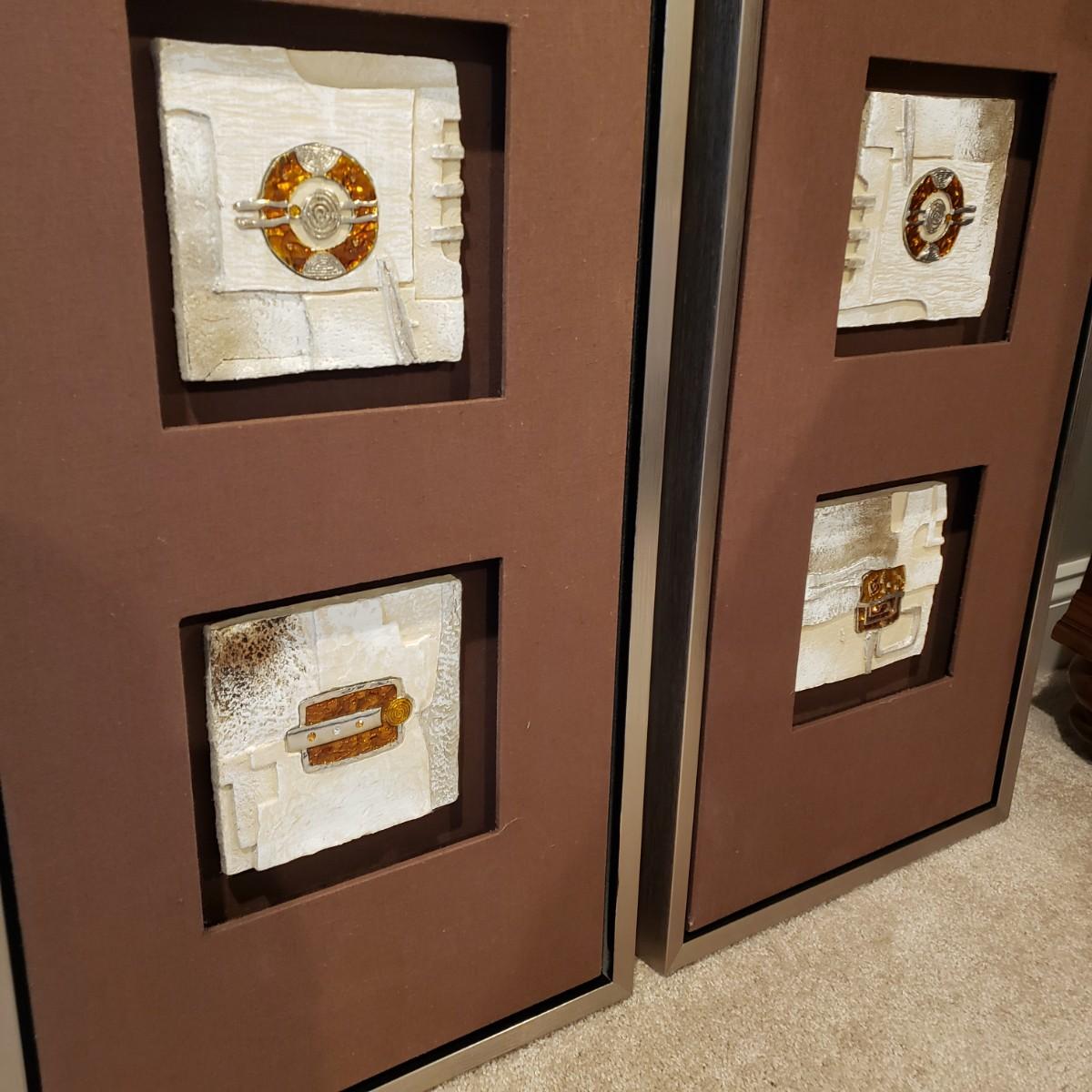 LOT 8Y: Pair of Matching Embellished Resin Art Wall Hangings
