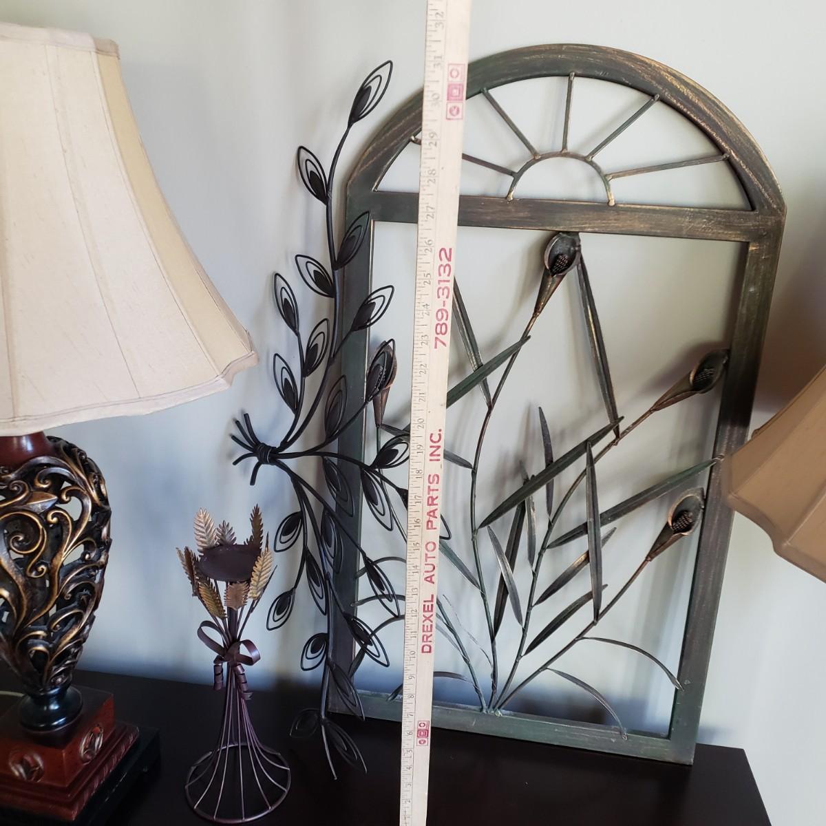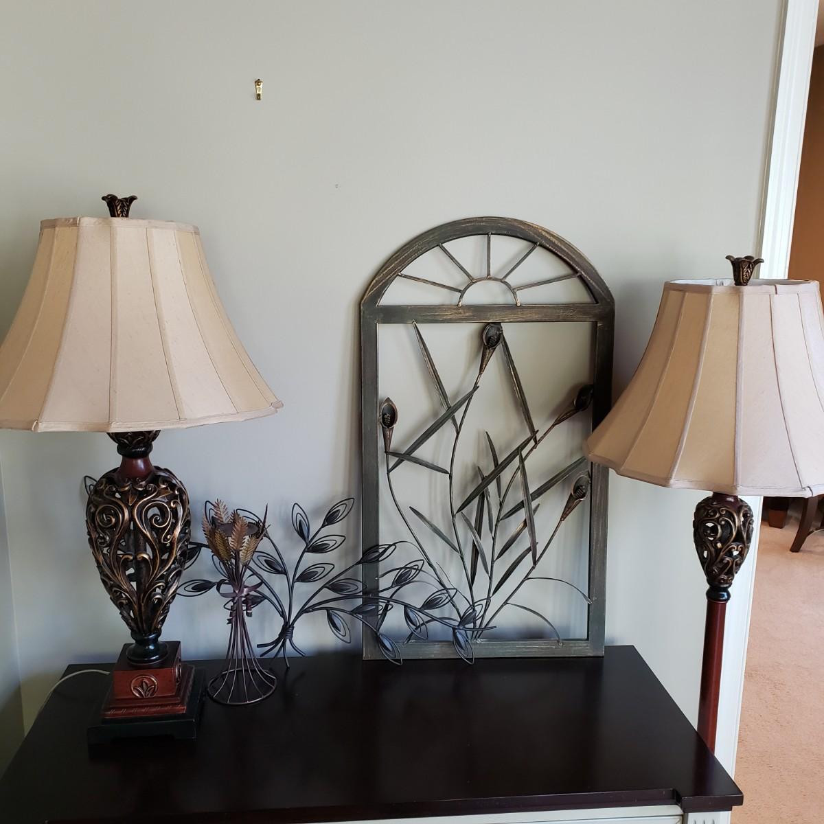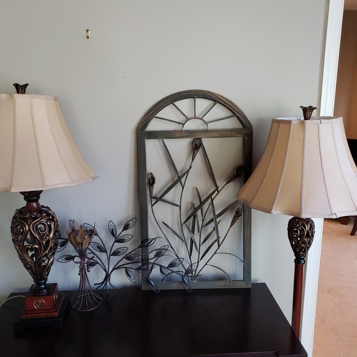 LOT 15Y: Golden Ruby Table & Floor Lamp Set with Metal Wall Art & Decor