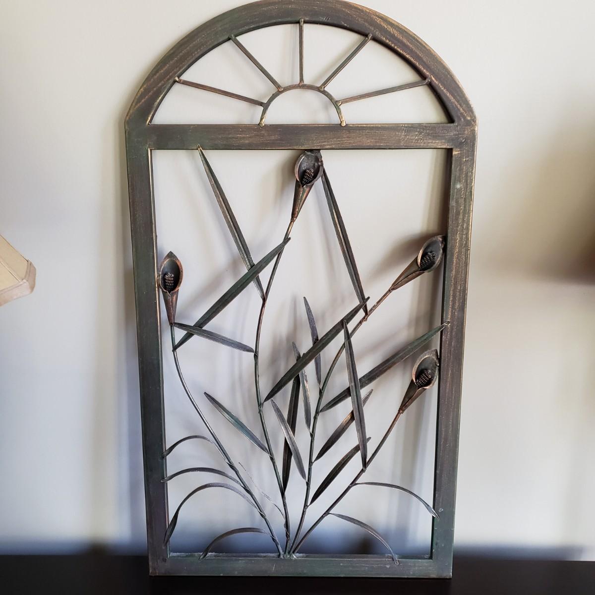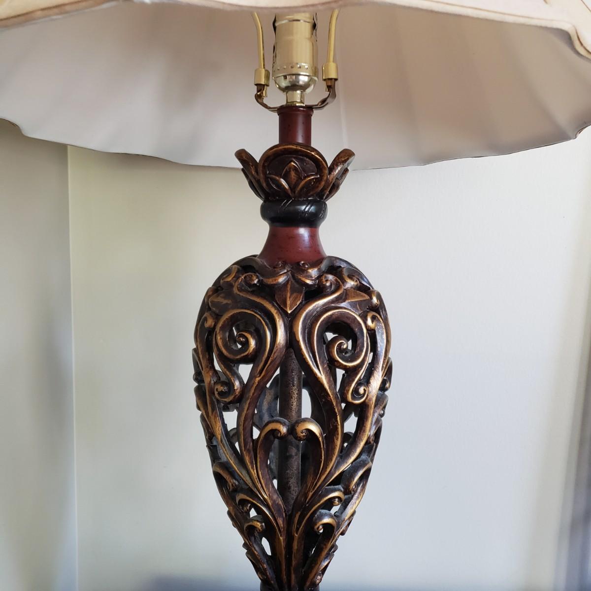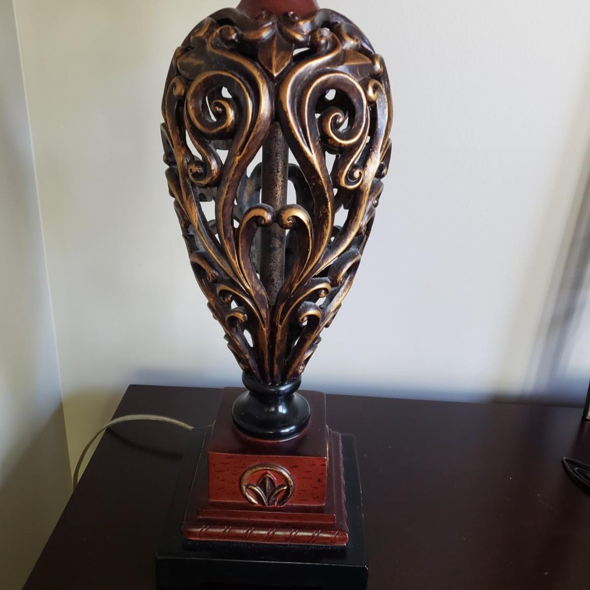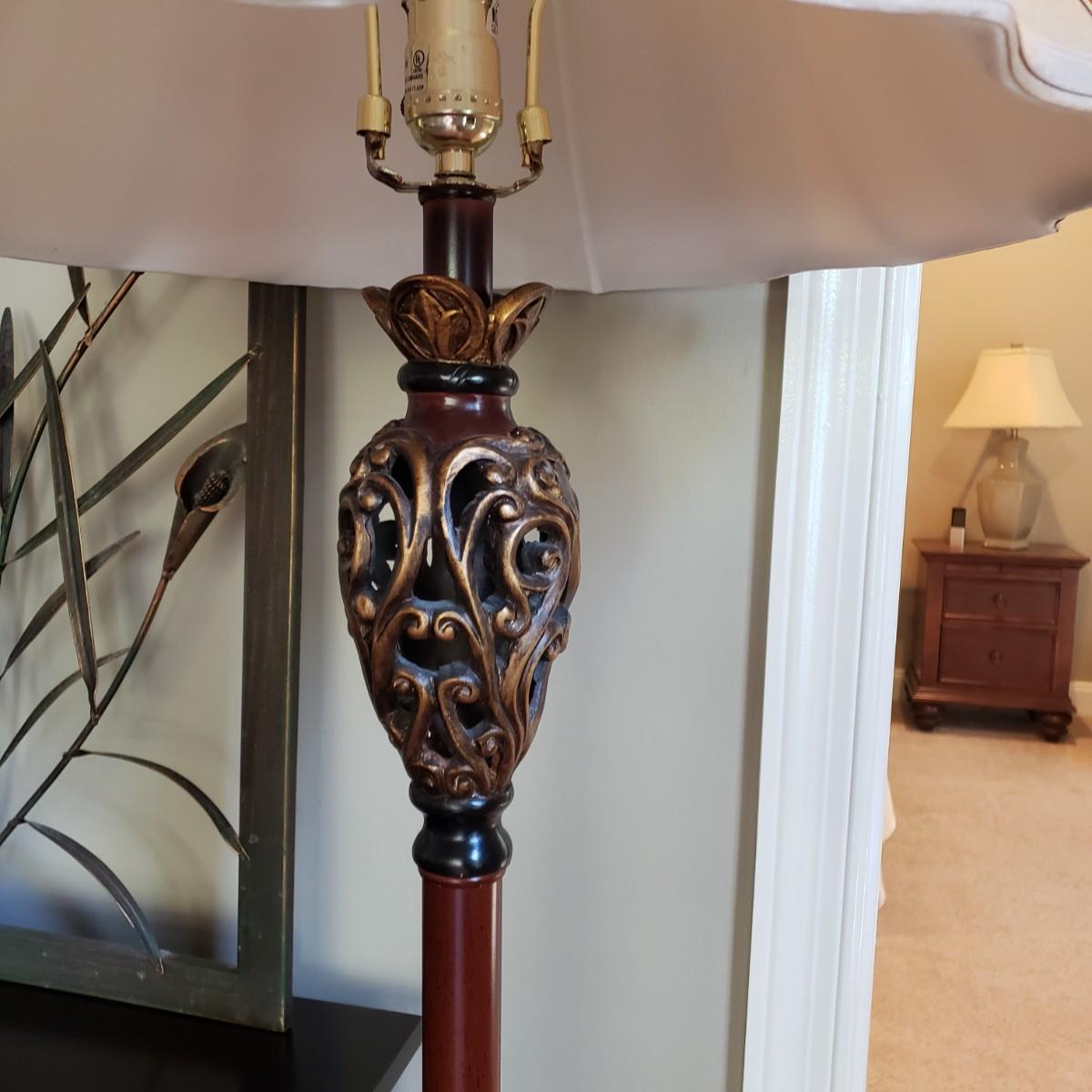 LOT 15Y: Golden Ruby Table & Floor Lamp Set with Metal Wall Art & Decor