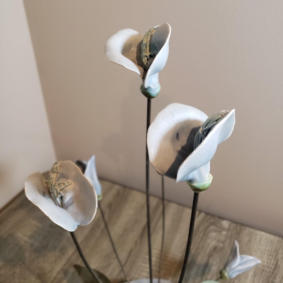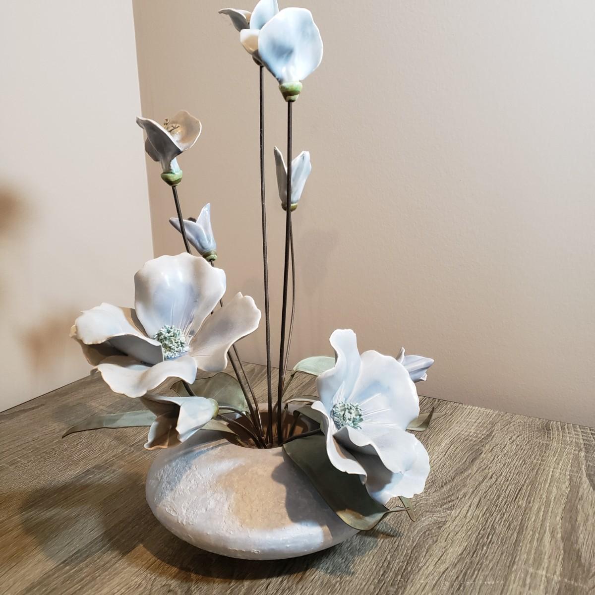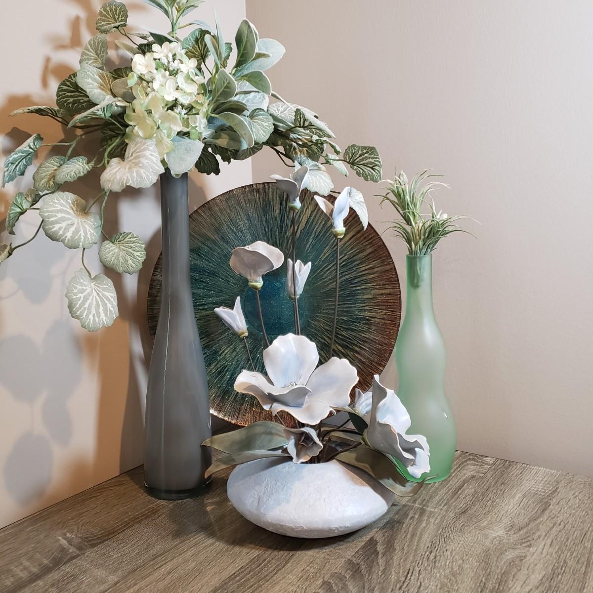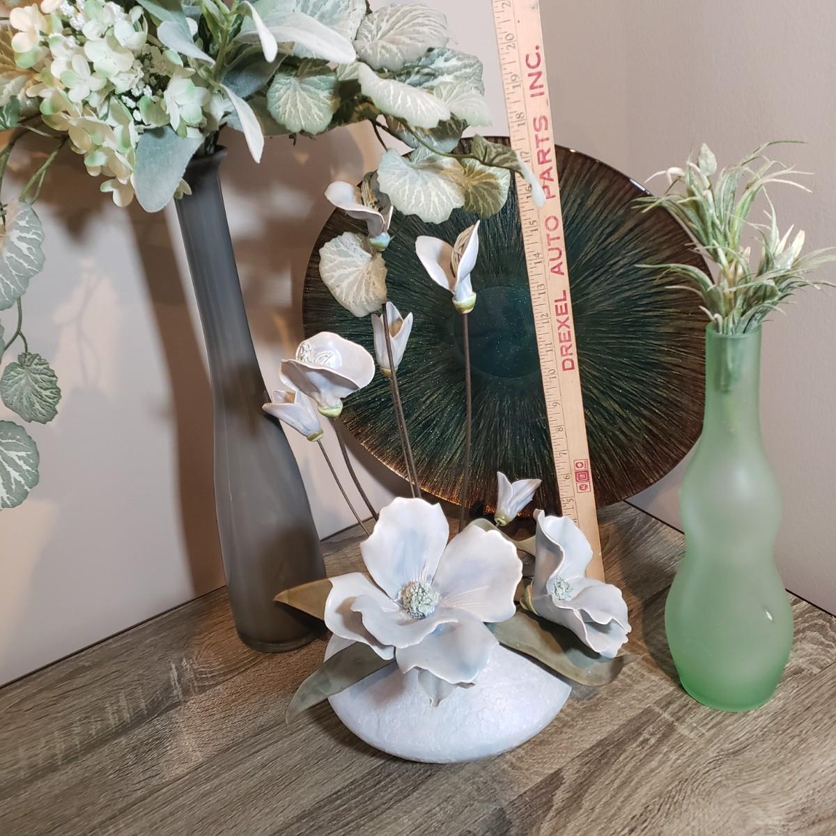 LOT 19Y: Ceramic & Brass Floral Arrangement, Glass Vases & Large Decorative Accent Bowl