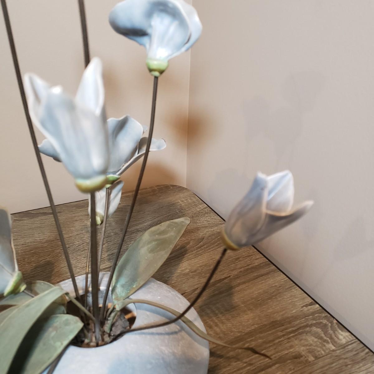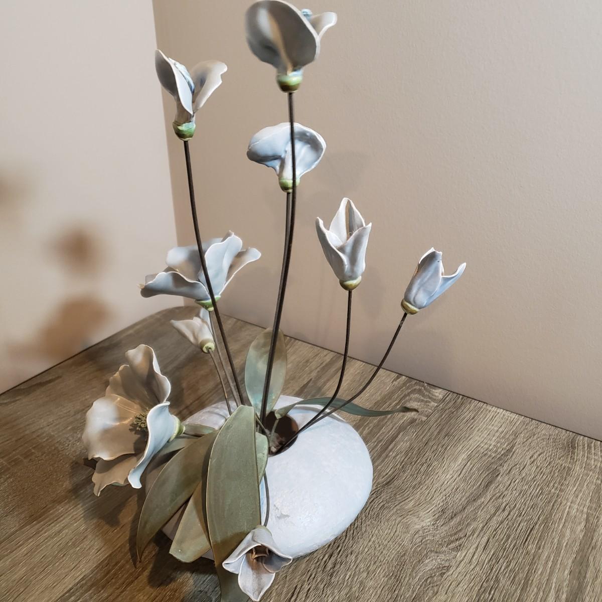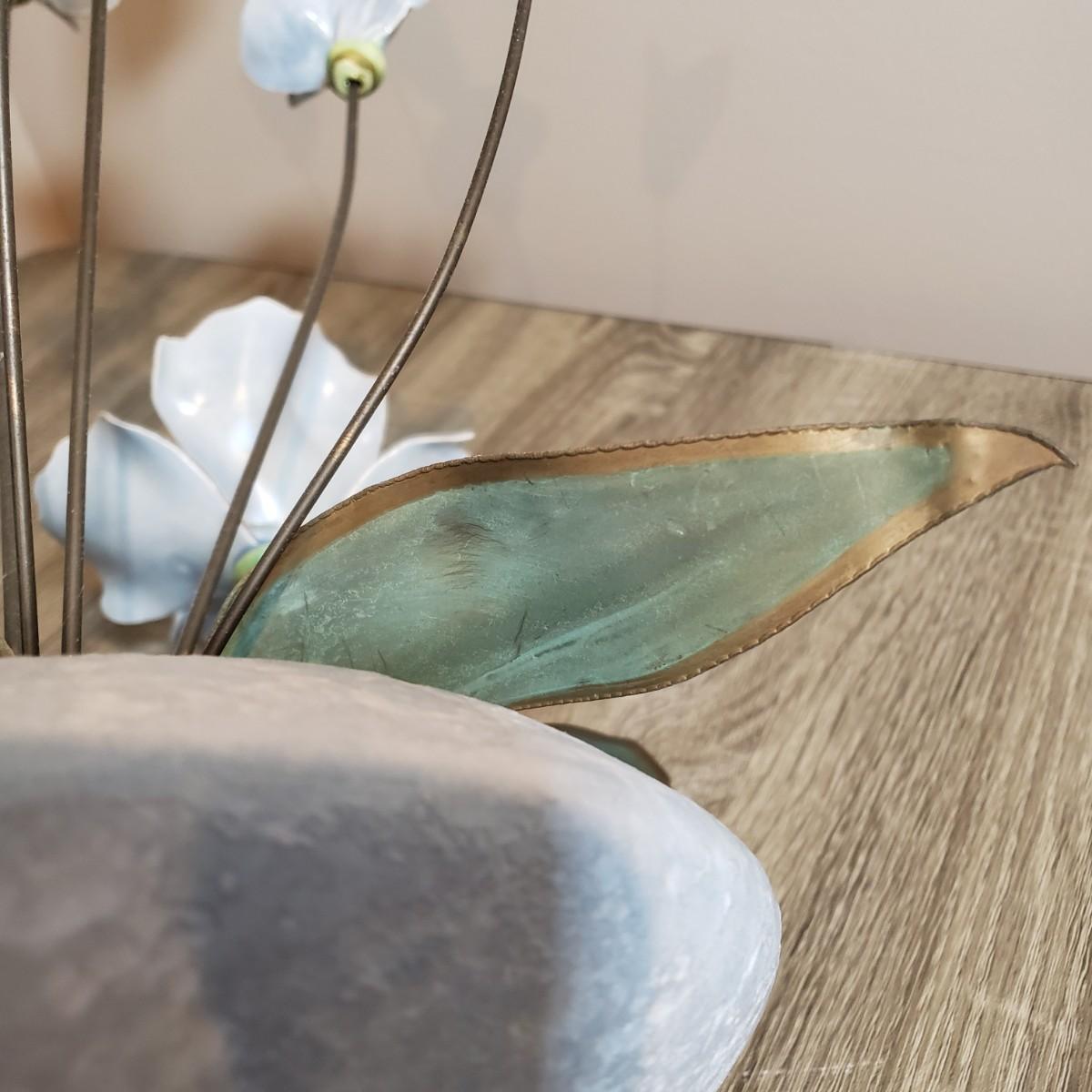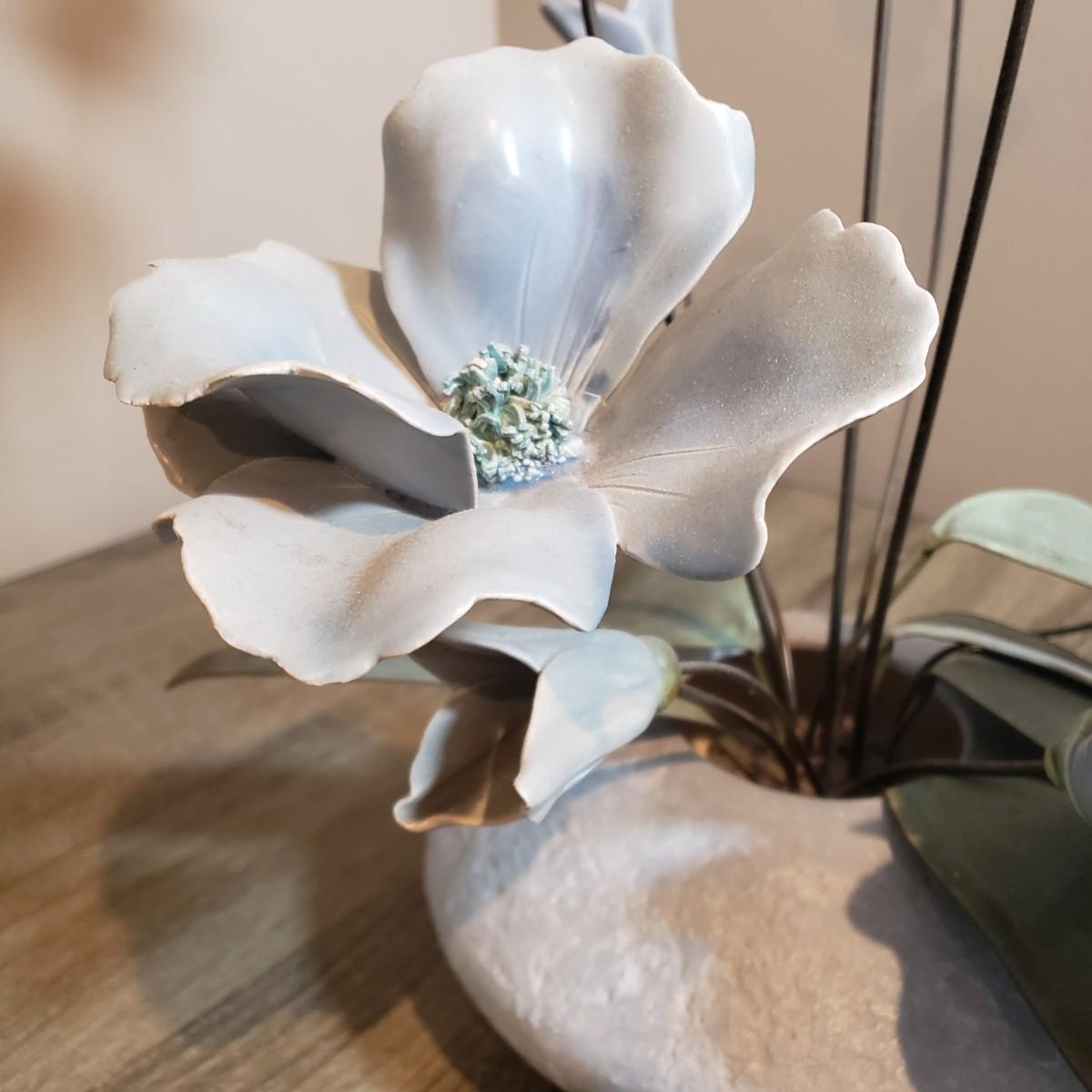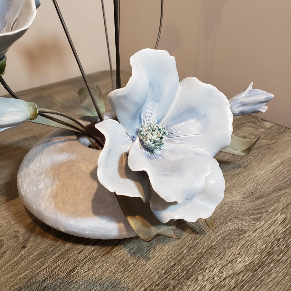 LOT 19Y: Ceramic & Brass Floral Arrangement, Glass Vases & Large Decorative Accent Bowl