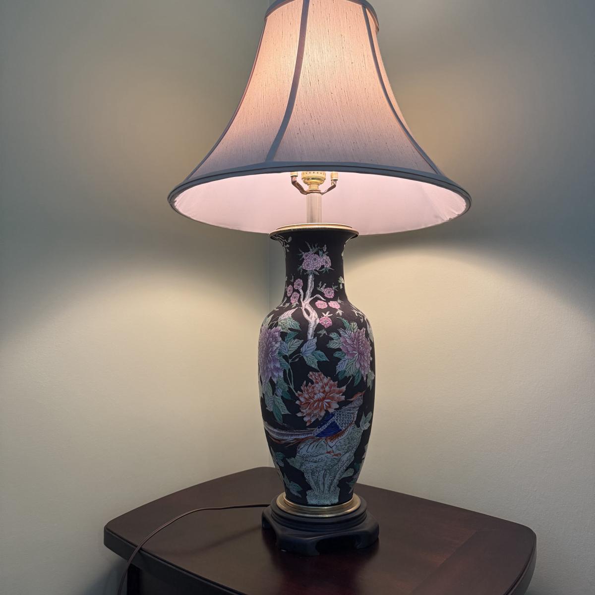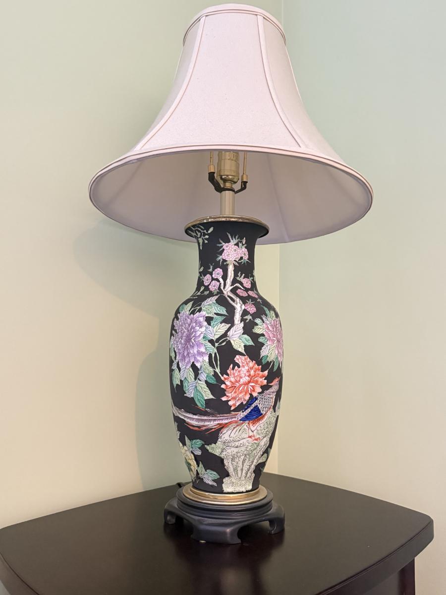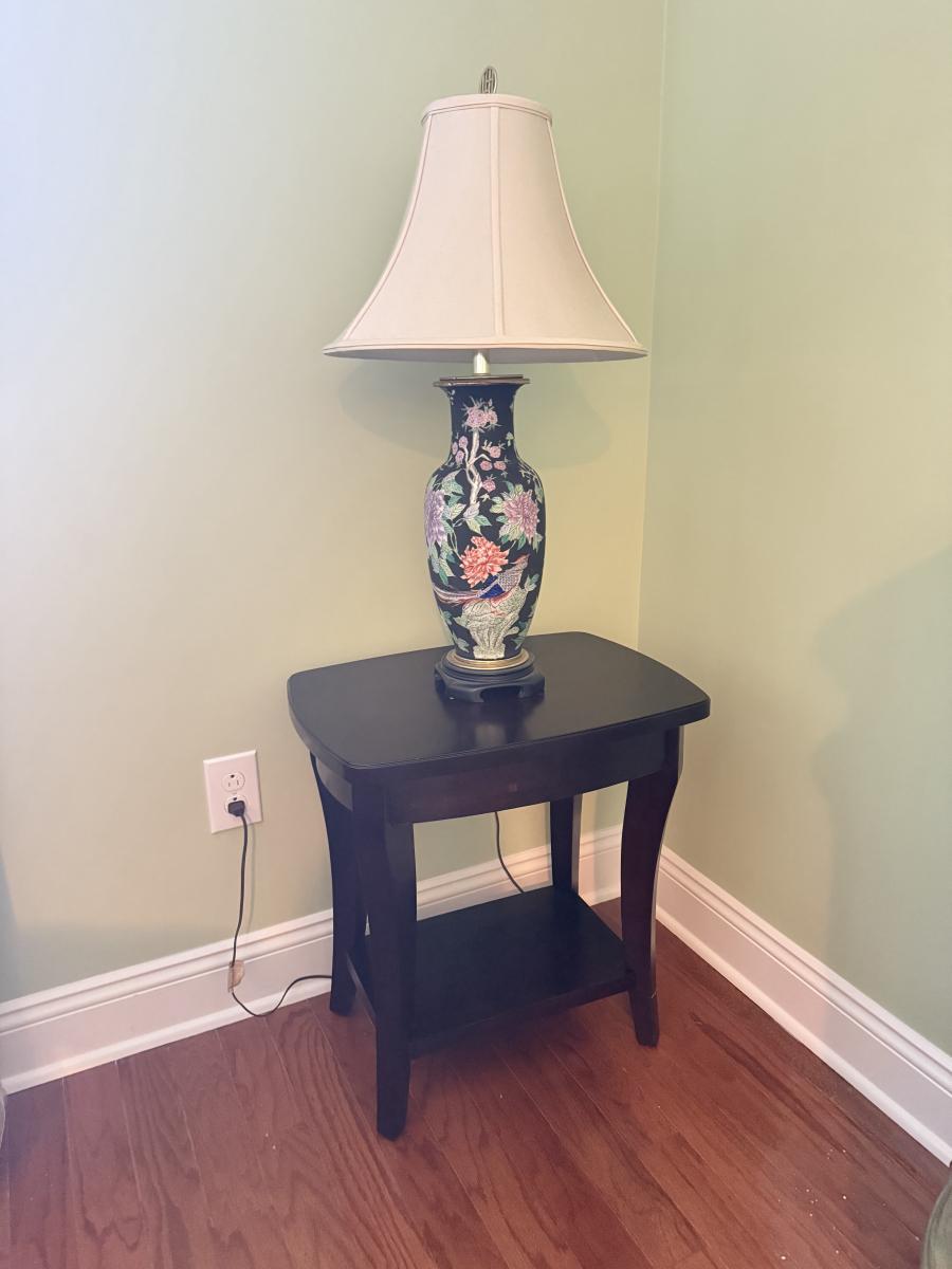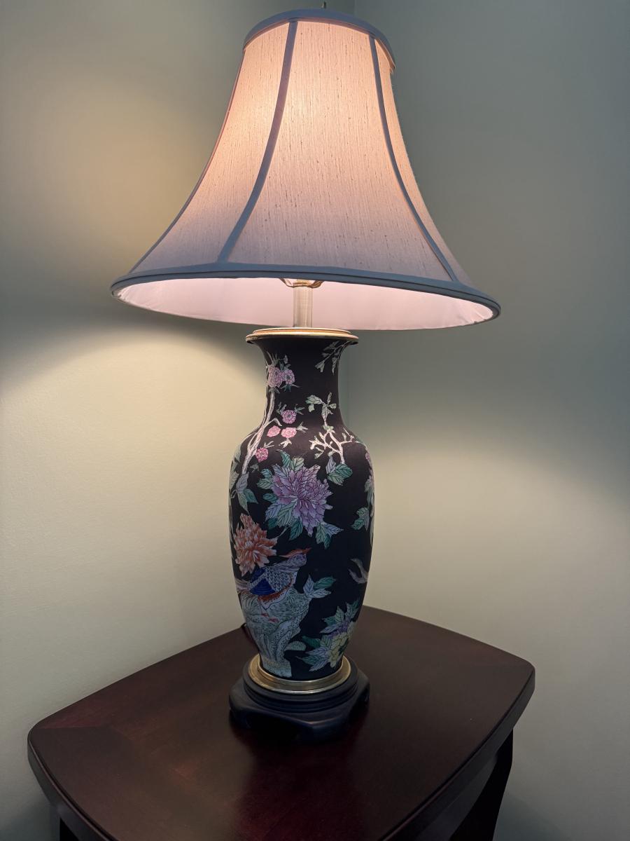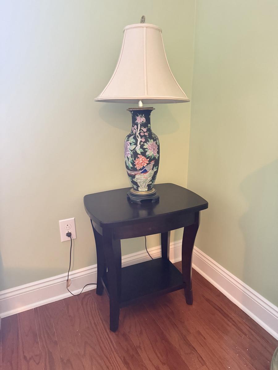LOT 24D: Bird & Floral Porcelain Base 32” Lamp w/ End Table