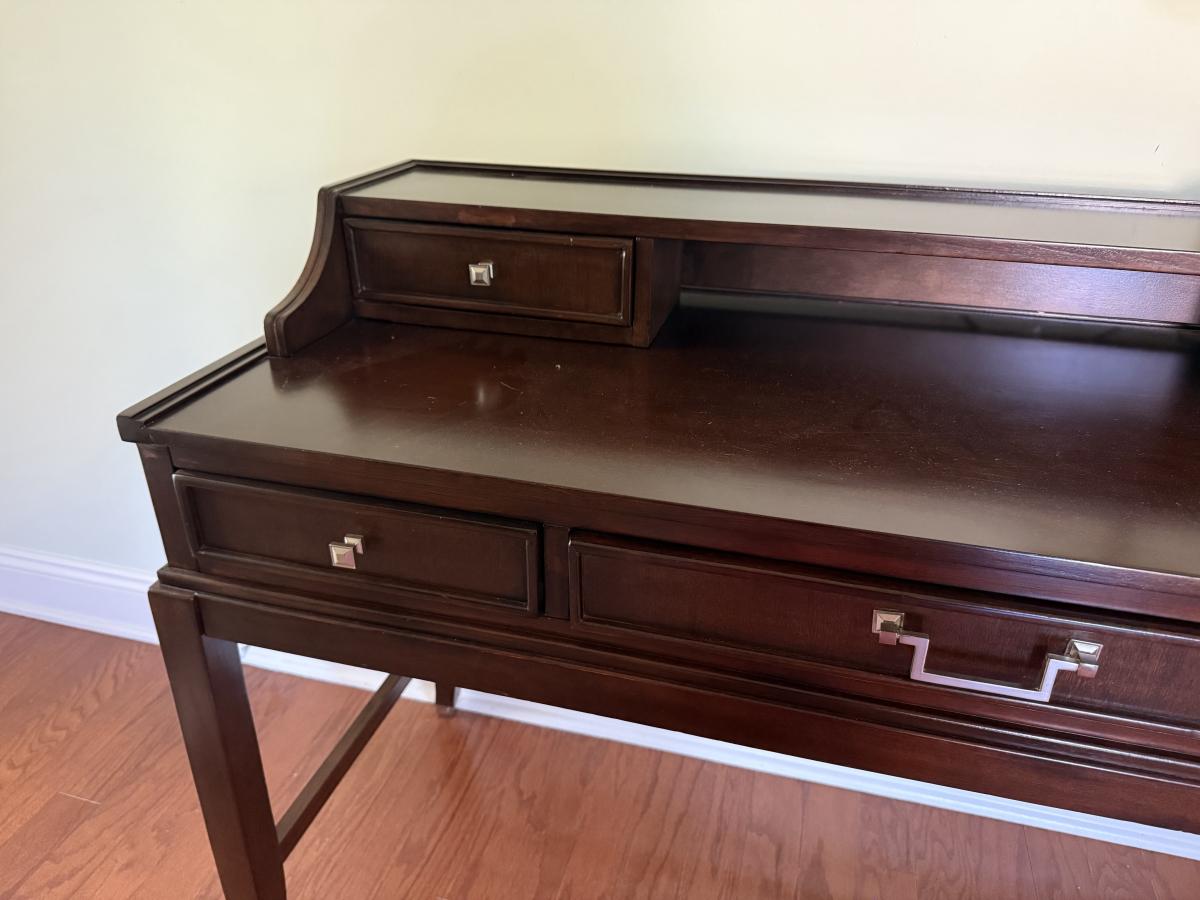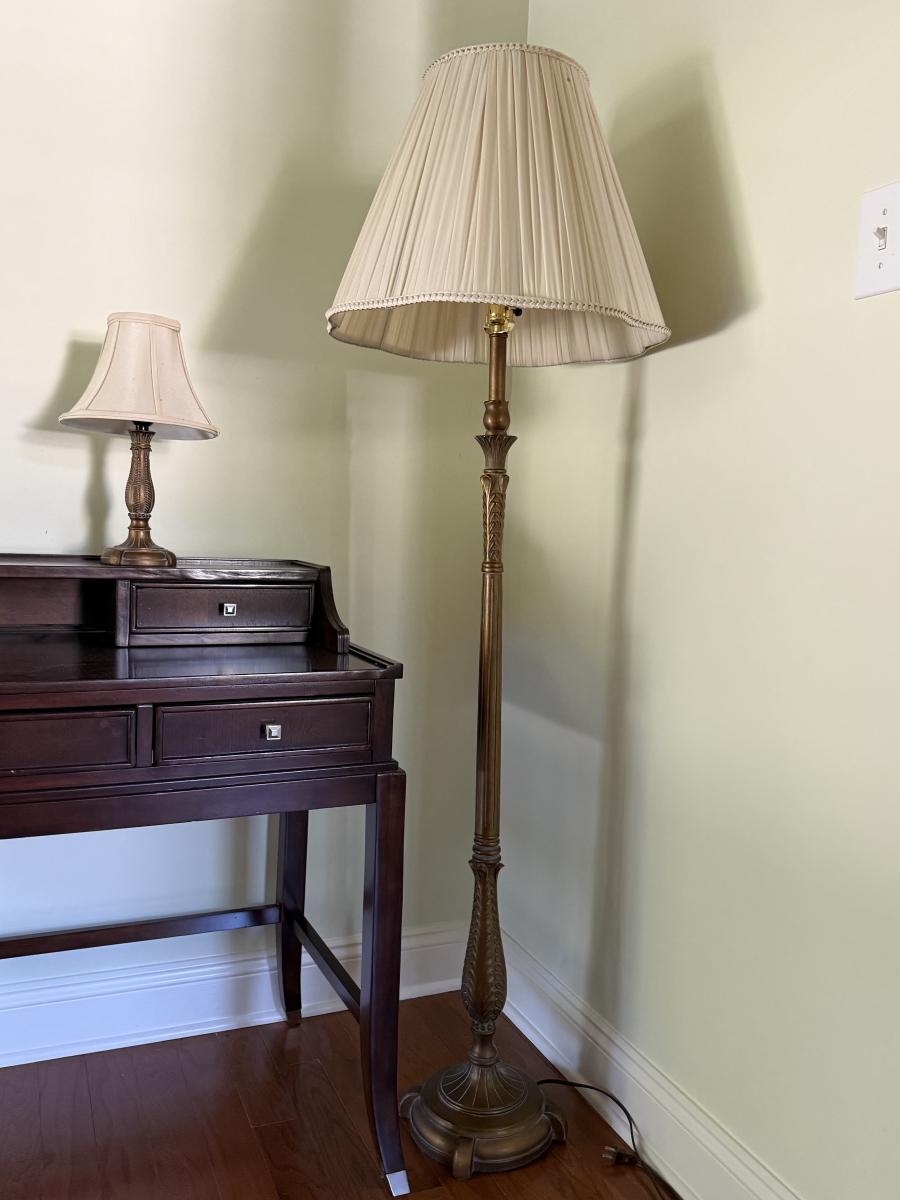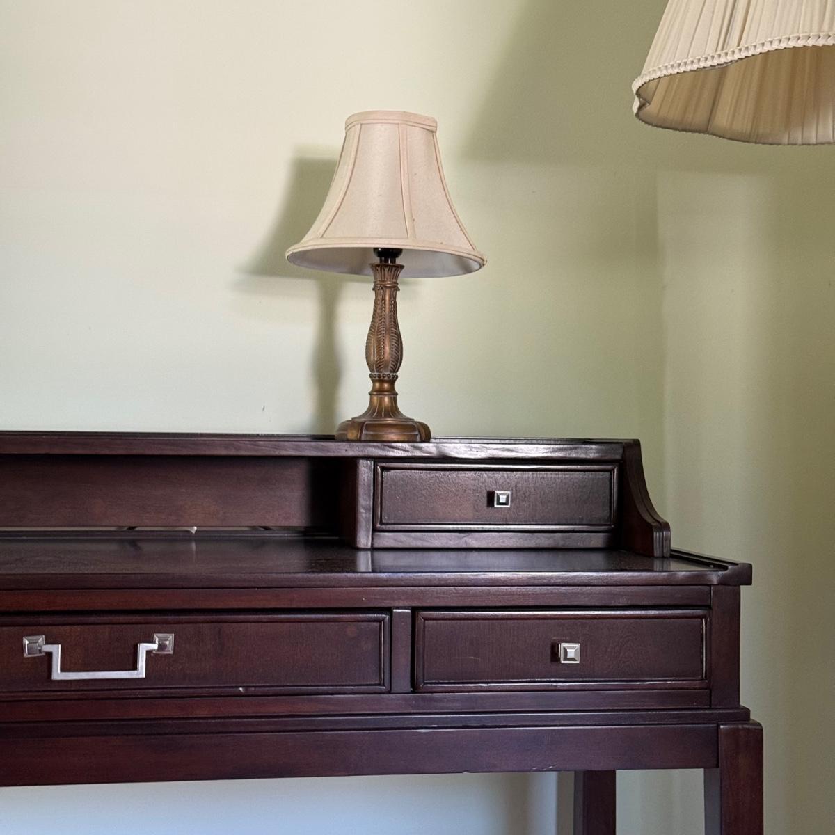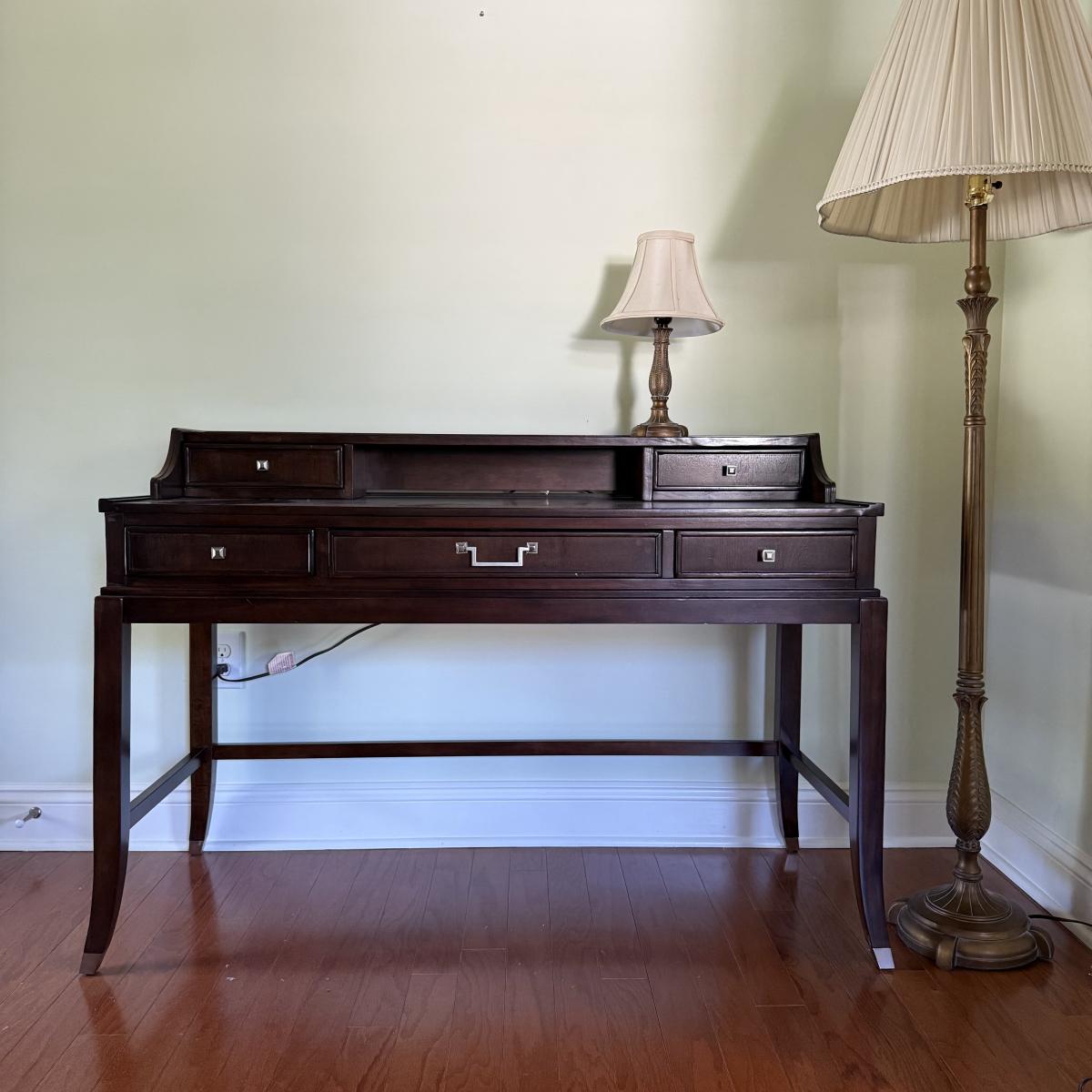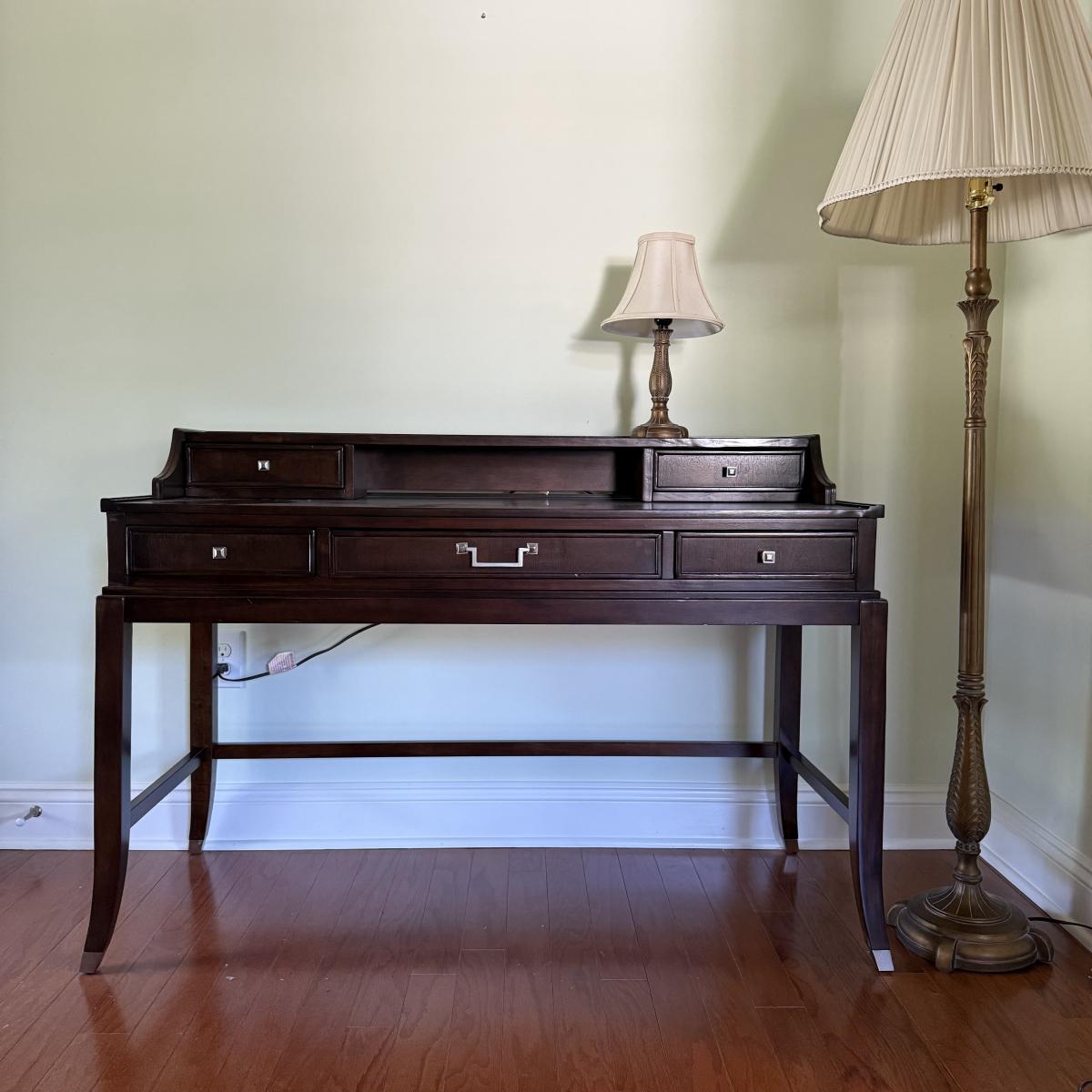 LOT 31H: Classic Wooden Desk w/ Pair of Lamps