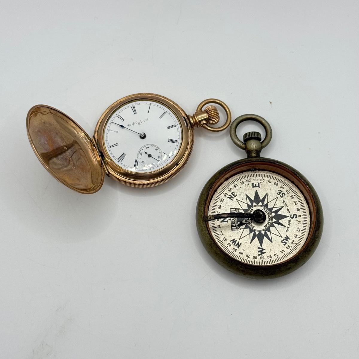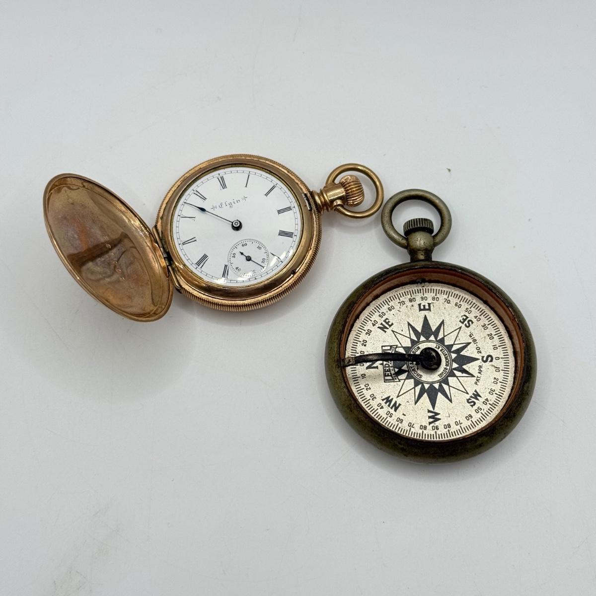 LOT 39J: C. W. C. Co. Planet Elgin Pocket Watch & Vintage Leedawl Short & Mason Compass