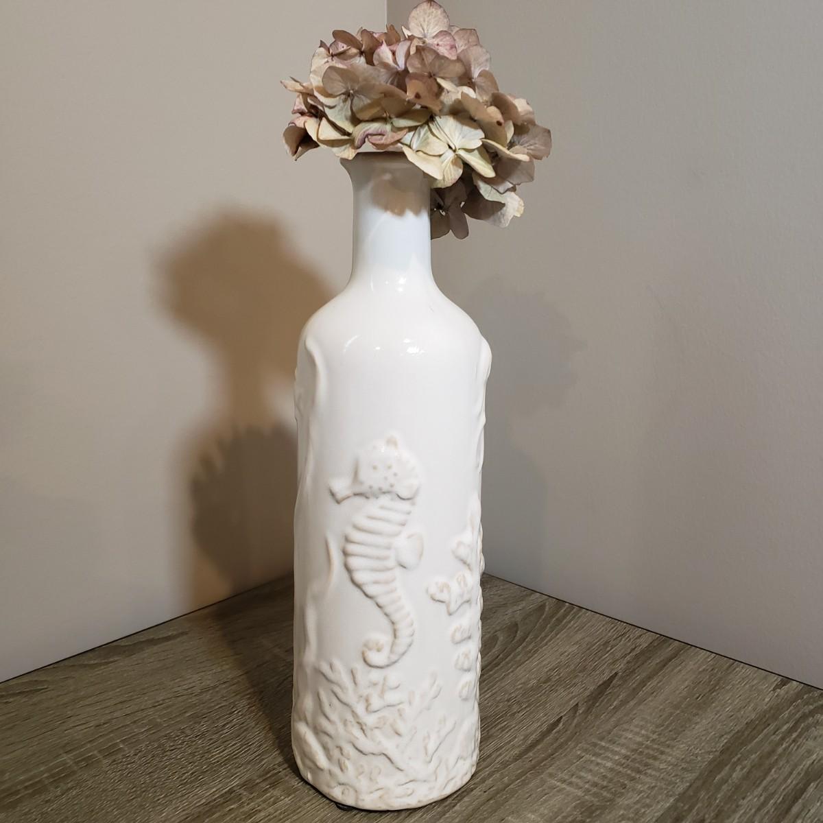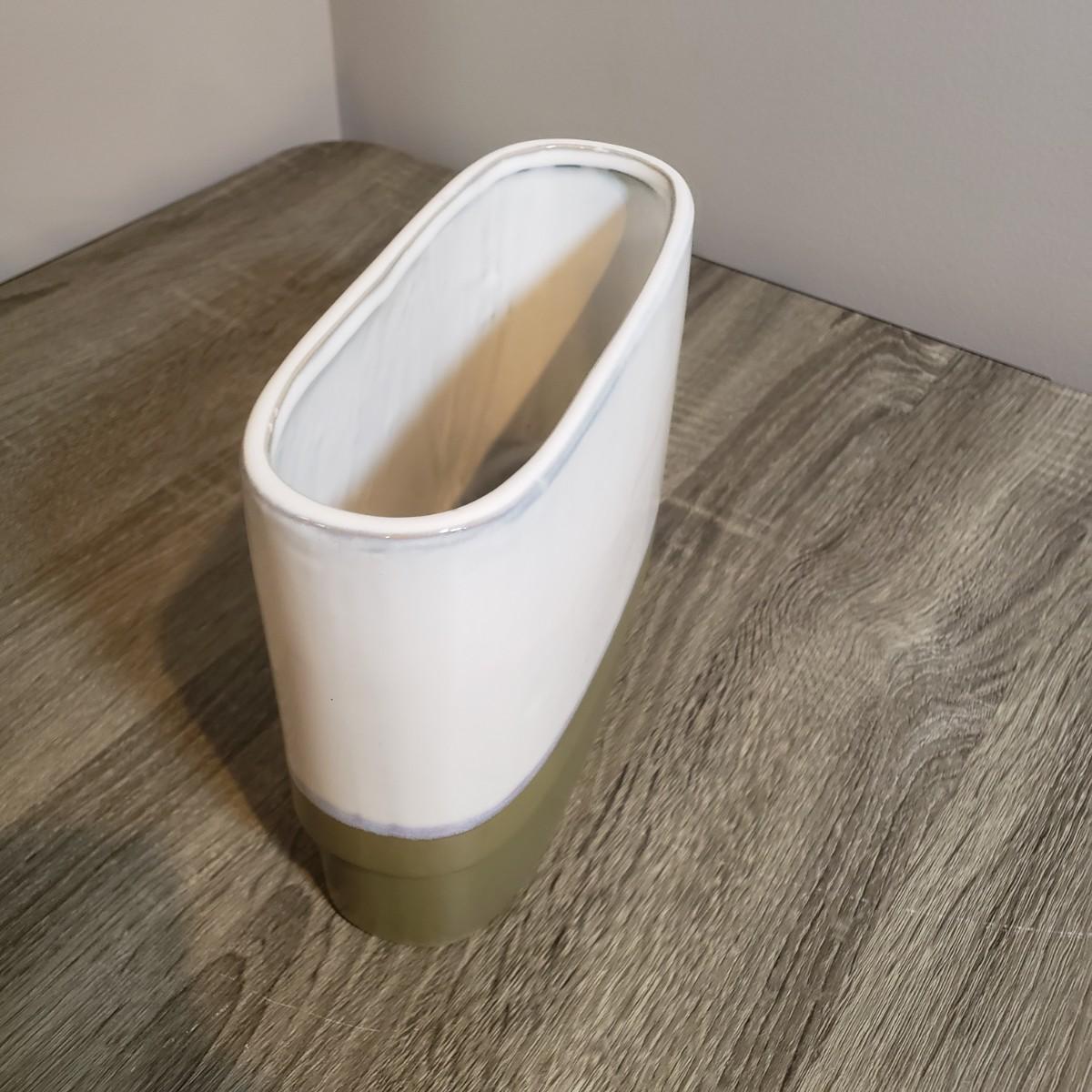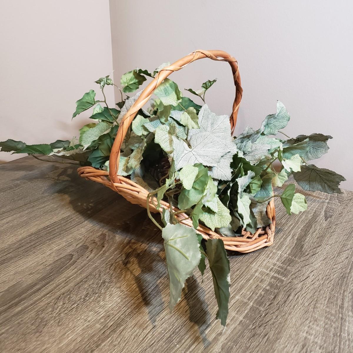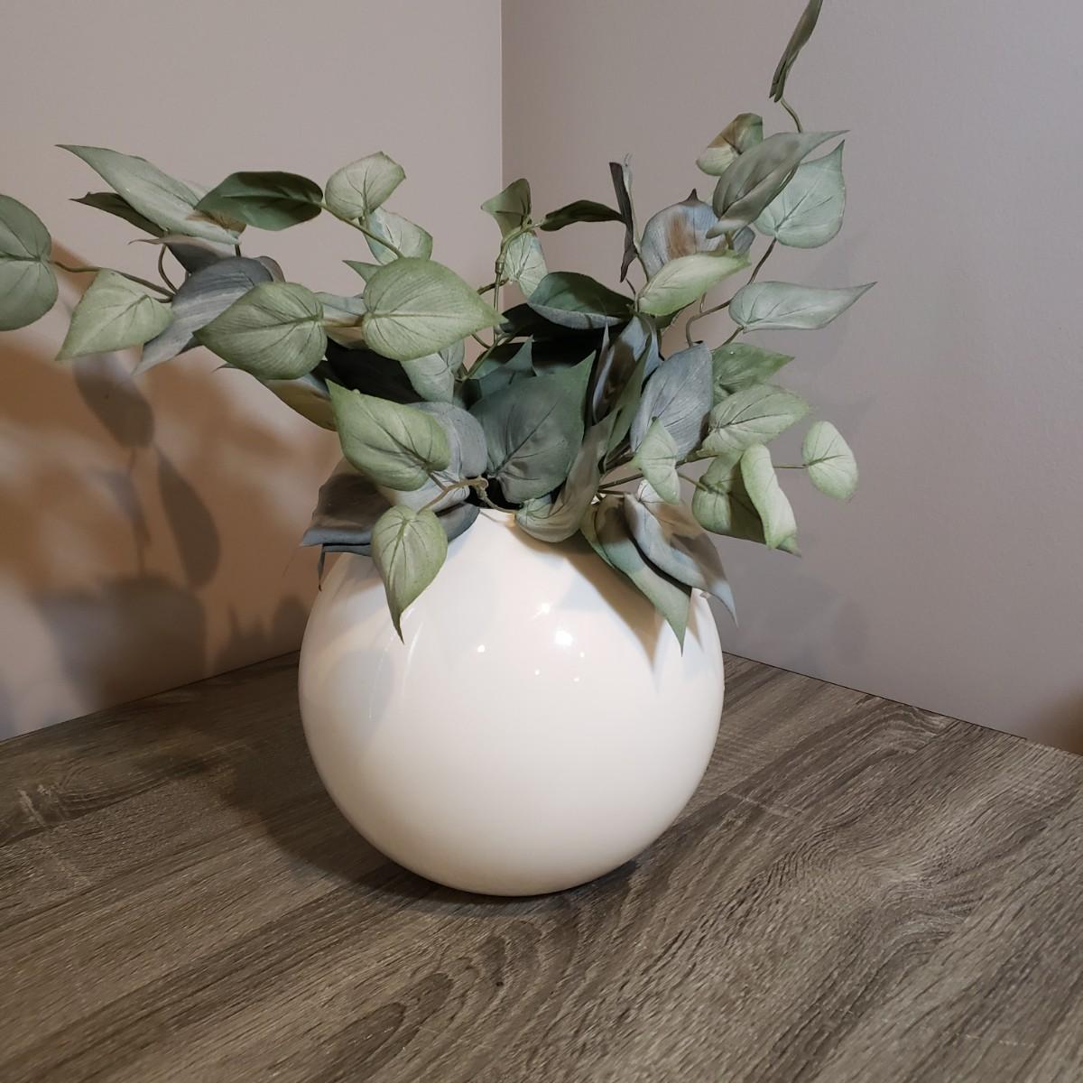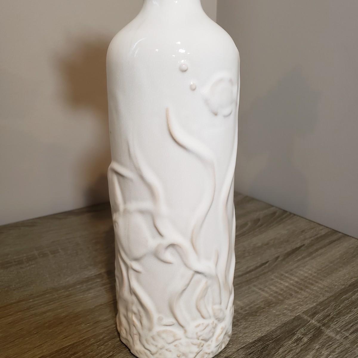 LOT 41F: Palm Leaf Print with Collection of White Vases & Basket