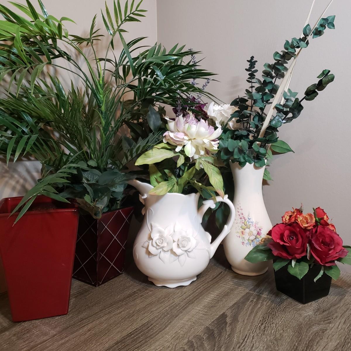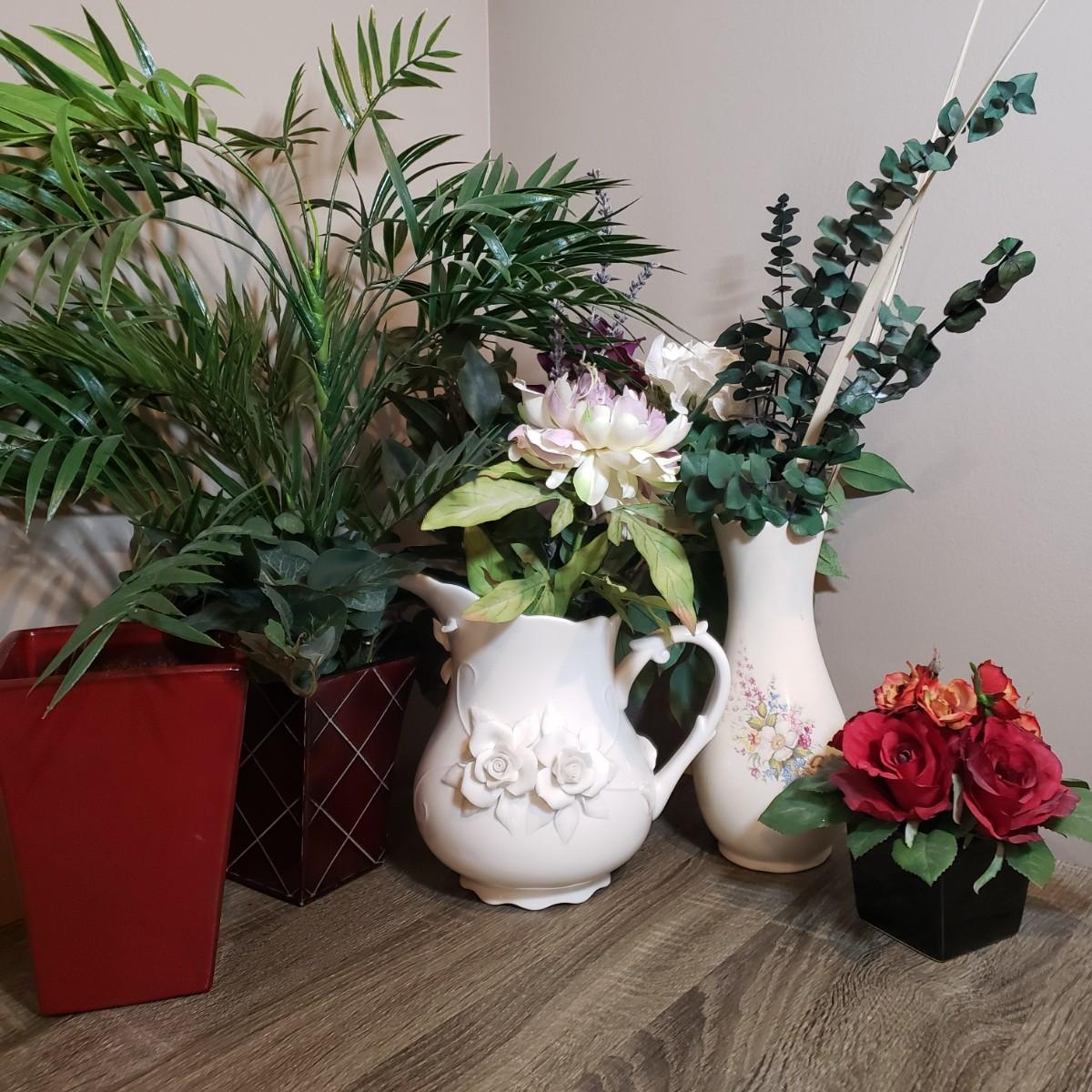 LOT 44F: Large Collection of Floral Decor in Various Vases & Planters