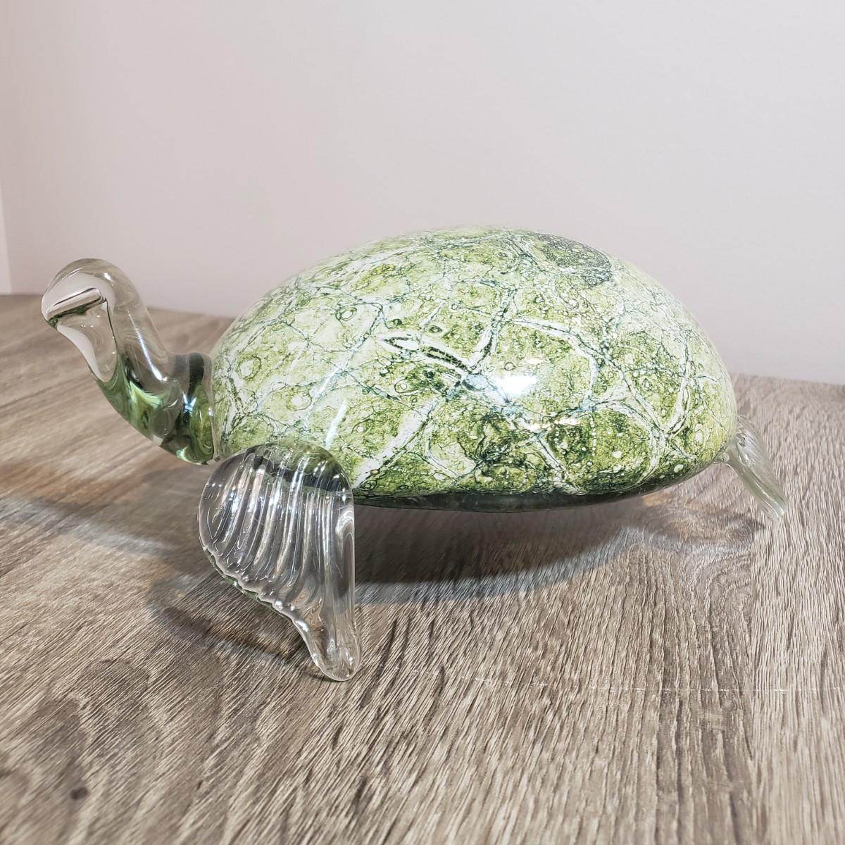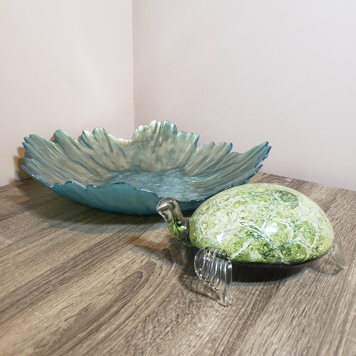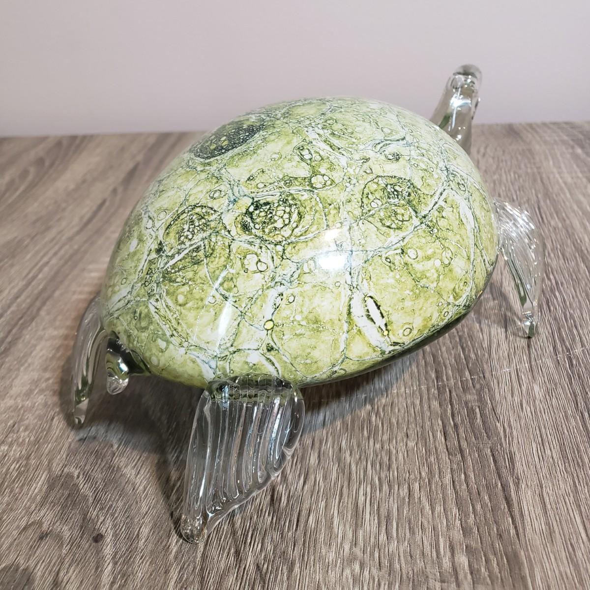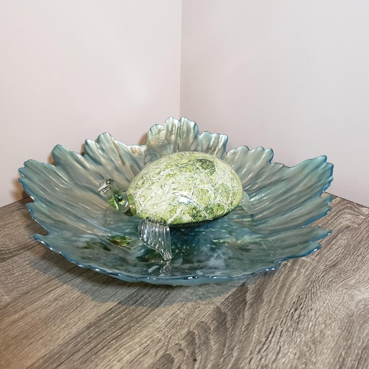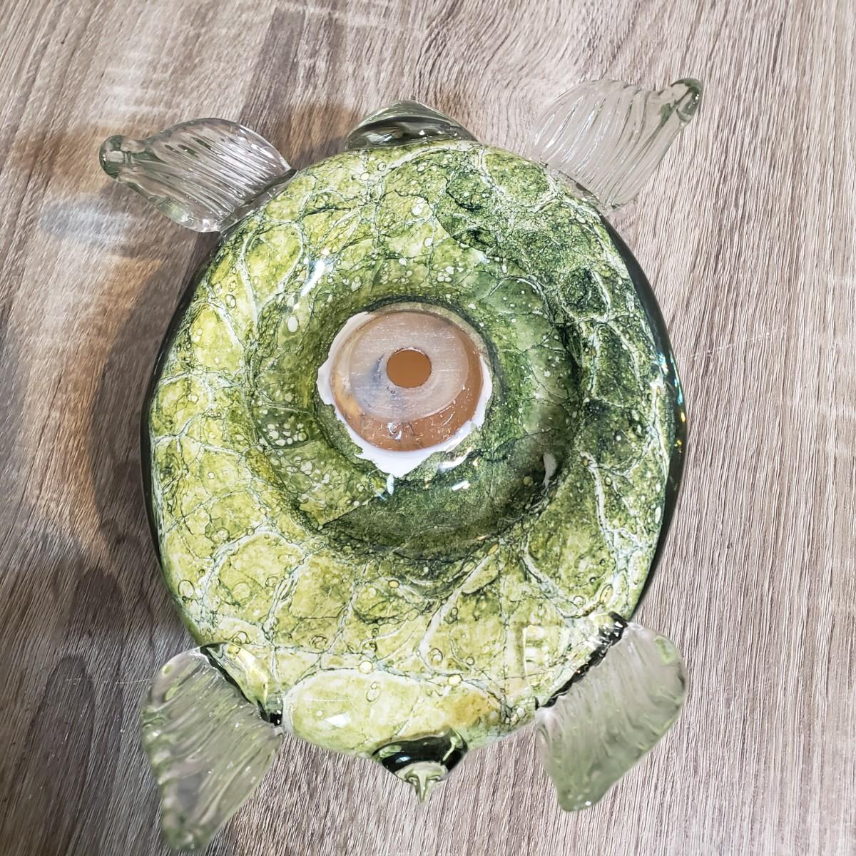 LOT 45Y: Large Textured Glass Bowl with Art Glass Turtle