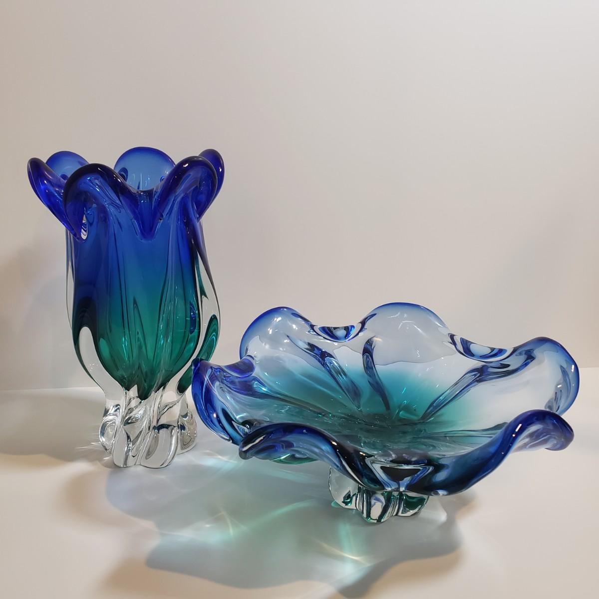 LOT 46Y: Murano Style Art Glass Vase & Bowl Matching Set