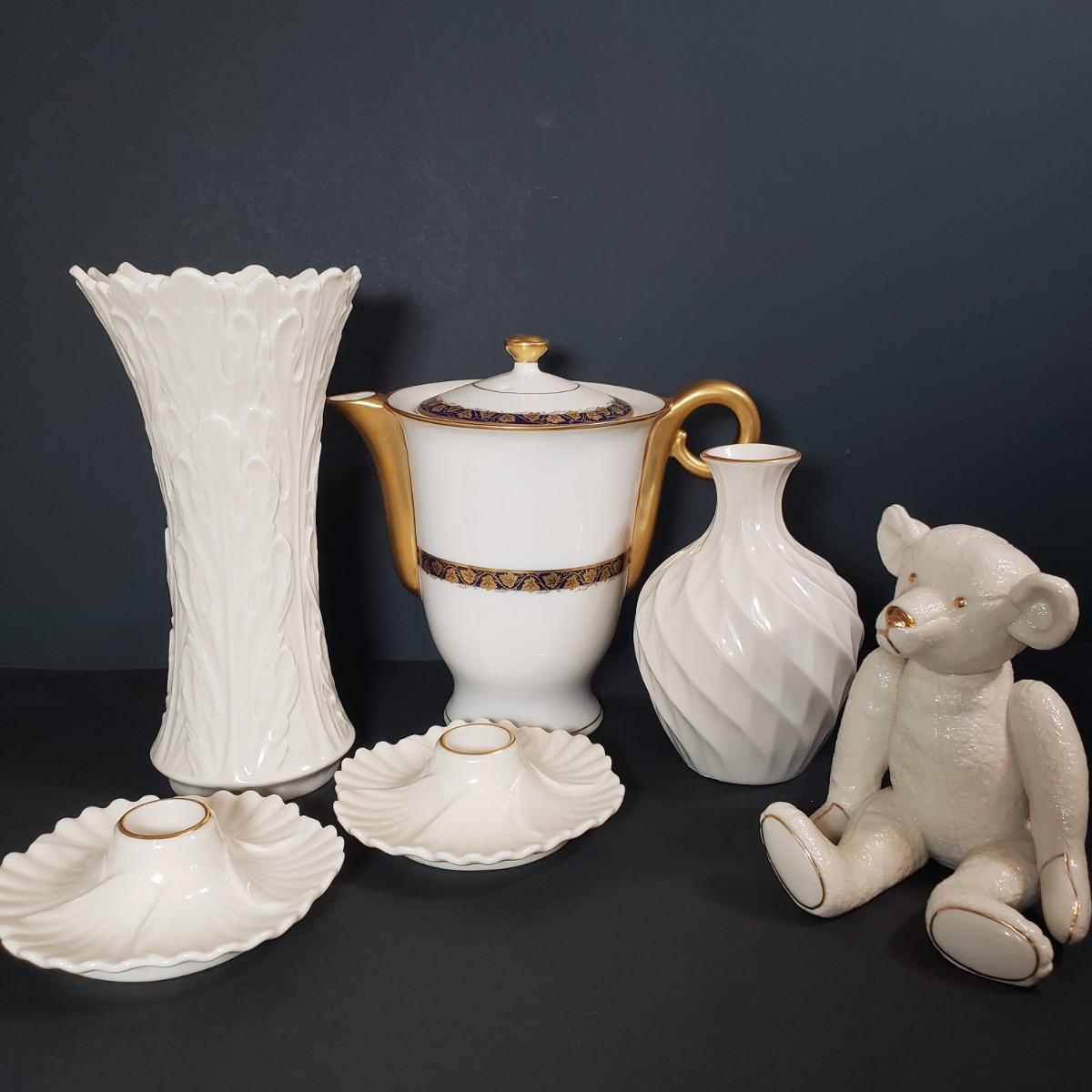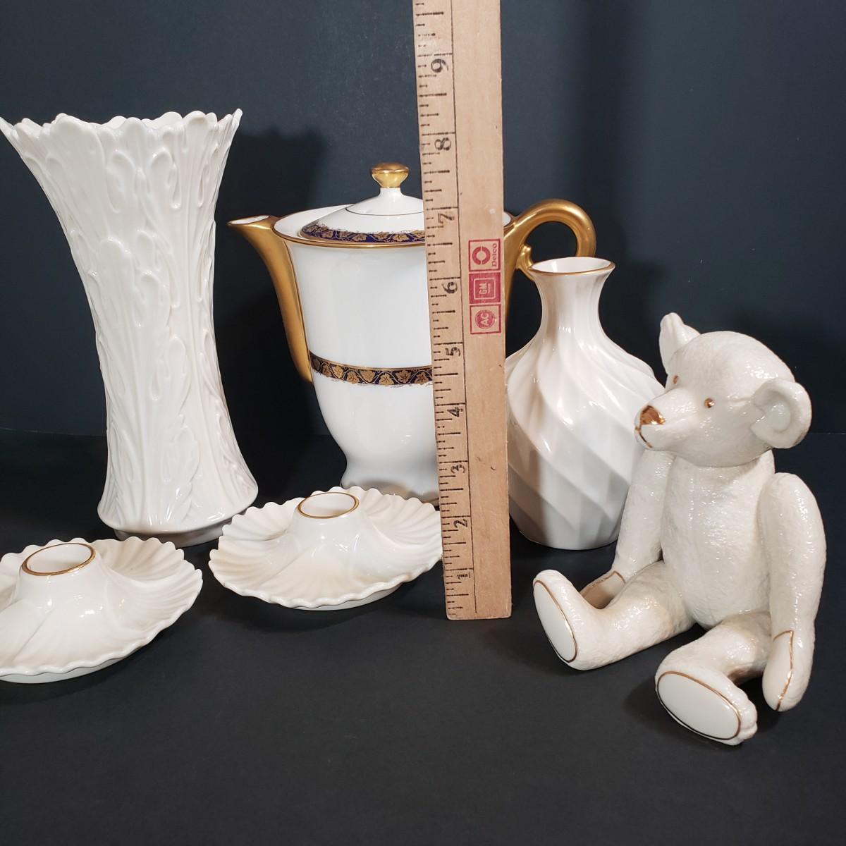 LOT 50Y: Lenox USA with Centennial Teddy Bear & Theodore Haviland Fleur de Lis Coffee Pot