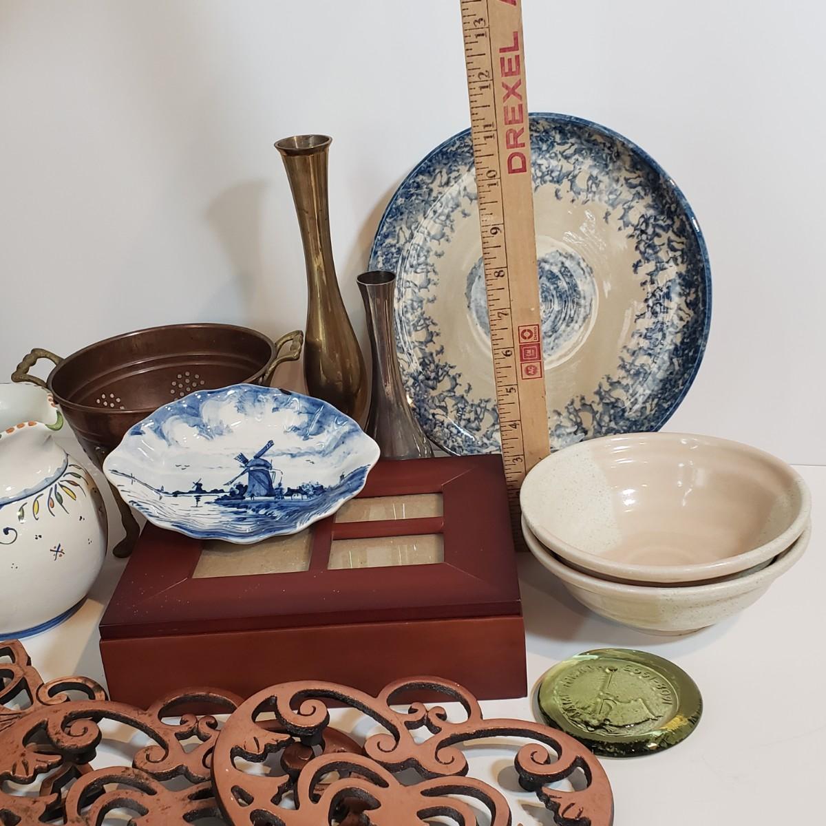 LOT 59K: Decorative Ceramics, Glass & Metals; Delft, Stoneware, Brass & More