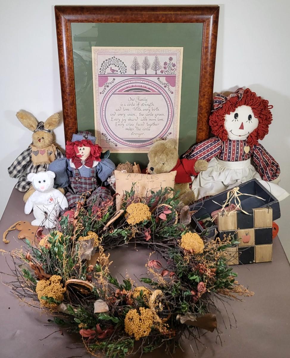 LOT 75U: Assortment of Decorations Including Bears, Dolls and More