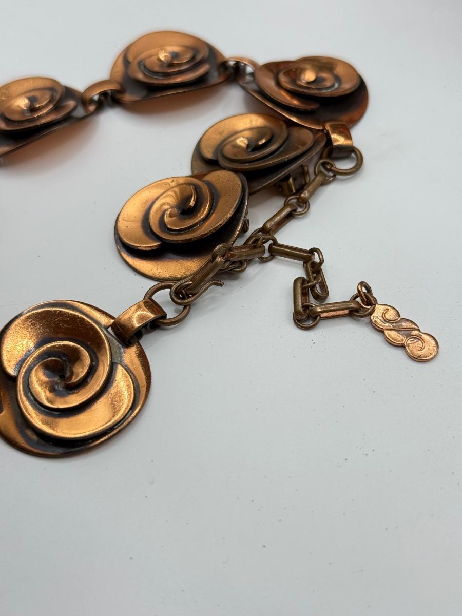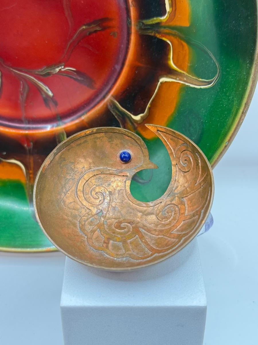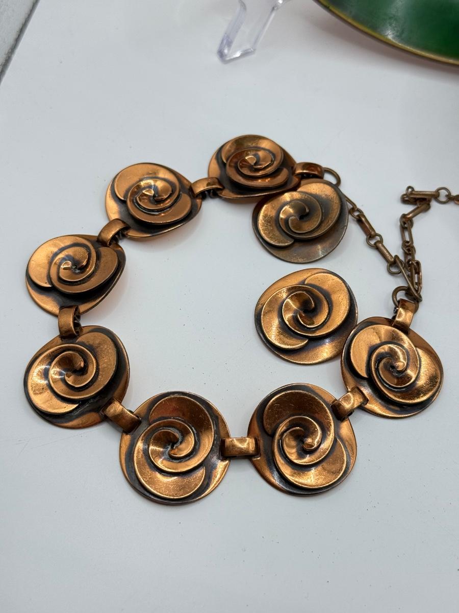 LOT 82Y: Copper Collection: Necklace w/ Earrings, Small Abstract Bird, Copper by Bell Pin & Bowl Hand Made in Greece