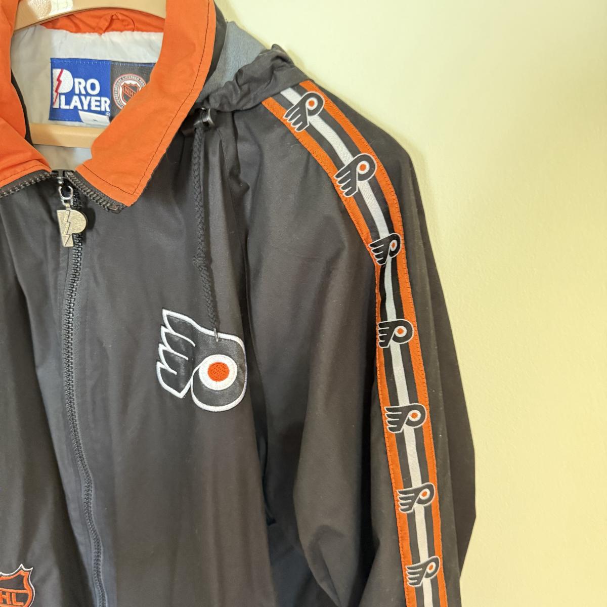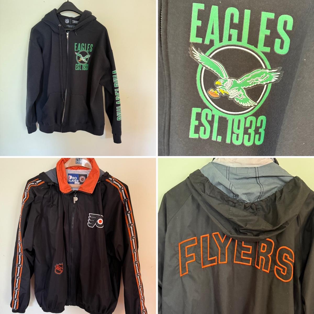 LOT 98C: Pro Player NHL Philadelphia Flyers XL Windbreaker & Eagles L Zip Up Hoodie