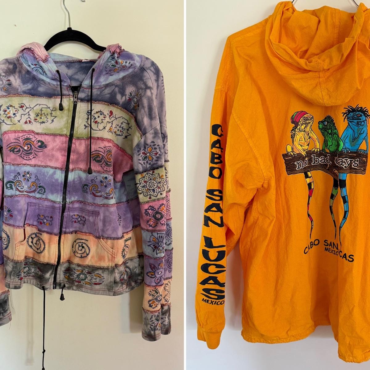 LOT 99C: Cabo San Lucas Mexico Iguana Windbreaker & Boho Colorful Hoodie
