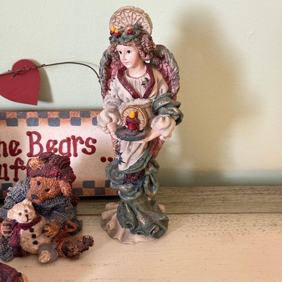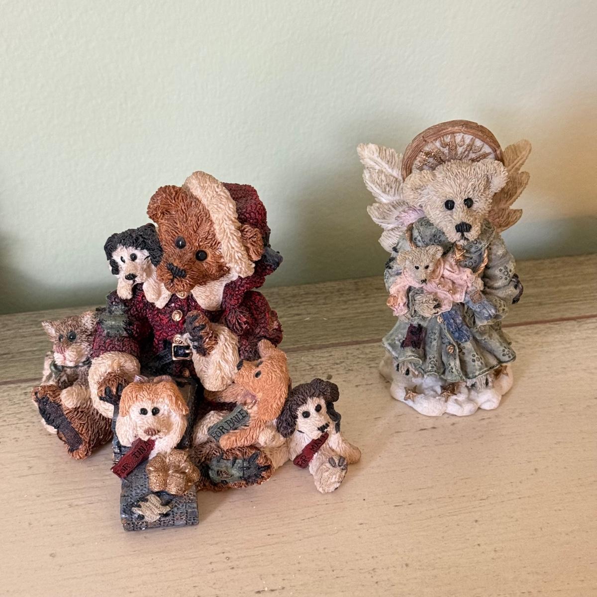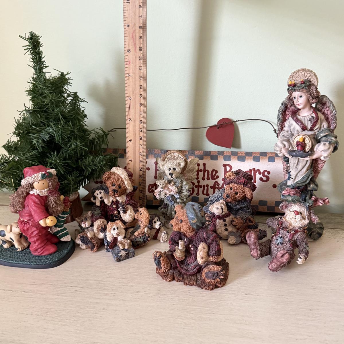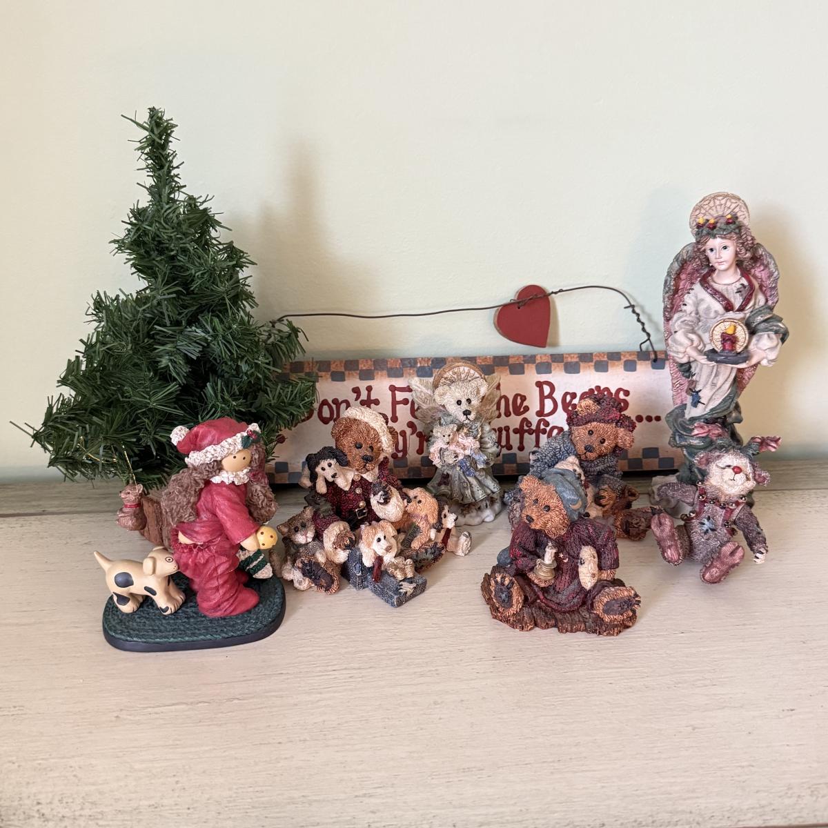 LOT 100D: Boyd's Bears Christmas Collection w/ Mini Tree & Stuffed Bears Wood Sign