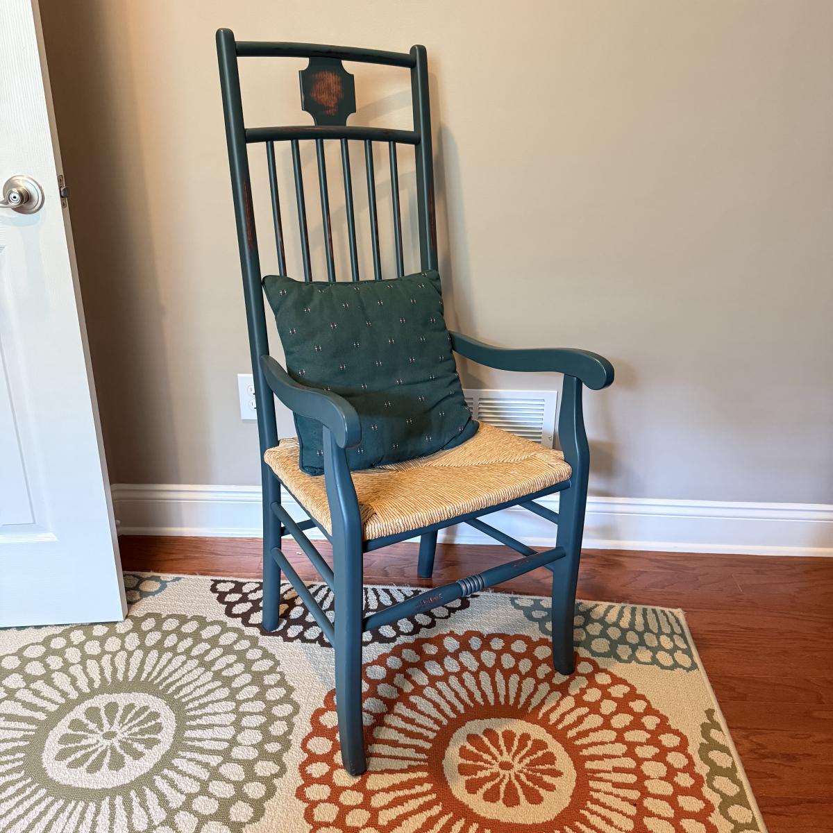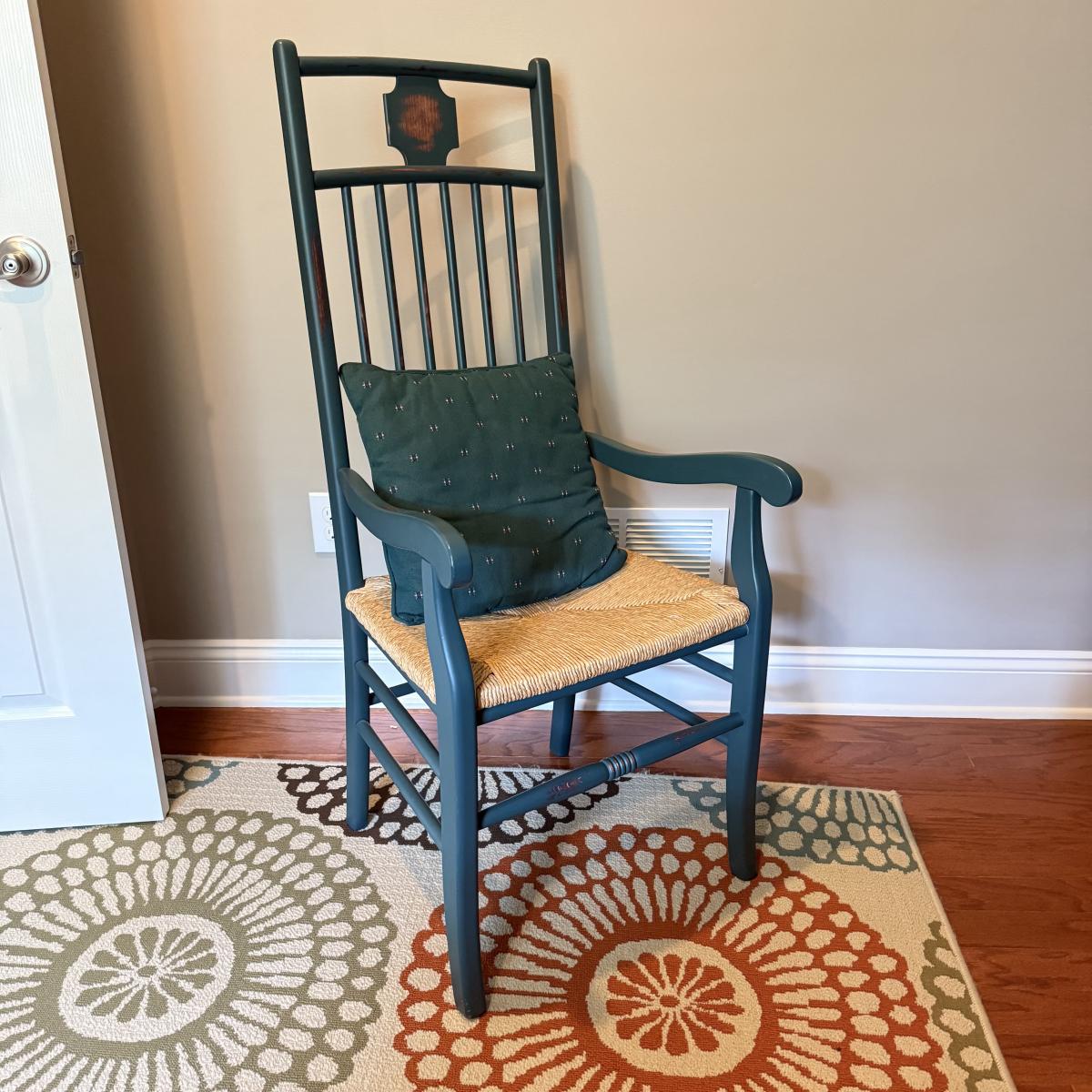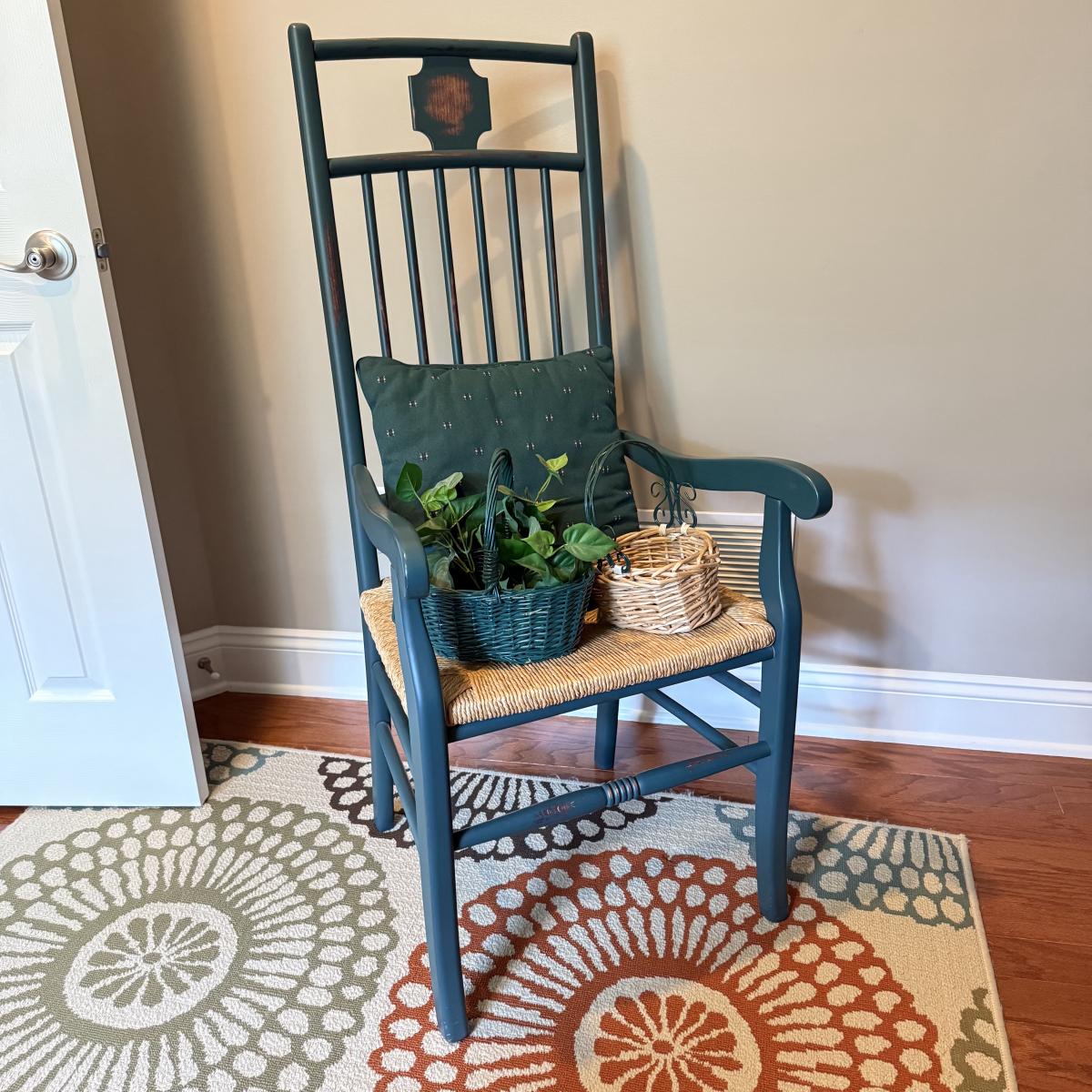 LOT 107S: Green Wooden Ladder Back Chair w Rush Seating