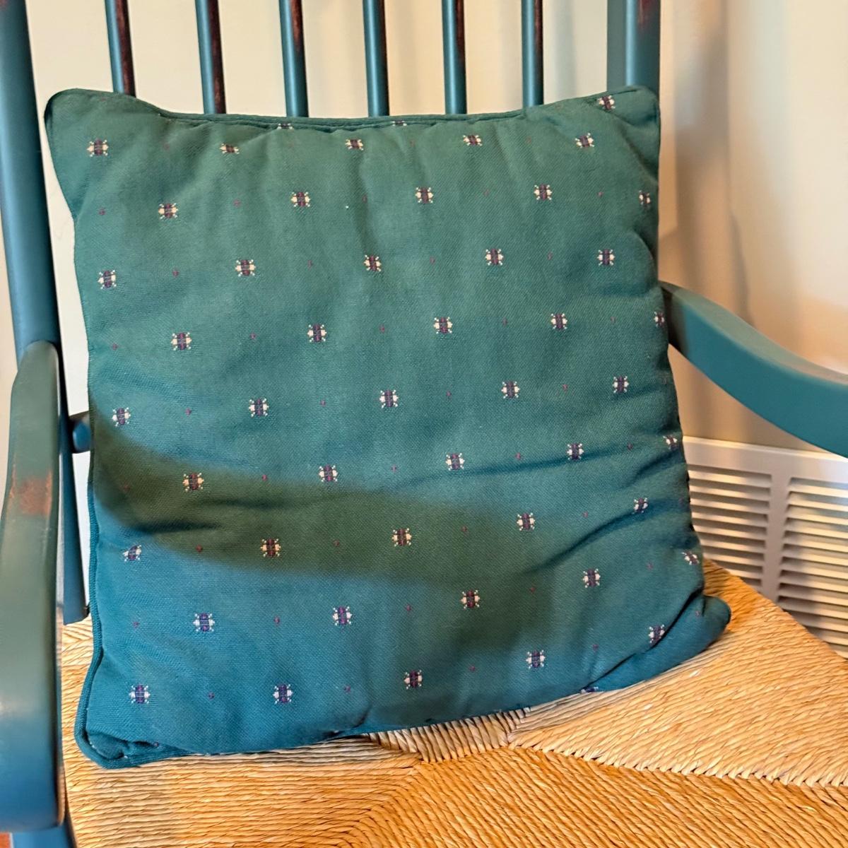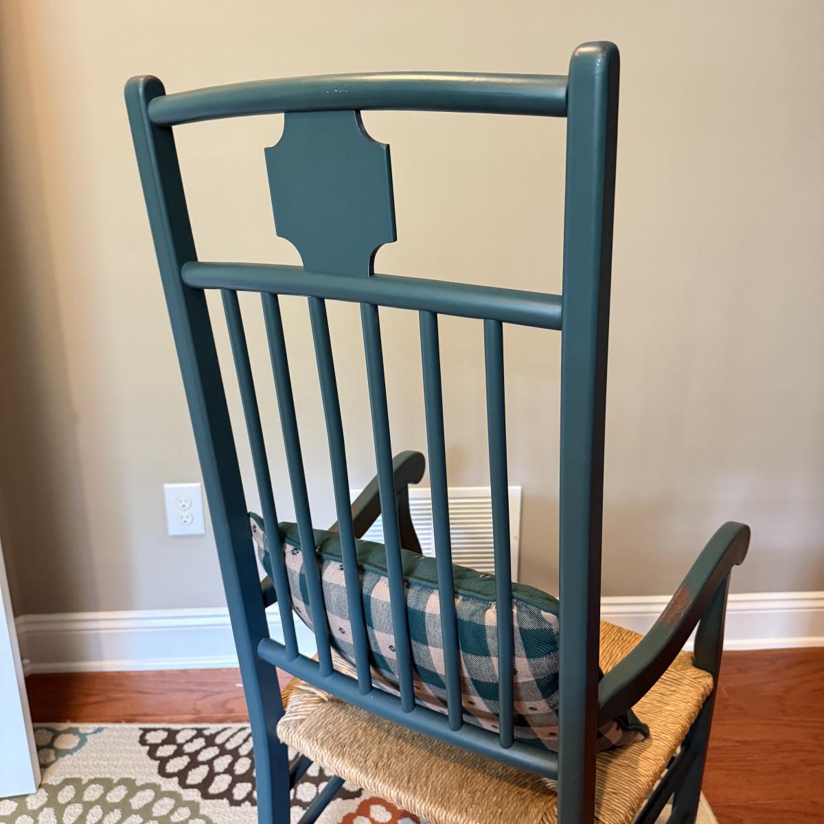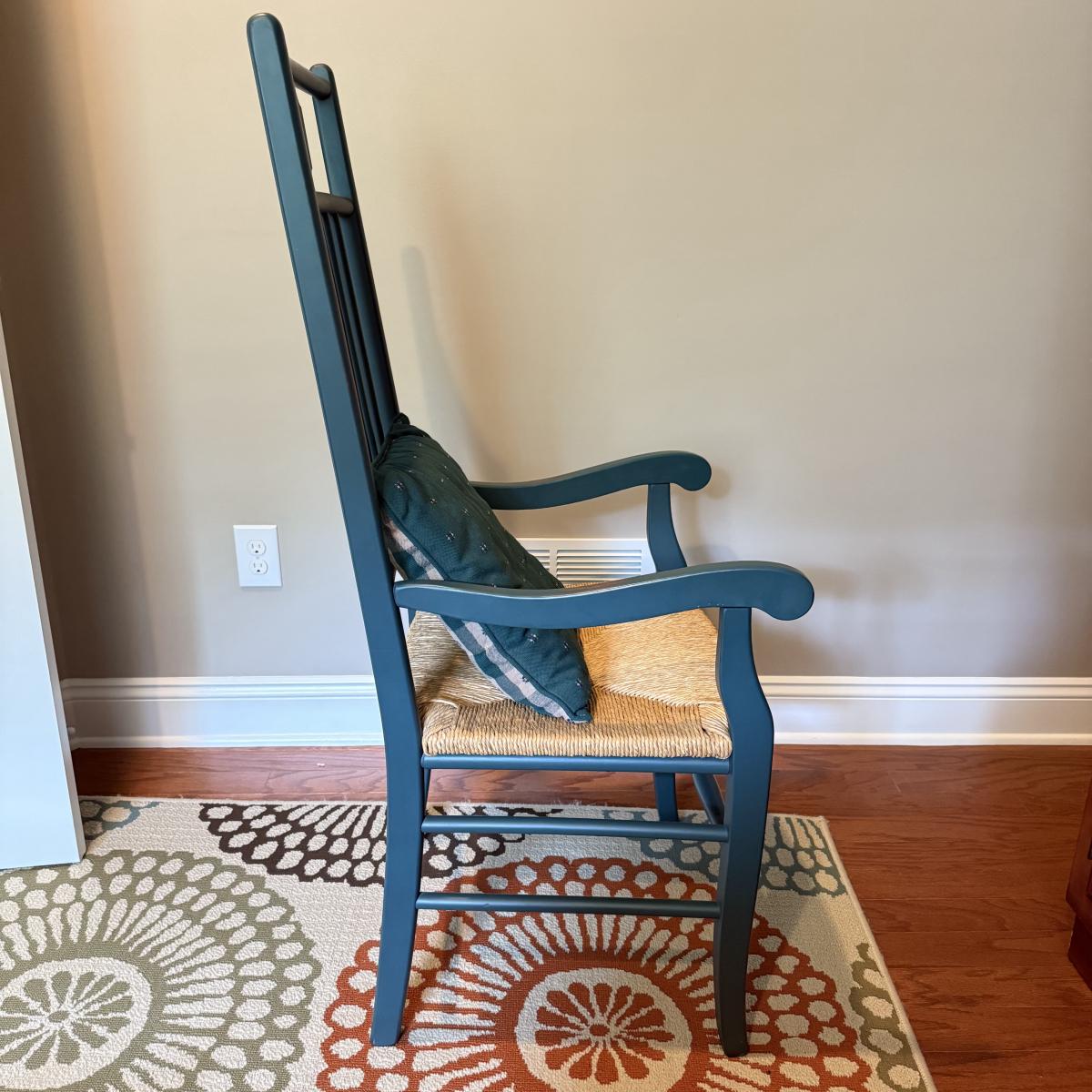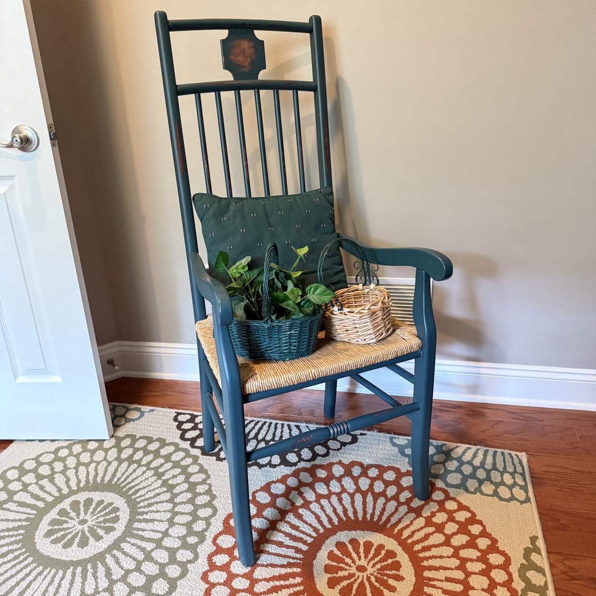 LOT 107S: Green Wooden Ladder Back Chair w Rush Seating