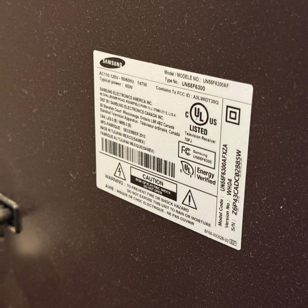 LOT 113F: Samsung 55” Television Model UN55F6300AF