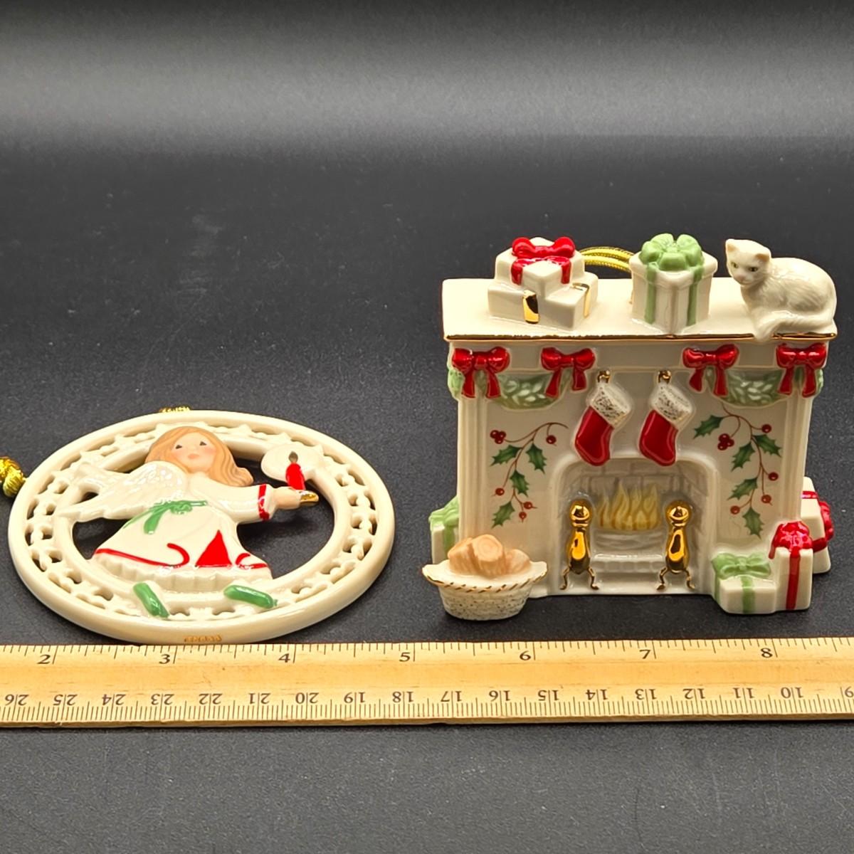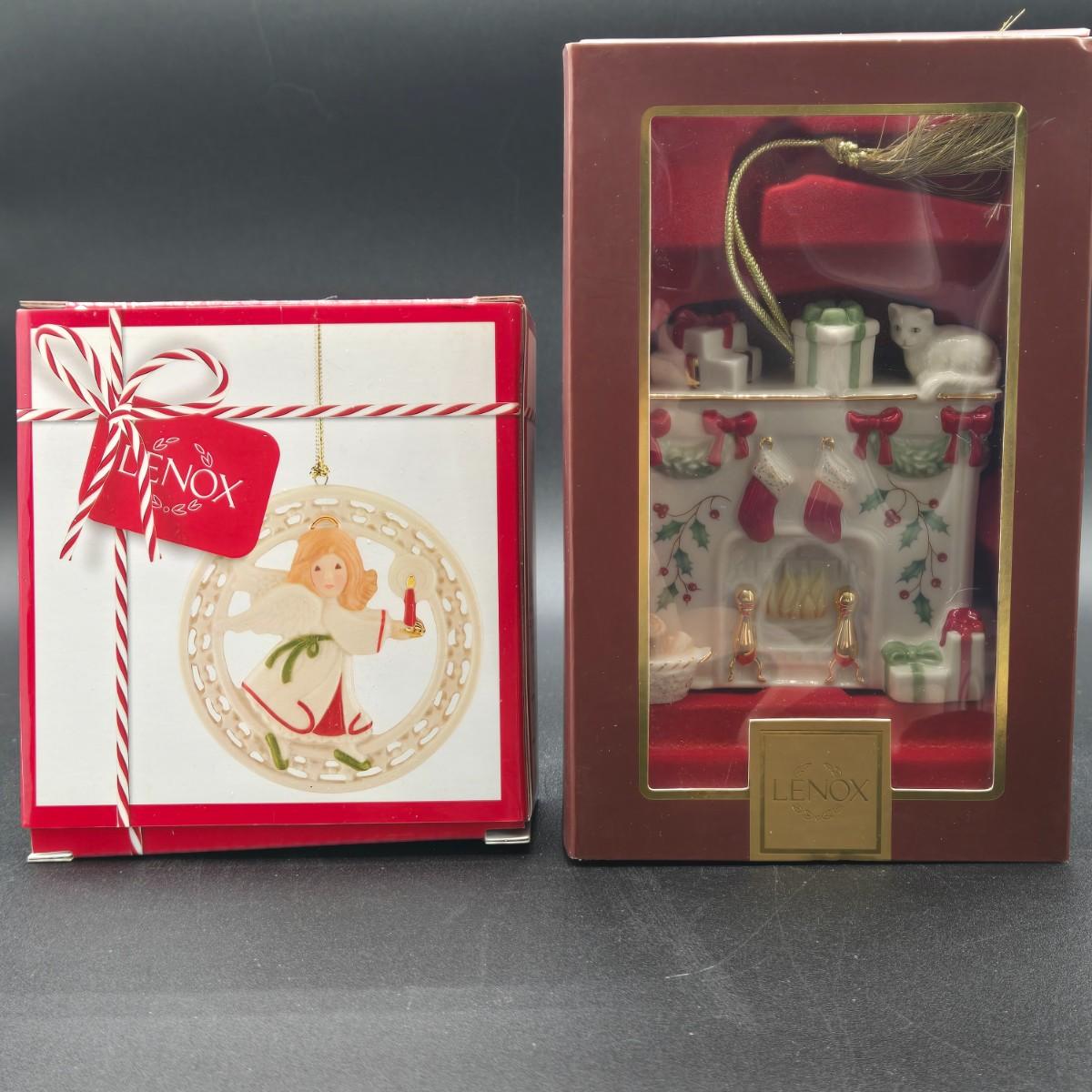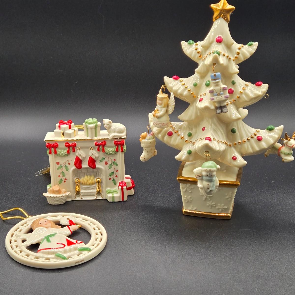 LOT 11B: Lenox Christmas Tree with Miniature Ornaments, Fireplace Tree Ornament, and Angel Ornament