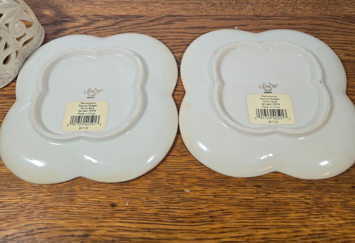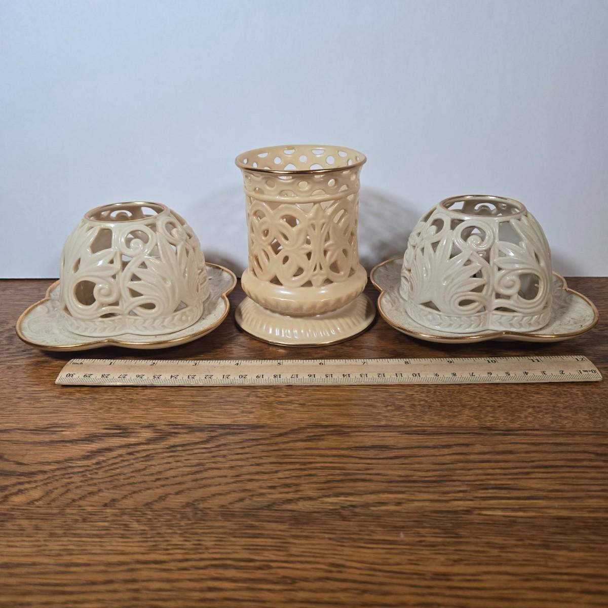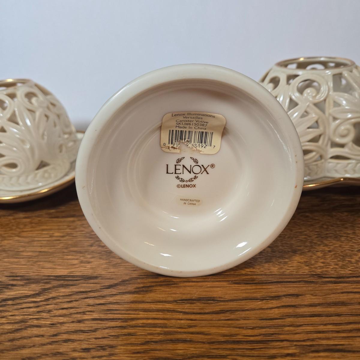 LOT 20L: Lenox Versailles Votive Candle Holder and 2 Pierced Tea Light Holders
