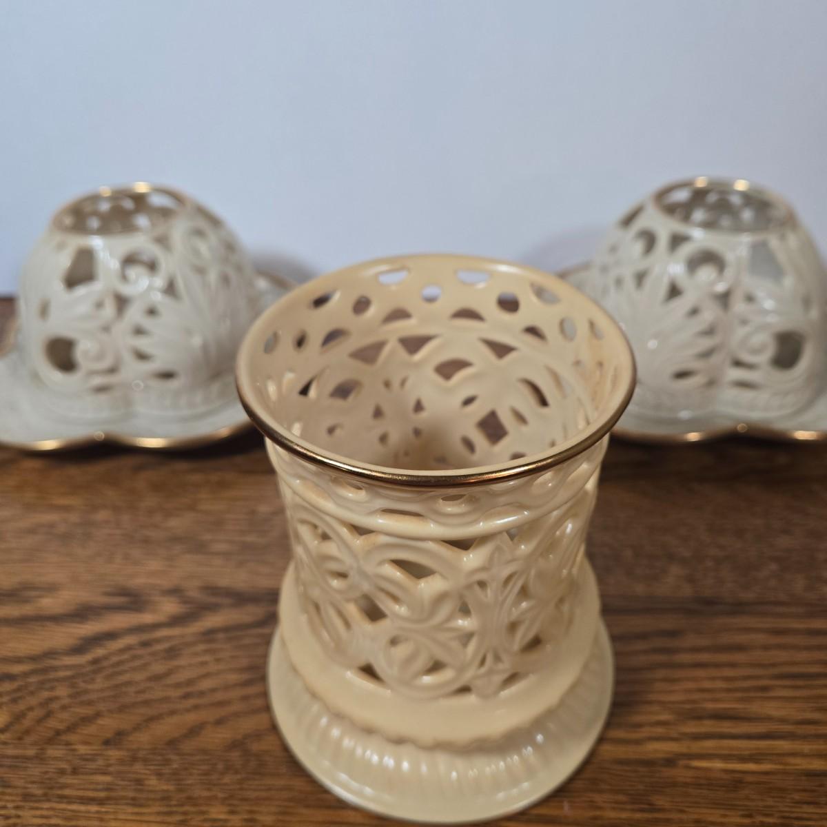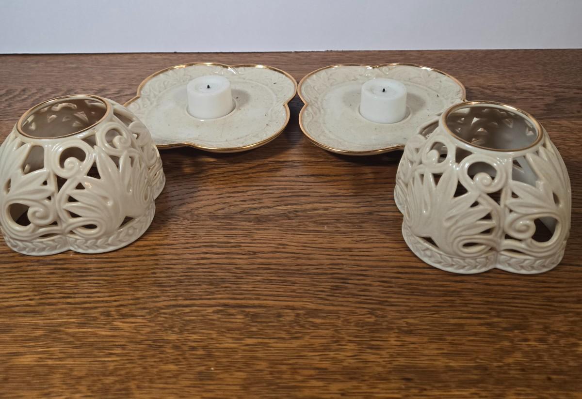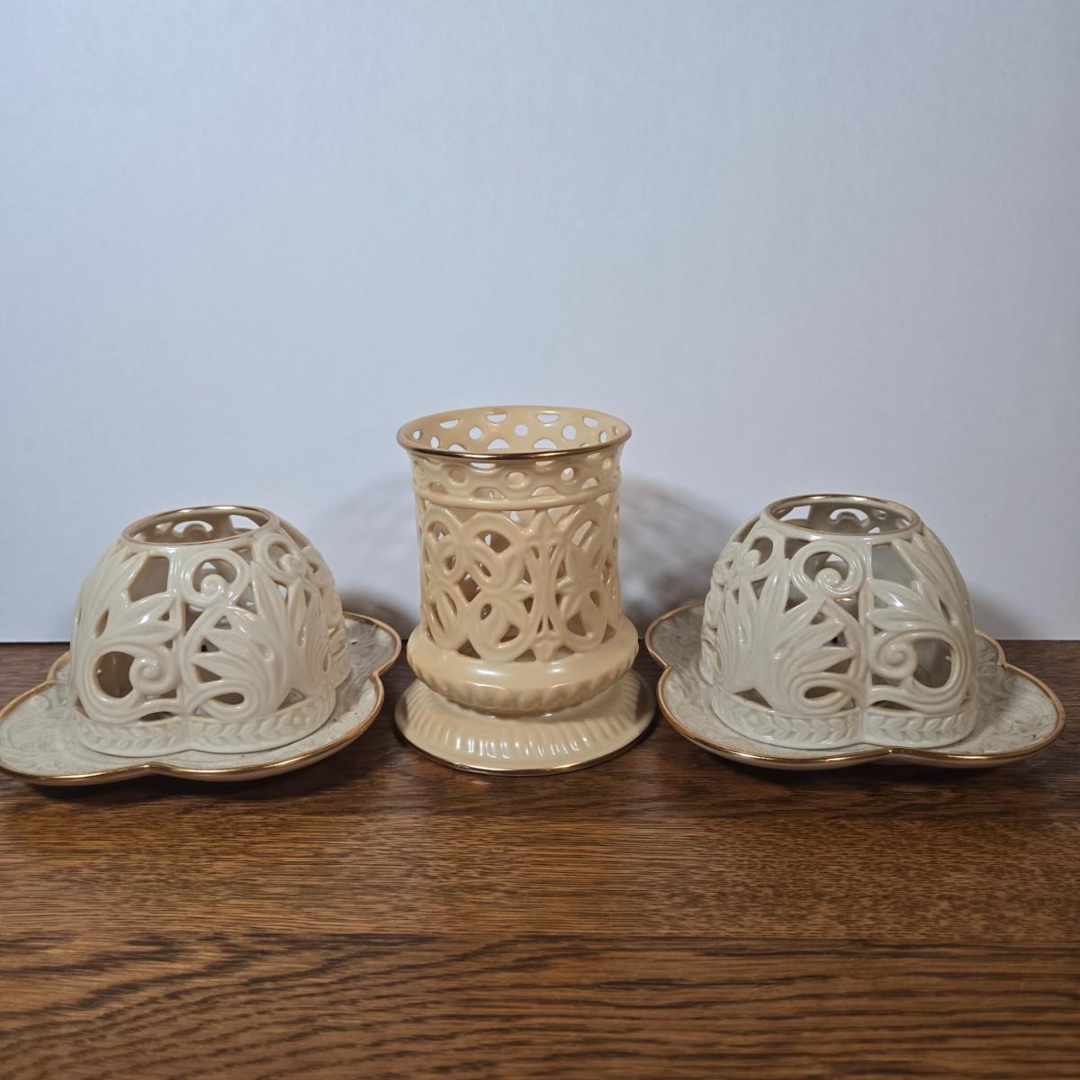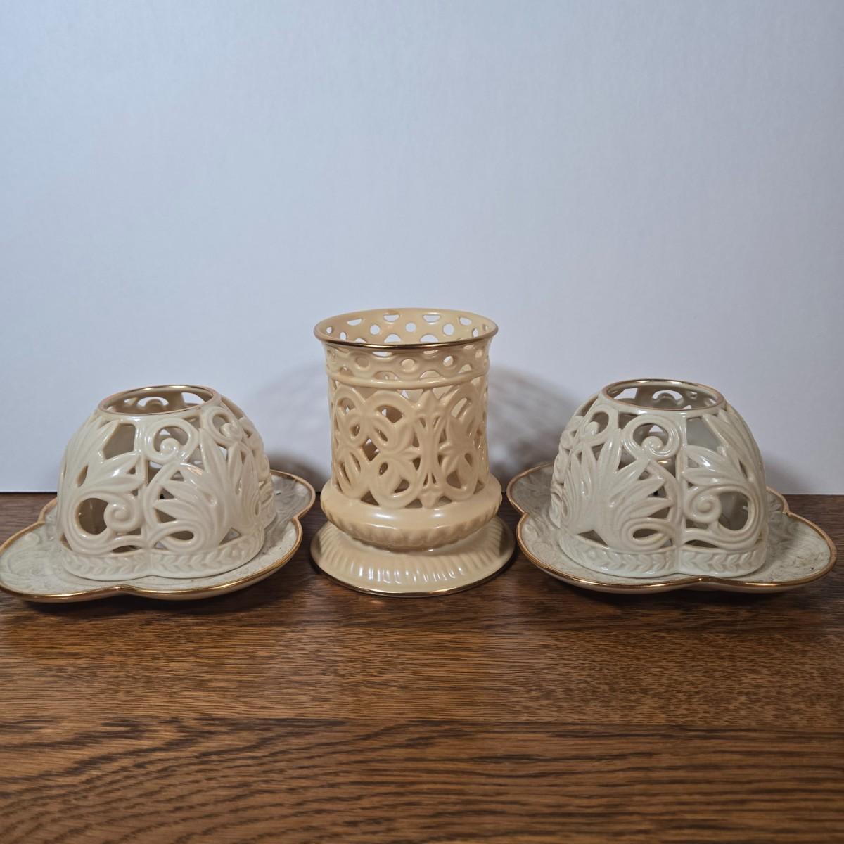 LOT 20L: Lenox Versailles Votive Candle Holder and 2 Pierced Tea Light Holders