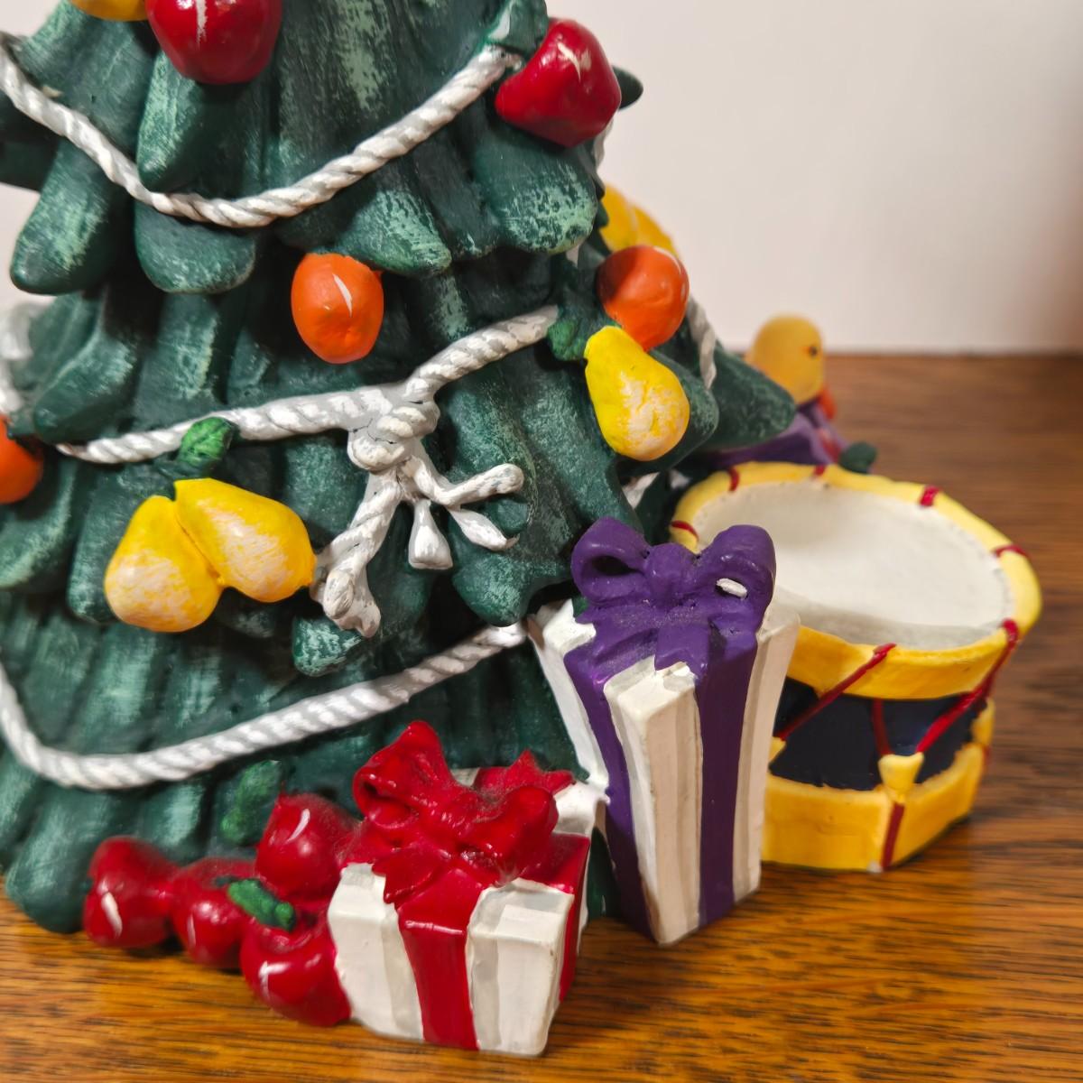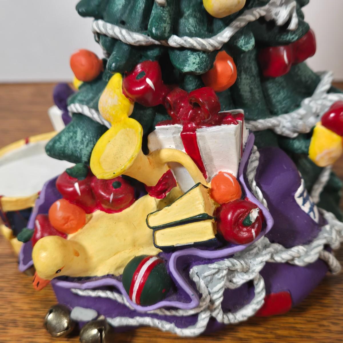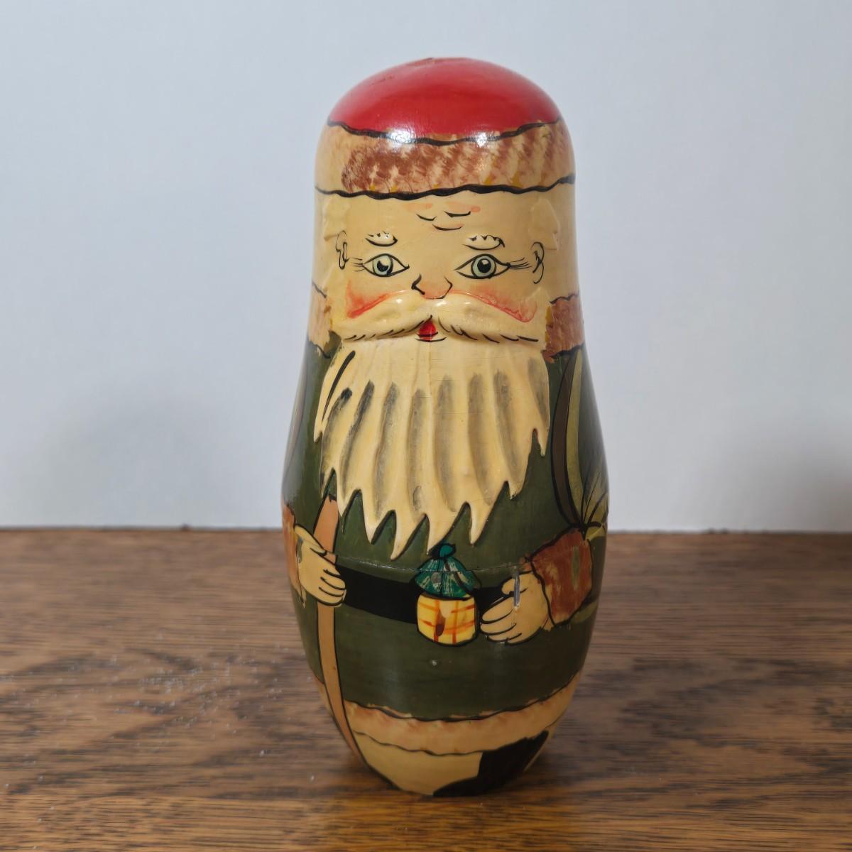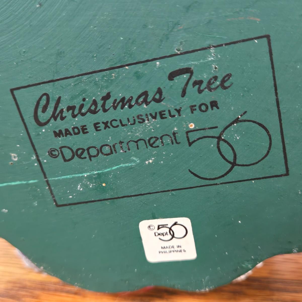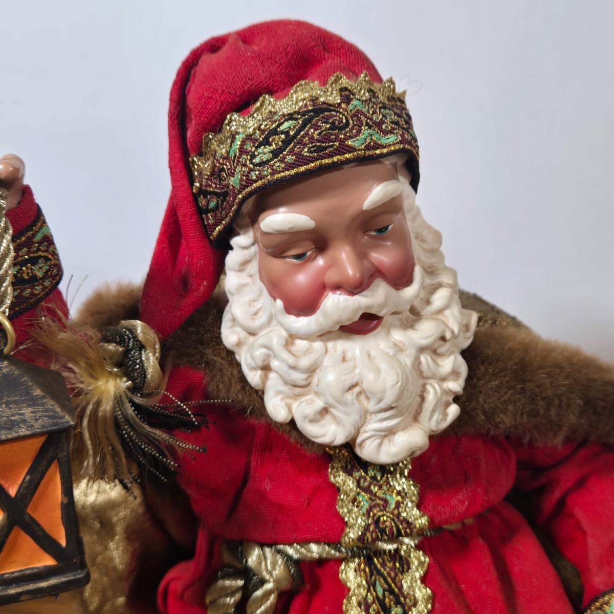 LOT 34L: Metal Christmas Plate, Santa with Baby Jesus, Dept. 56 Christmas Tree & Jolly Old Elf, Santa Workshop Figurine, Mr. & Mrs. Clause Salt & Pepper Shakers, and Vintage Santa Nesting Dolls