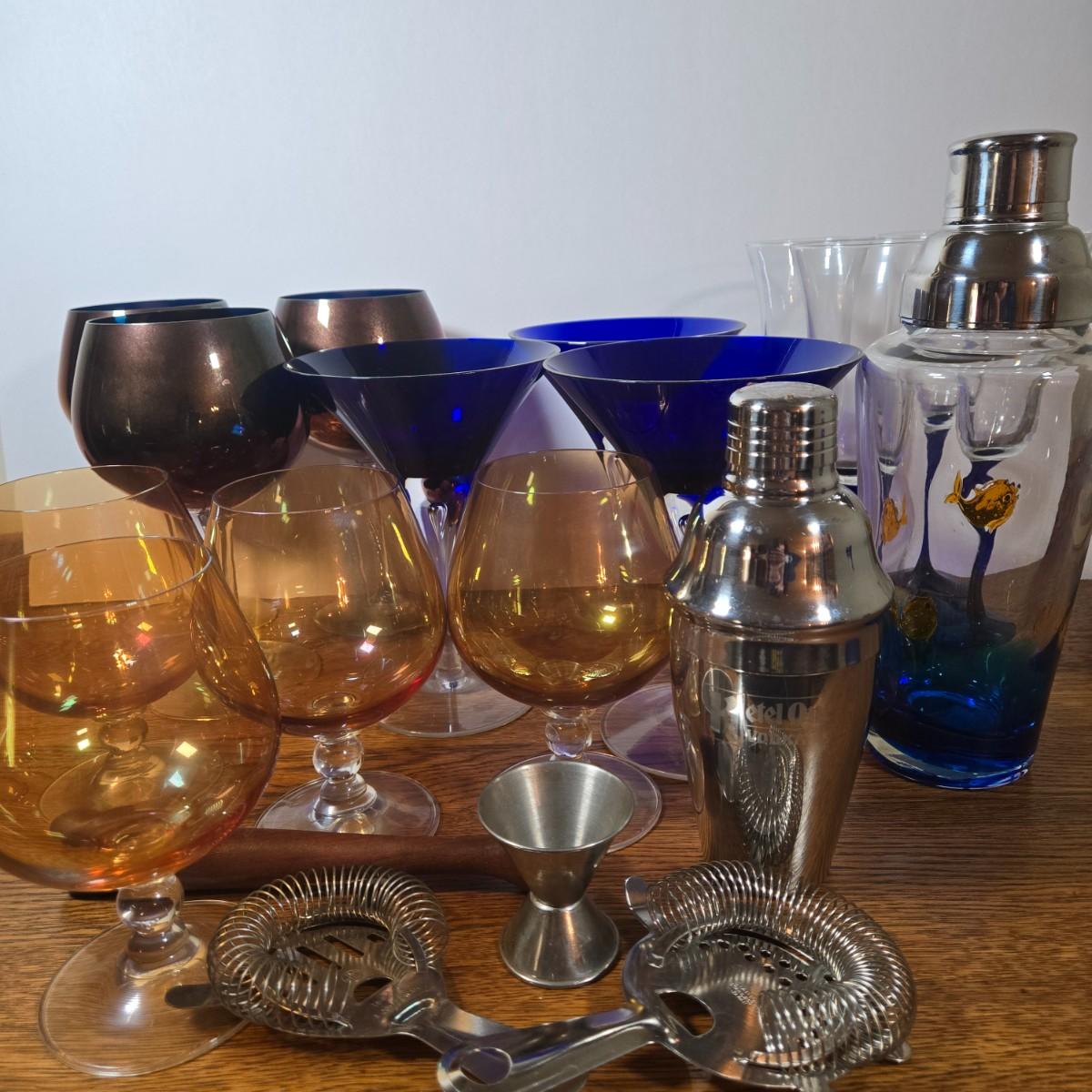 LOT 45L: Bar Ware Including Martini Glasses, Brandy Sniffers, Shakers, Champagne Flutes, and More