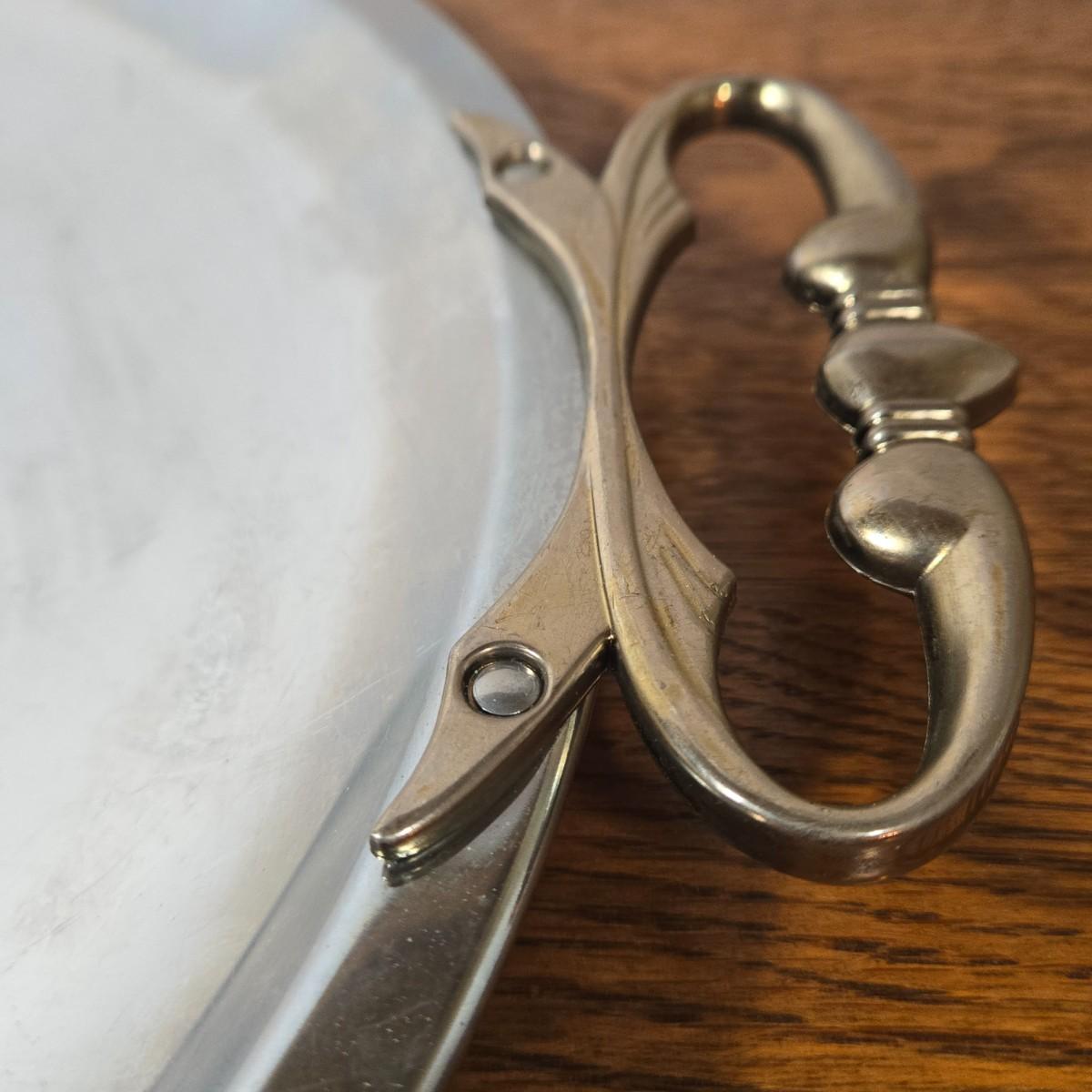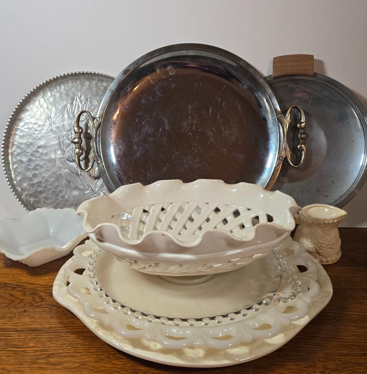 LOT 47D: Multiple Serving Dishes and Bowls Including Hand Wrought Aluminum by Rodney Kent, MCM Wood Handled Plate, Vintage Kromex Tray, and More