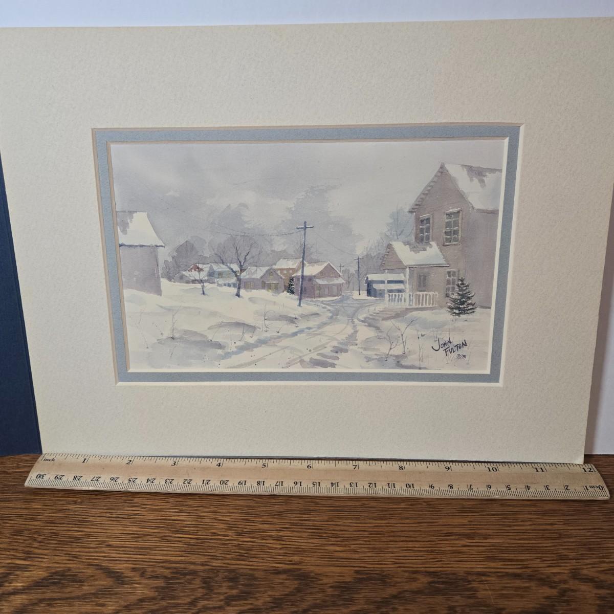 LOT 48D: Matted Print Winter Scene Signed by Artist John Fulton