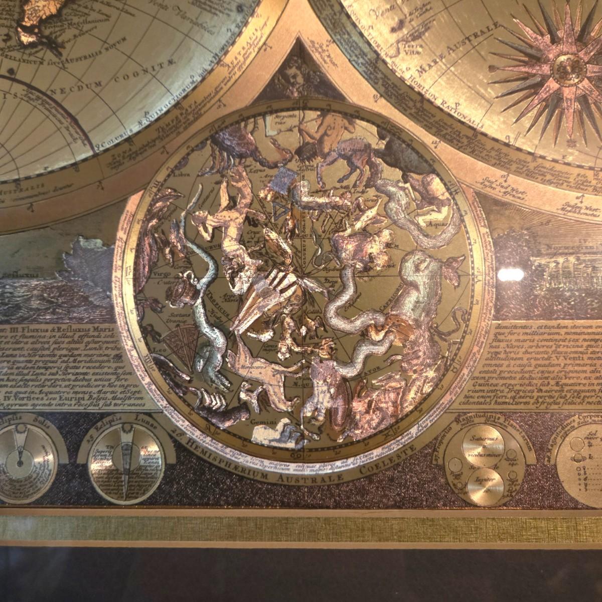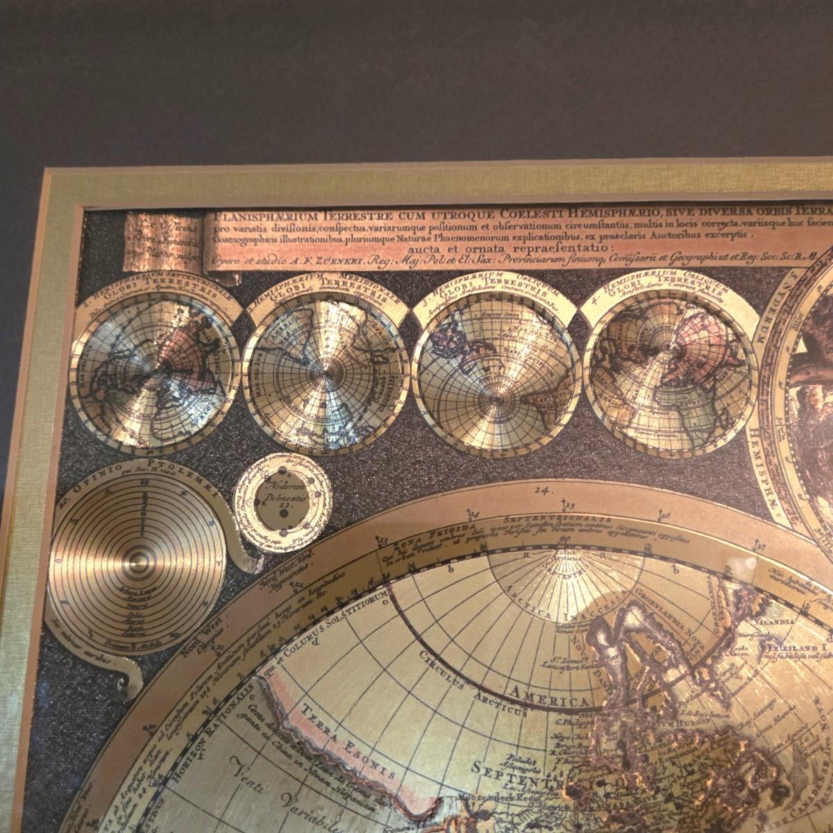 LOT 50L: Framed Gold-Tone Foil World Map