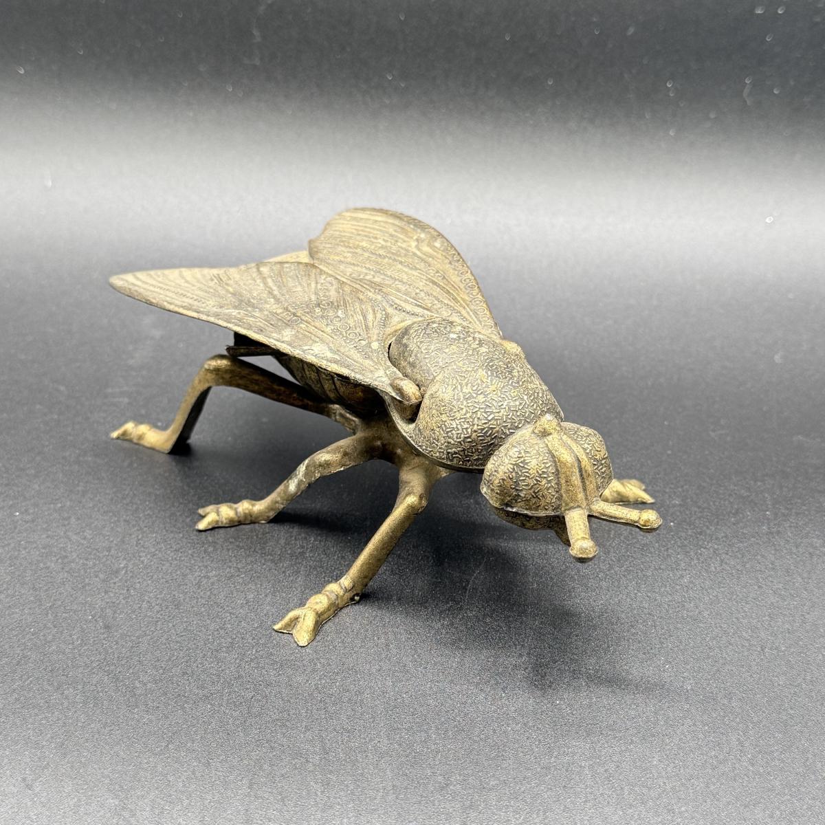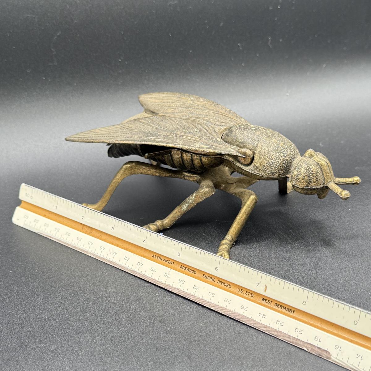 LOT 61H: Vintage Brass Fly Ashtray with Hinged Lid - Made in Italy