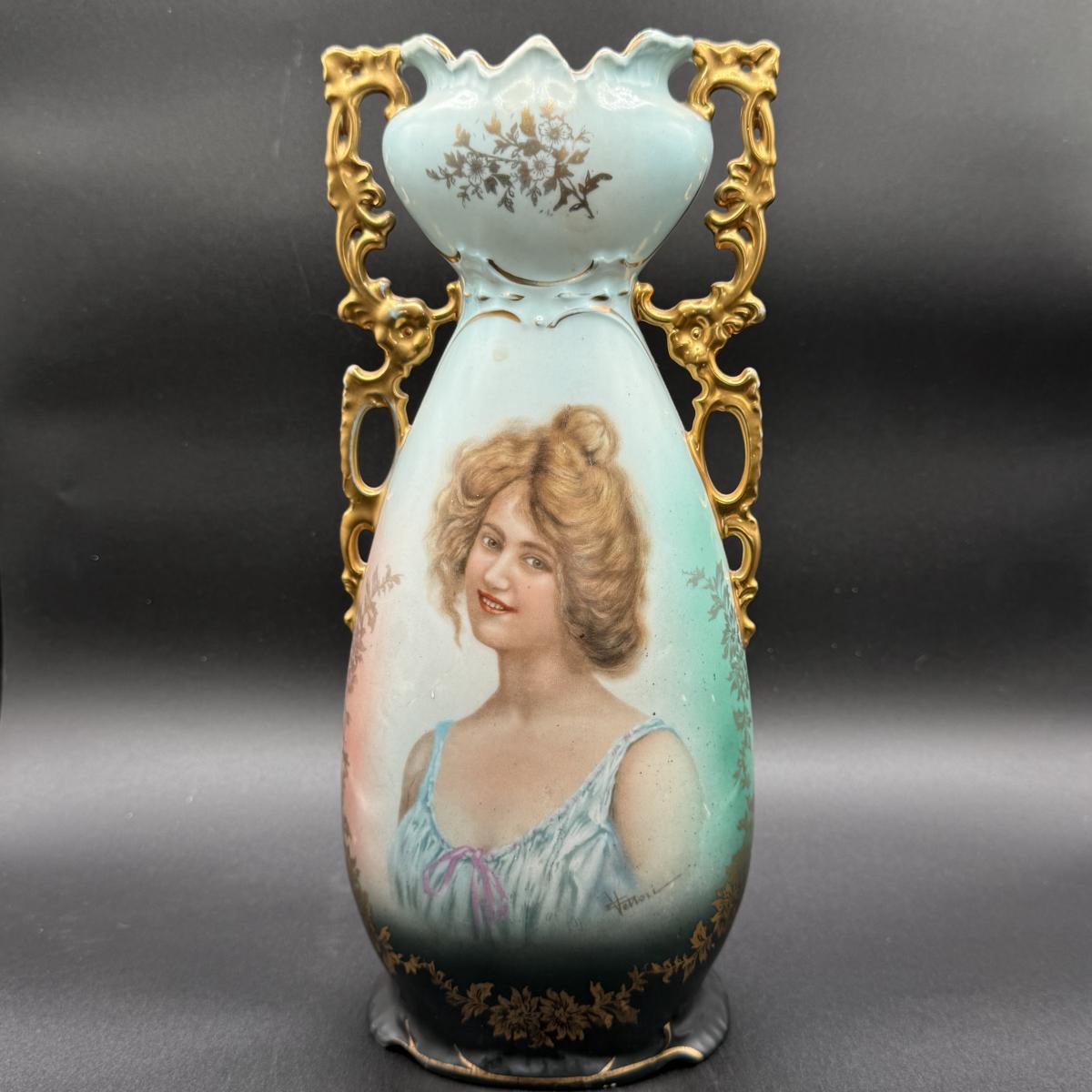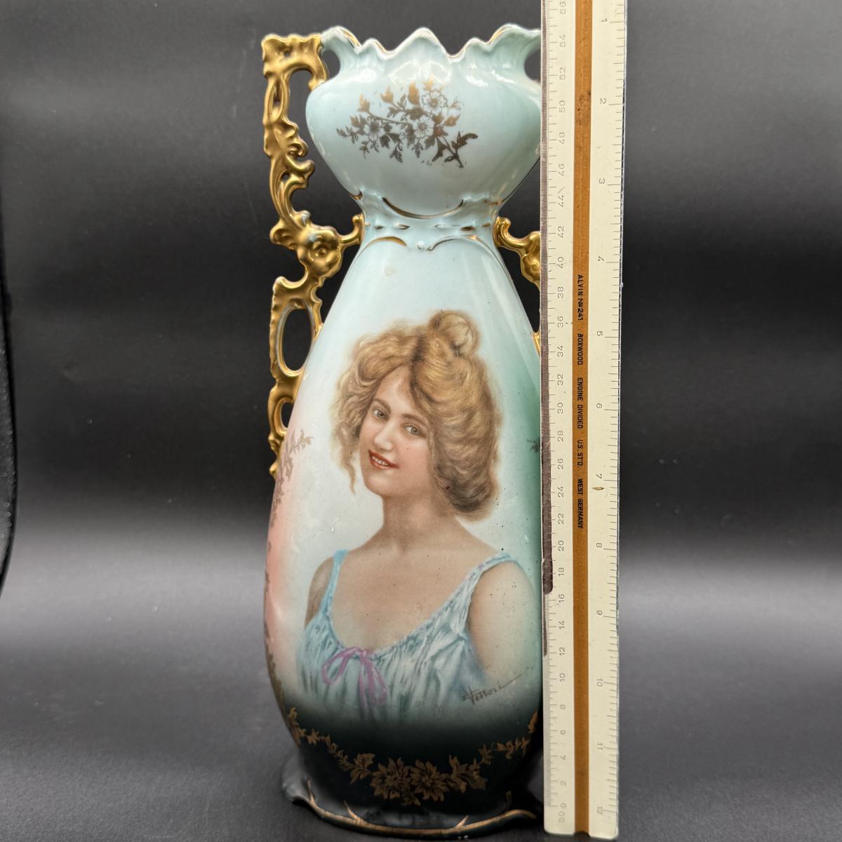 LOT 65H: Antique Austrian Hand Painted Two-Handled Portrait Vase