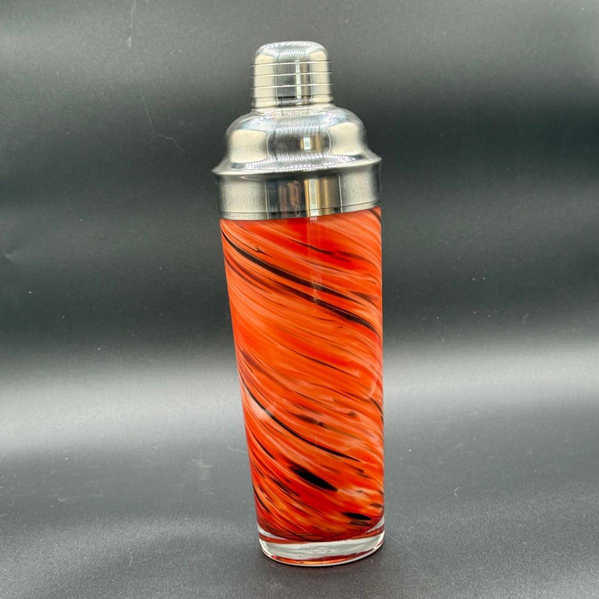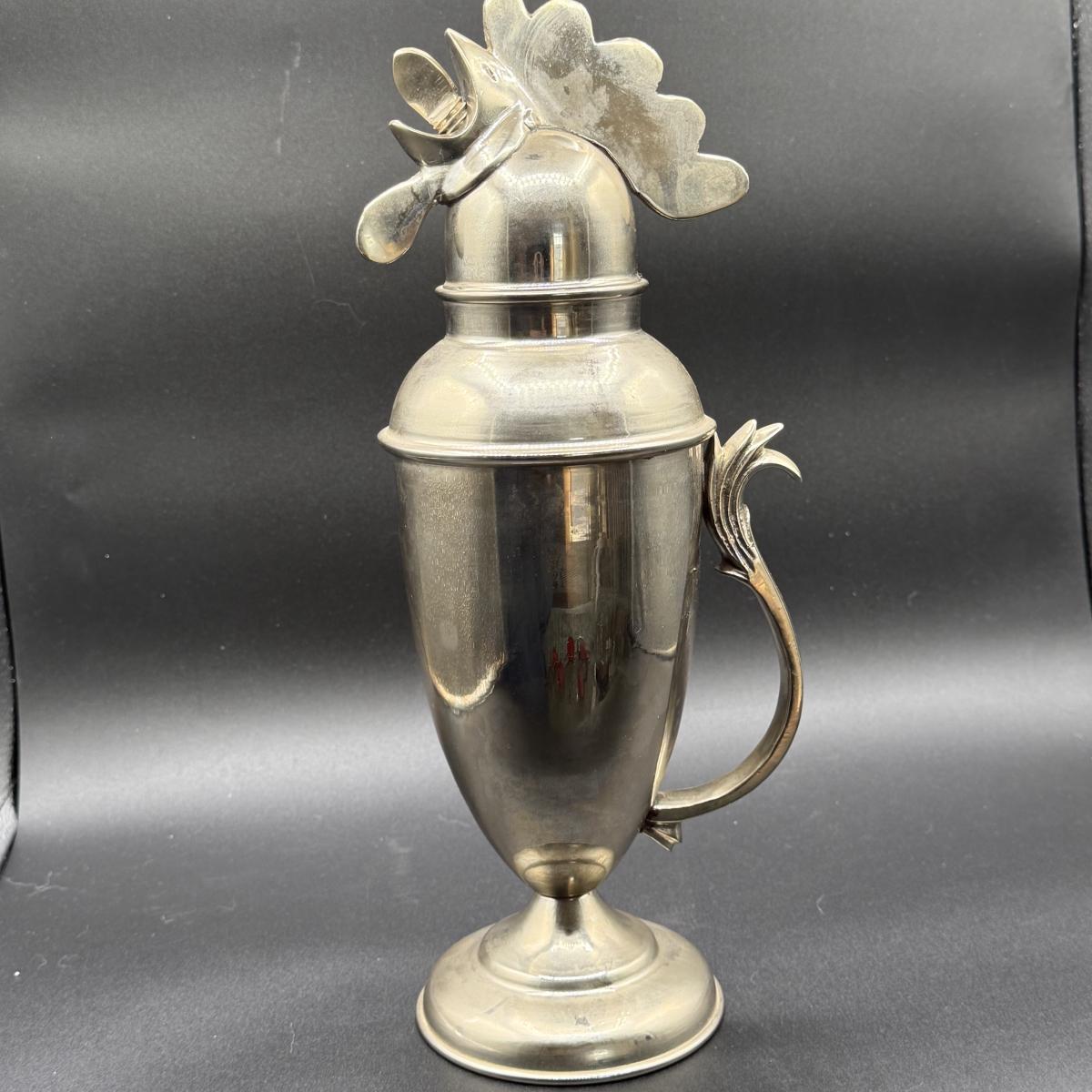 LOT 74H: Art Glass Cocktail Shaker and Glass Set + Art deco style Rooster Cocktail Pitcher